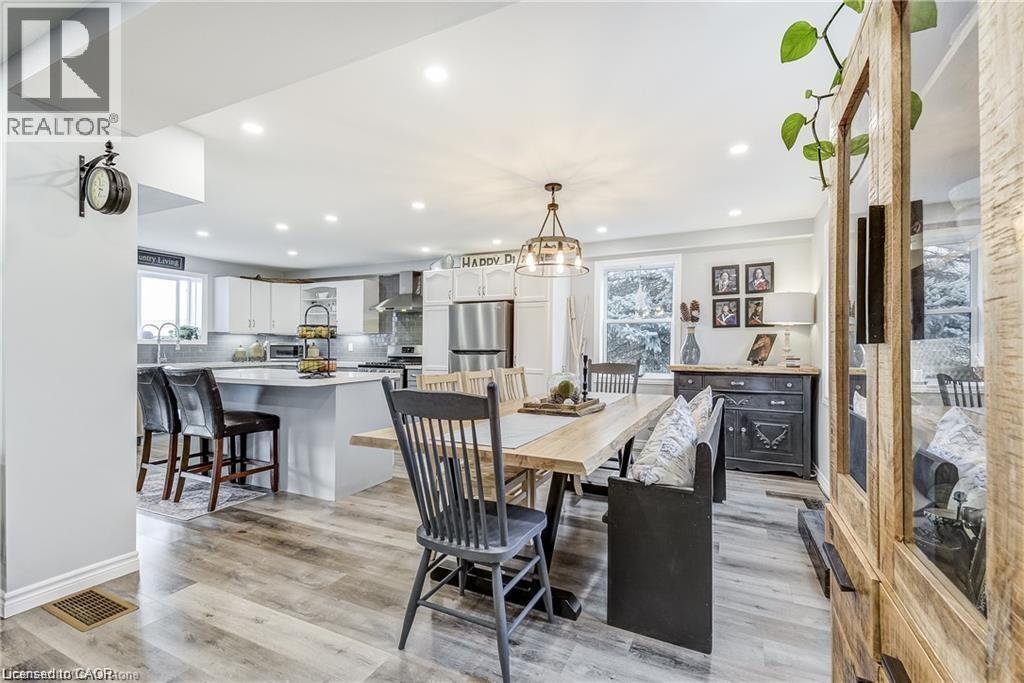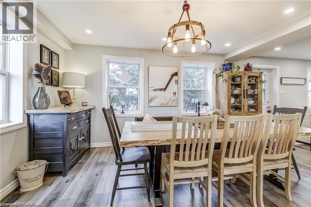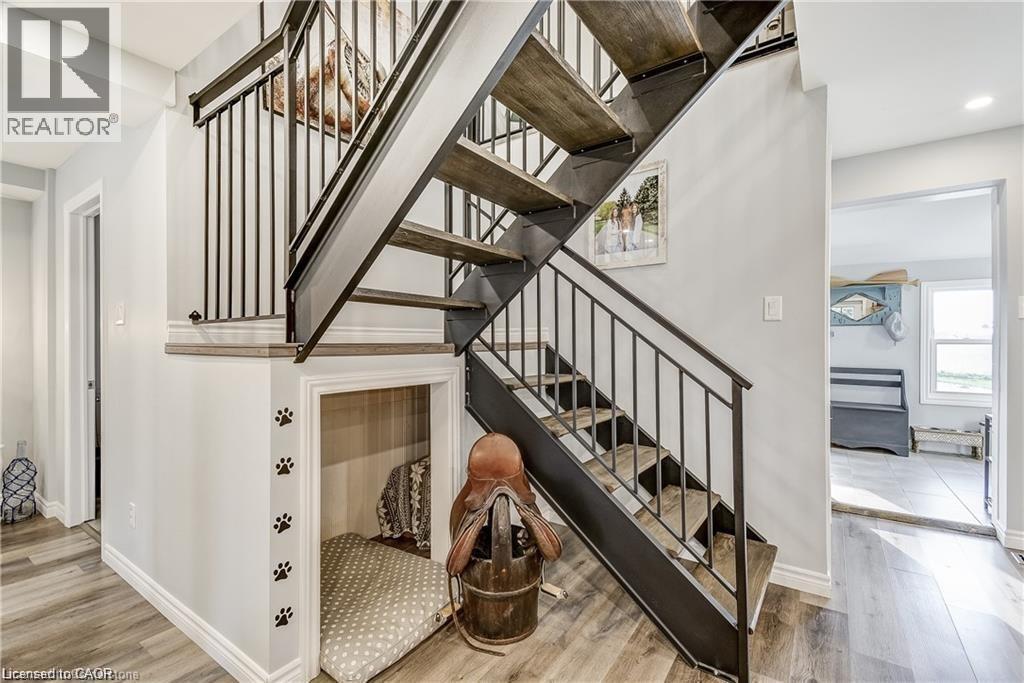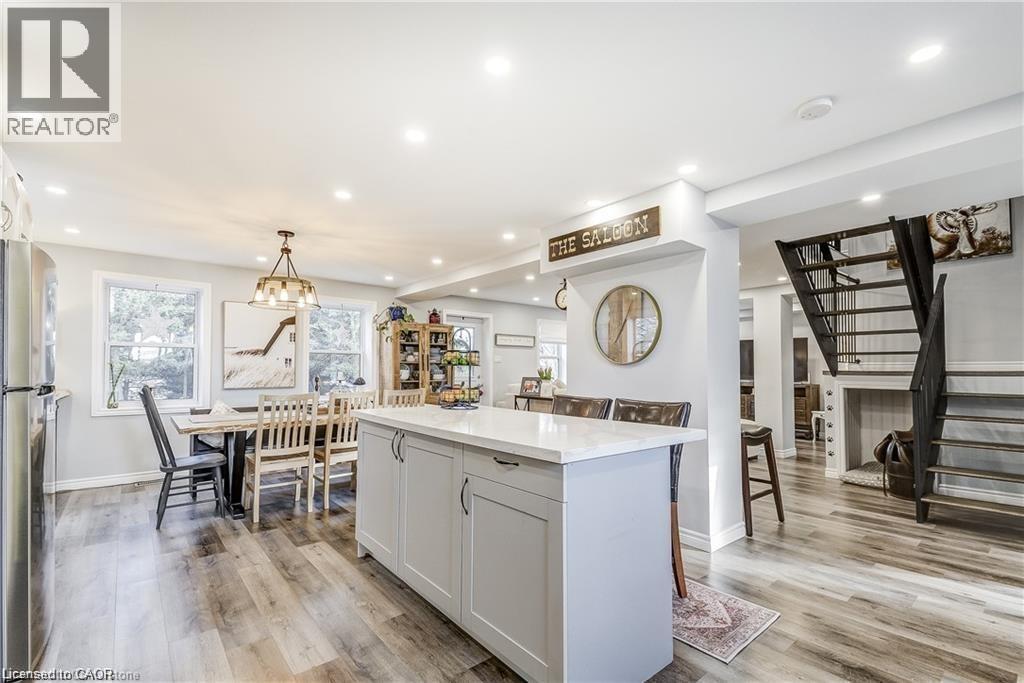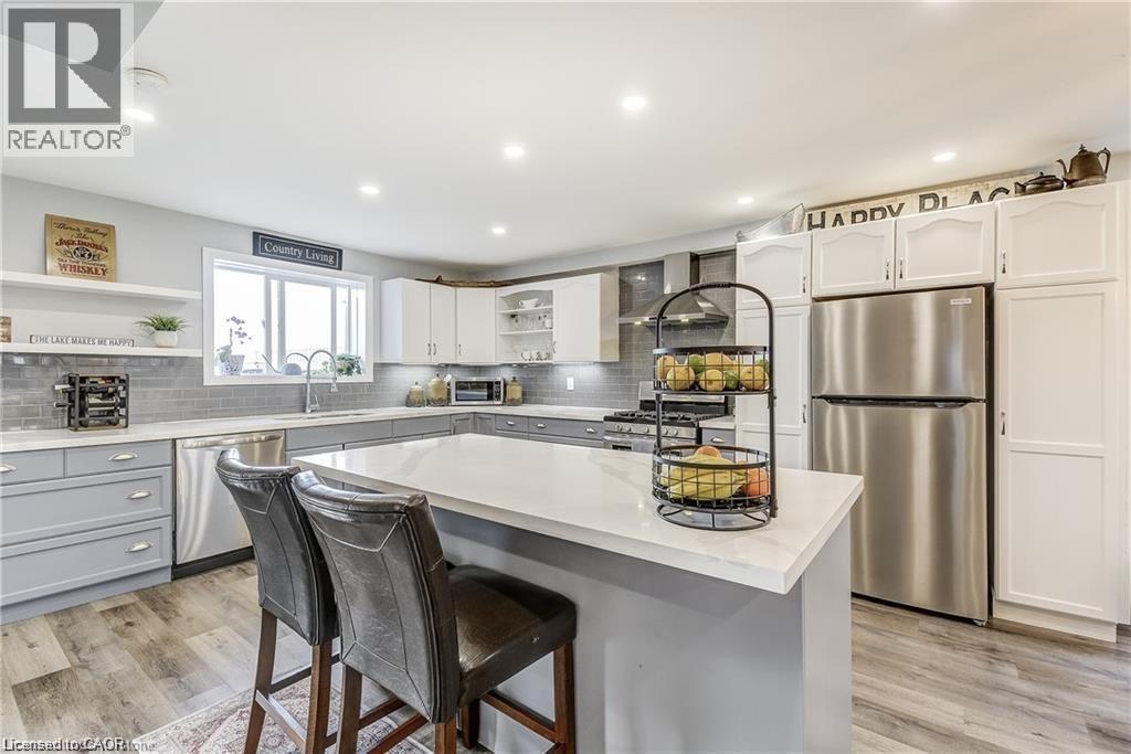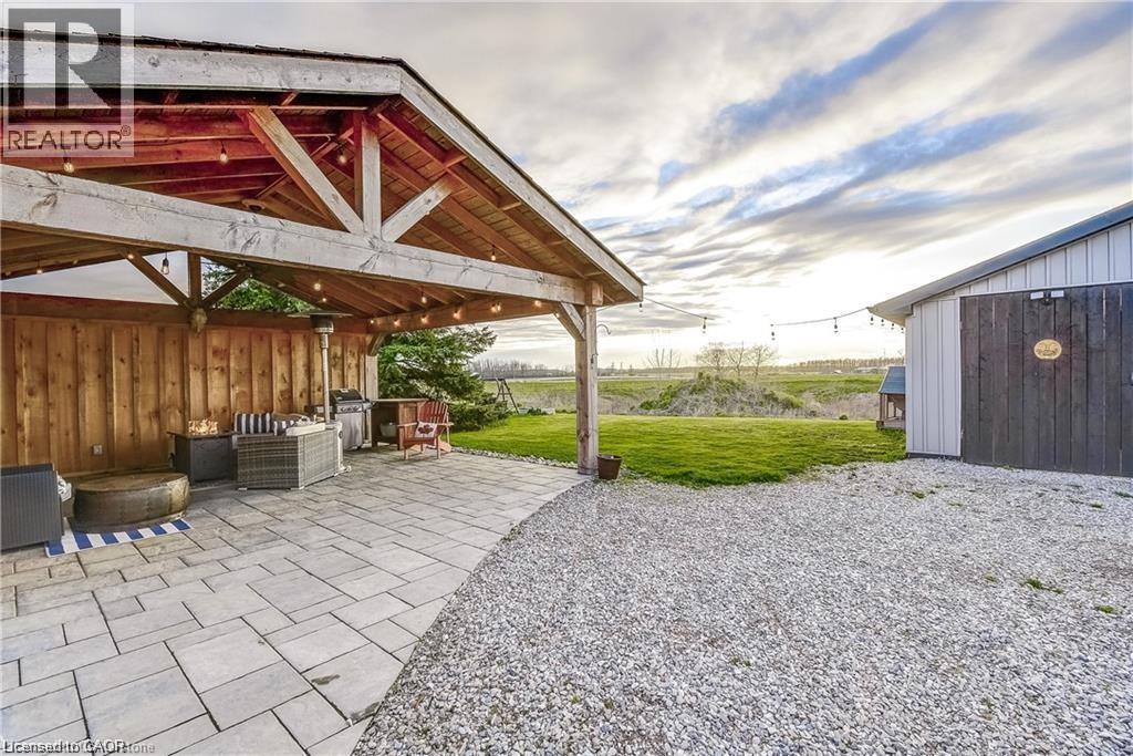 Welcome home! Renovated Century Farmhouse, where character and charm meets modern living! Nestled in a quiet and desirable area on 0.92AC in rural outskirts of Hagersville surrounded by farmland and mature treed setting. Step inside and be greeted by the warmth of the abundance of natural light and desirable open concept floor plan. With approx. 1800sqft of living space there's ample room for everyone to unwind, entertain, and spend time together. The heart of the home lies in the spacious kitchen complete with stone counter tops, a large island, and stainless-steel appliances. Main floor also features a renovated 3pc bathroom, spacious living room, dining space and convenient laundry/mud room. Second levels offers 3 bedrooms and a renovated 4pc bathroom Once you walk out to the expansive yard, you’ll not only enjoy the peace and tranquility but great entertainment amenities such as fire pit, lovely large gazebo perfect to relax and sip your morning coffee or gather in the evening to watch some outdoor movies. This property also features a detached garage, parking for up to 10 vehicles, unfinished partial basement with dirt floor that could be used for storage, hydro one updated from road to house, custom blinds in bedrooms/bathrooms and living room, laminate flooring throughout water pump and updated 200amp. Don’t miss this amazing opportunity to live in this beautiful community approx. 30mins to Hamilton/Dunnville/Simcoe, 15mins to Lake Erie/Grand River. BASEMENT IS FOR STORAGE PURPOSES ONLY. (id:64974)