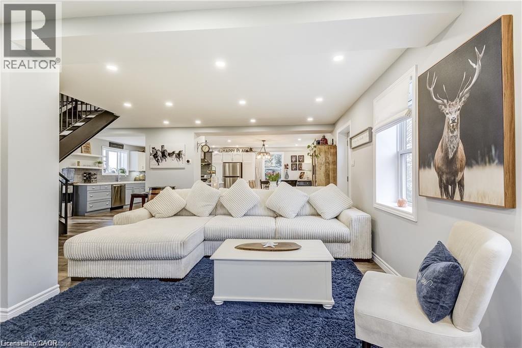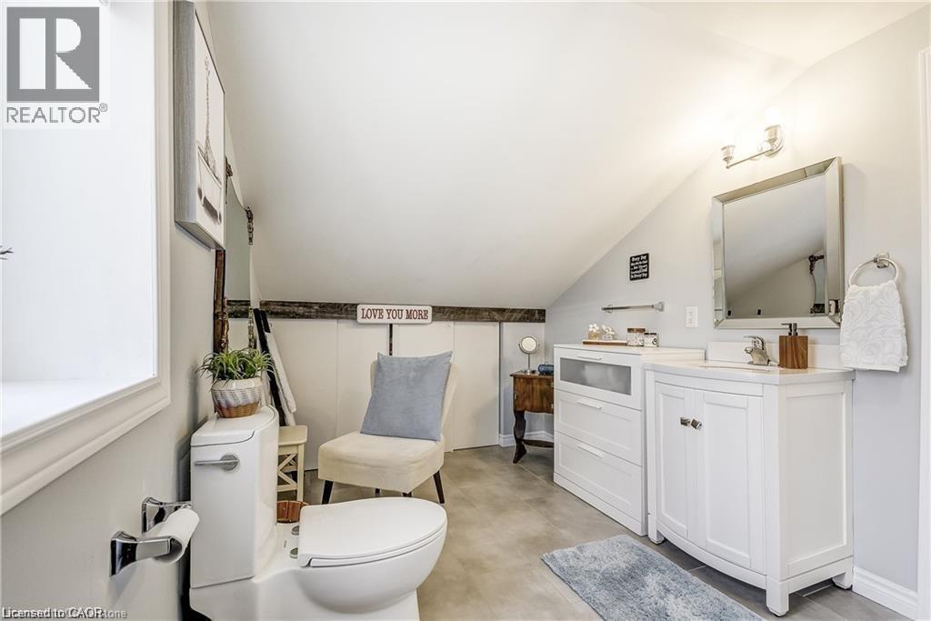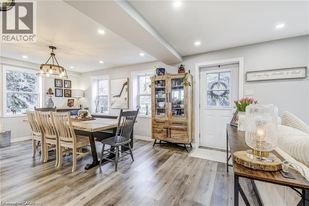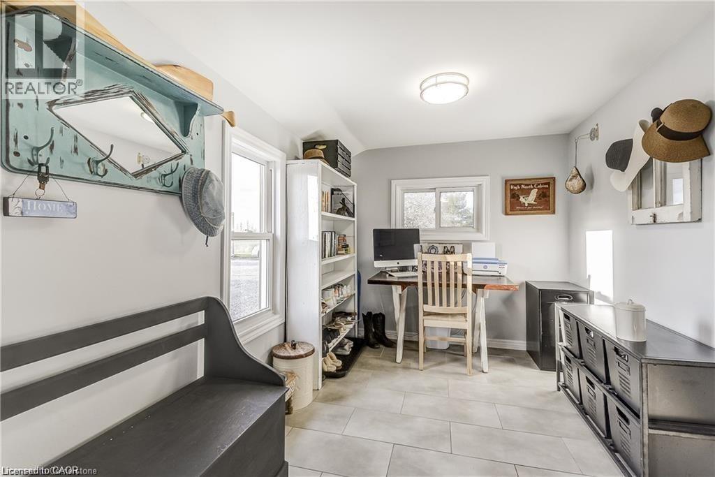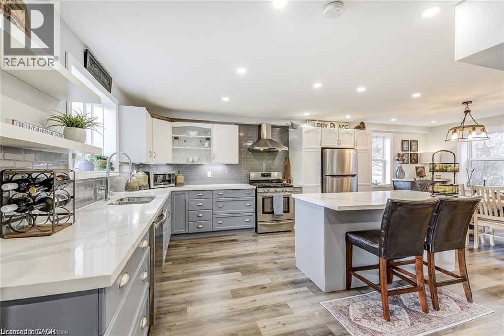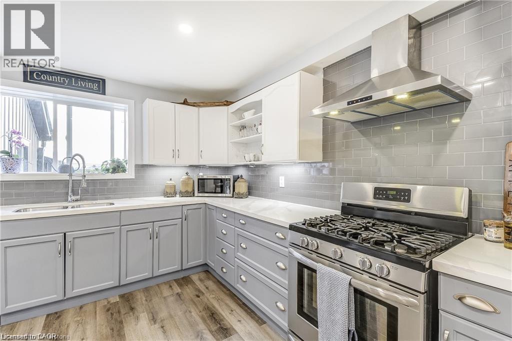 Welcome home! Renovated Century Farmhouse, where character and charm meets modern living! Nestled in a quiet and desirable area on 0.92AC in rural outskirts of Hagersville surrounded by farmland and mature treed setting. Step inside and be greeted by the warmth of the abundance of natural light and desirable open concept floor plan. With approx. 1800sqft of living space there's ample room for everyone to unwind, entertain, and spend time together. The heart of the home lies in the spacious kitchen complete with stone counter tops, a large island, and stainless-steel appliances. Main floor also features a renovated 3pc bathroom, spacious living room, dining space and convenient laundry/mud room. Second levels offers 3 bedrooms and a renovated 4pc bathroom Once you walk out to the expansive yard, you’ll not only enjoy the peace and tranquility but great entertainment amenities such as fire pit, lovely large gazebo perfect to relax and sip your morning coffee or gather in the evening to watch some outdoor movies. This property also features a detached garage, parking for up to 10 vehicles, unfinished partial basement with dirt floor that could be used for storage, hydro one updated from road to house, custom blinds in bedrooms/bathrooms and living room, laminate flooring throughout water pump and updated 200amp. Don’t miss this amazing opportunity to live in this beautiful community approx. 30mins to Hamilton/Dunnville/Simcoe, 15mins to Lake Erie/Grand River. BASEMENT IS FOR STORAGE PURPOSES ONLY. (id:64974)