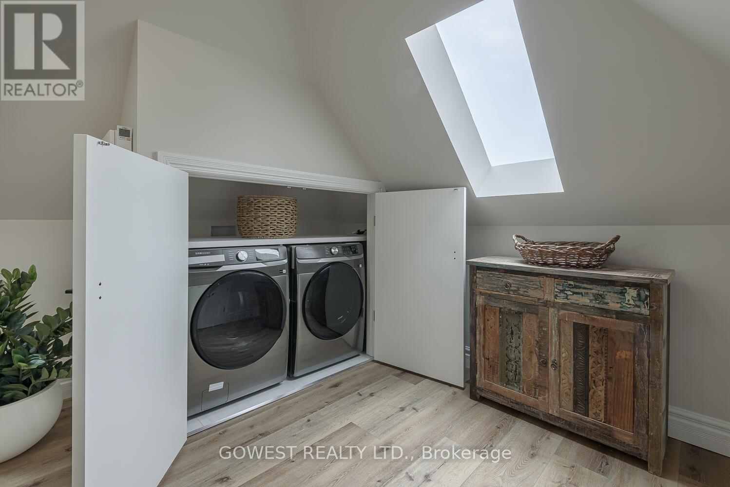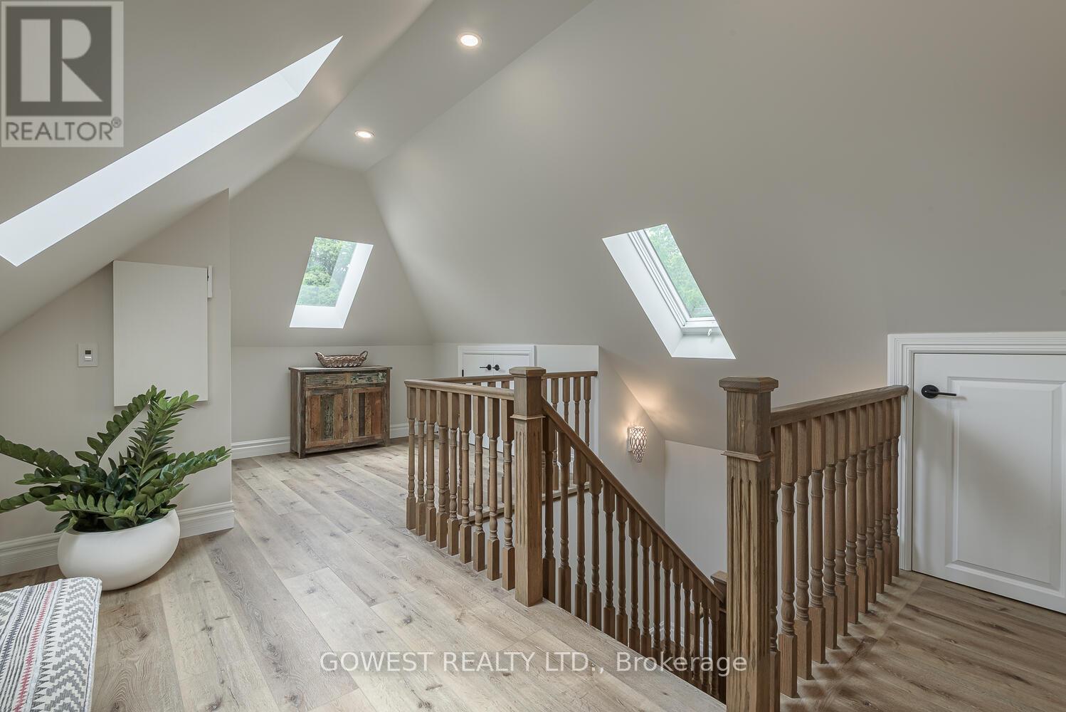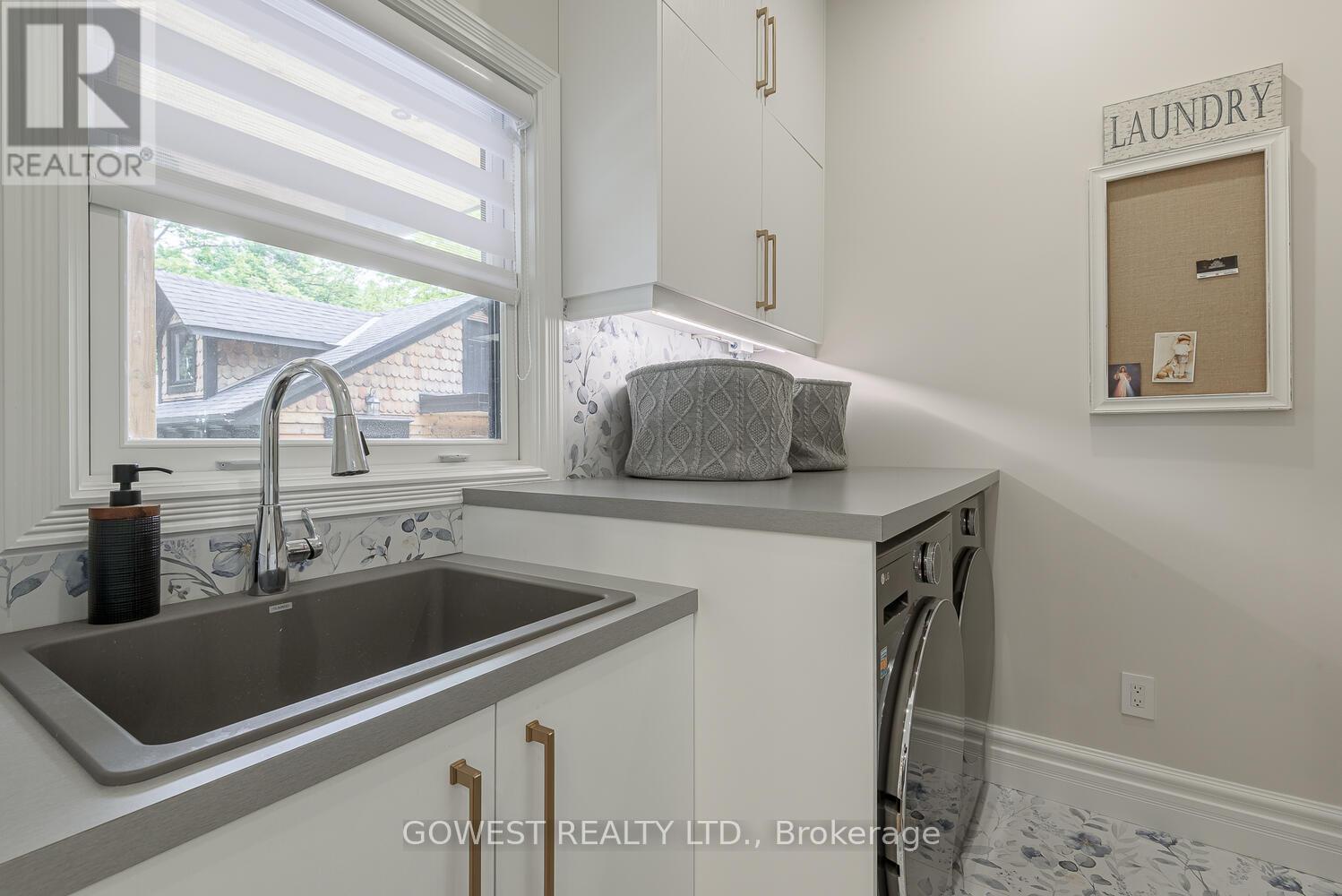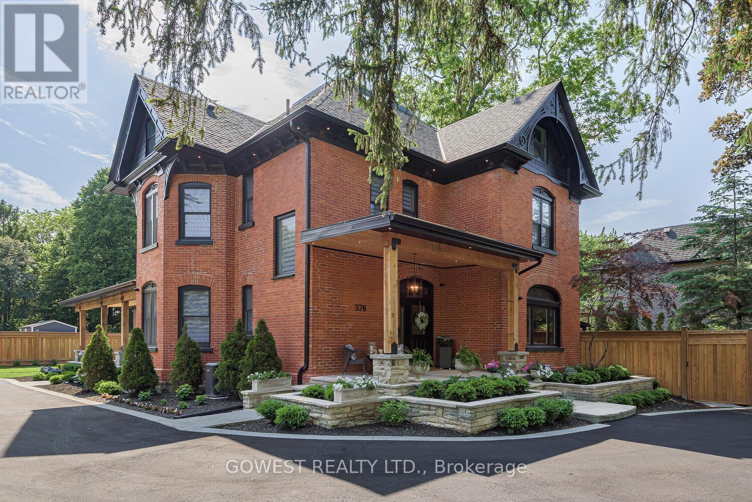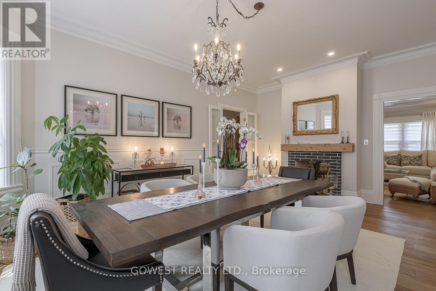 A truly one-of-a-kind, professionally restored home that blends timeless Victorian charm with modern luxury. This stunning residence features 10-ft ceilings on the main floor, pot lights throughout, and a custom-made kitchen with a high-end designer backsplash and a spacious walk-in pantry. Original details include elegant straw glass windows, many original glass-paneled doors (no locks), rounded wall edges, oak staircases, and beautifully preserved Victorian baseboards, crown moldings, and hinges. The living room features a classic wood-burning fireplace, while a striking gas fireplace connects the family room and dining room; perfect for both ambiance and warmth. Enjoy three expansive porches with cedar ceilings and pot lights, and a large separate garage with loft storage. The home boasts a floating staircase leading to the third floor, a skylight, coffered ceilings in the family room, and a third-floor teenager or nanny suite. All bathrooms include heated floors for year-round comfort, while the basement features in-floor heating, a quartz island bar, and a cozy entertainment space. Upgraded with 200 amp electrical service and a new water heater, this home offers over three full floors of living space plus a finished basement. Located just a 10-minute walk to downtown Oakville, this prestigious address offers character, warmth, and sophistication rarely found today. (id:64974)