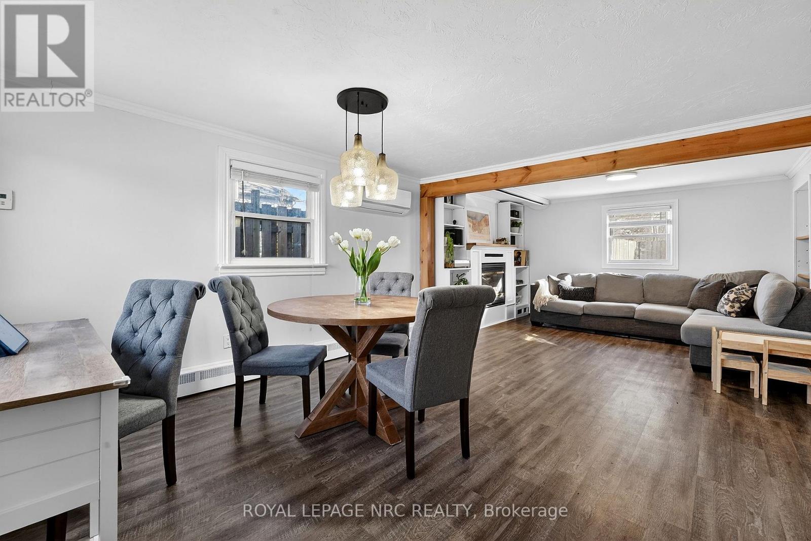 Charming 1.5-storey home in the heart of Ridgeway! Situated on a fully fenced 52 x 120 ft lot on a quiet side street, this property is just a short walk to Ridgeway's vibrant downtown, with its shops, banks, restaurants, and small-town charm. This adorable 2-bedroom home offers approximately 910 sq ft of living space plus an additional 360 sq ft of finished living space in the converted garage (completed by a previous owner), providing flexible space for a rec room, hobby area, or additional family space. Inside, you'll find a bright and inviting living room and dining area, ideal for everyday living and entertaining. The converted garage currently provides laundry hookups, storage space, and a cozy rec room area, adding valuable extra living space. Updates completed by a previous owner include newer windows, the main roof reshingled in January 2017, and two gas fireplaces. The current owner added wall-mounted A/C heat pumps in 2023 and installed a new combination radiant heat / water heater in January 2026, improving comfort and energy efficiency. A fantastic opportunity for first-time buyers, downsizers, or investors looking for a charming home in one of Niagara's most desirable lakeside communities. Ridgeway is known for its historic charm, welcoming atmosphere, and walkable lifestyle, just minutes from Lake Erie beaches. (id:64974)