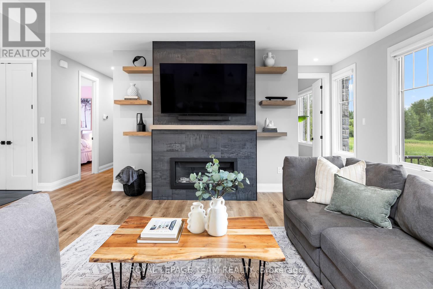 IN-LAW POTENTIAL! 2+ ACRES! NO REAR NEIGHBOURS! HEATED OVERSIZED TRIPLE CAR GARAGE! Where modern design meets natural beauty-this is country living, reimagined. This custom bungalow showcases a striking, moody exterior-a rich blend of dark board & batten, stone & timber that quietly pays tribute to its surroundings. Deer pass the treeline & a gentle stream winds through the property. Step inside & the home immediately opens up-9' & 10' ceilings, 8' doors & wide-plank flooring creating a space that feels both expansive & grounded. At the centre, a beautifully designed kitchen balances style & function w/ quartz counters, an oversized island, side bar & a rarely offered butler's pantry room. From here, the home naturally gathers-anchored by a fireplace framed w/ floating shelves & a 10' tray ceiling overhead, while sunlight pulls you toward the rear deck & enclosed porch, extending everyday living outdoors. Tucked just off this space, a glass-accented den offers flexibility. Privately set, the primary suite is capped by a 10' tray ceiling, 2 walk-in closets & a refined ensuite. 2 additional bedrooms are positioned at the front, sharing a beautifully finished full bath. Everyday function is elevated through a well-planned back hall w/ mudroom, powder room & a pinterest worthy laundry space w/ cabinetry, quartz & sink. Downstairs, the groundwork is already in place-large windows, bath & wet bar rough-ins, partial framing & direct garage access create strong in-law or income potential. And for those who need more-an oversized heated garage w/ extended height, double door & a 3rd drive-thru bay (front & rear access) delivers unmatched versatility. All just minutes to Stonecrest PS, West Carleton SS, Constance Bay & Kanata amenities. A lifestyle, not just a home. (id:64974)