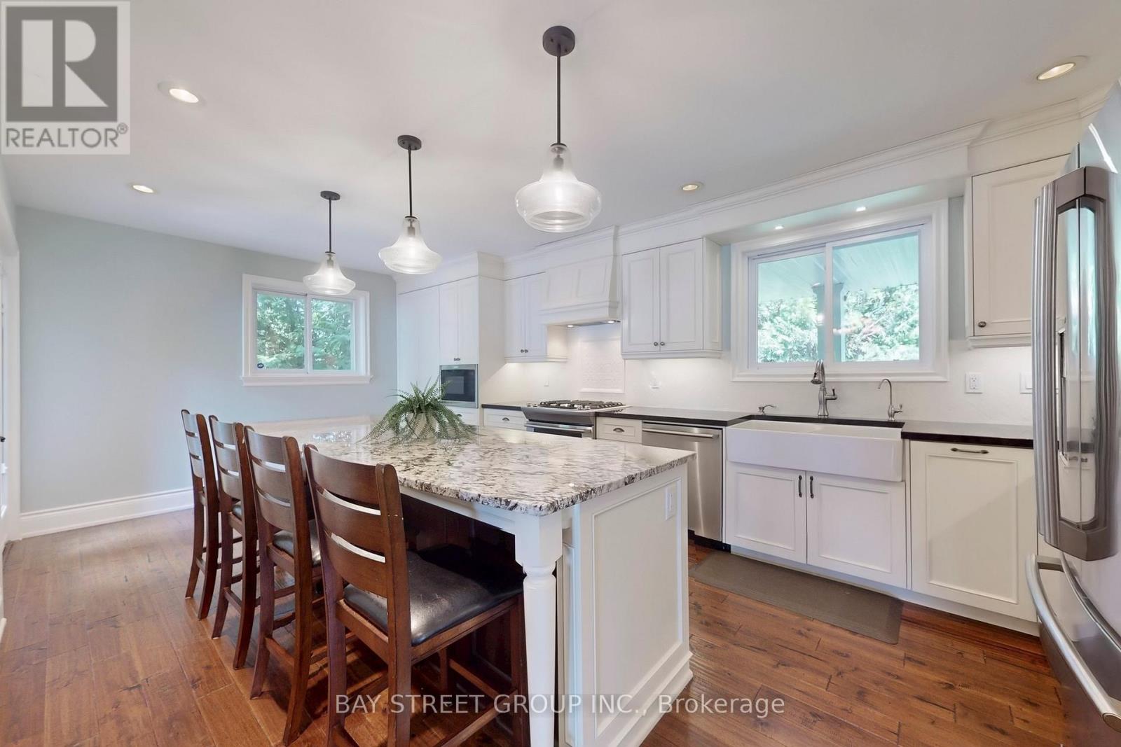 Welcome to your dream lakeside retreat! Nestled on the serene shores of Lake Simcoe, this charming 4-season cottage offers the perfect blend of relaxation and modern comfort, just 90 minutes from the GTA and 20 minutes to Orillia.As you enter the open-concept main level, you are welcomed by a bright kitchen featuring a large island, granite countertops, and stainless steel appliances. The kitchen flows seamlessly into the dining and living areas, where you'll find a cozy fireplace and a walkout to a spacious lake-view deck - perfect for entertaining or relaxing by the water.A main-floor bedroom with its own walkout offers convenience and privacy, adjacent to a beautifully finished 3-piece bath with heated floors. Three additional bedrooms and two full bathrooms complete the second floor. The lower level offers a separate 1-bedroom in-law suite featuring a kitchen/dining area, 3-piece bath with heated floors, and a cozy family room with fireplace and walkout. This property is thoughtfully designed for all-season comfort and winter readiness. The electrical panel is generator-ready to provide full-house power during outages. The furnace is automatically temperature-controlled, ensuring warmth even during power interruptions. Outdoor water lines are self-draining and require no winter maintenance. Radiant heated floors in the basement, the main-floor bathroom, and the primary ensuite enhance comfort throughout the colder months. (id:64974)