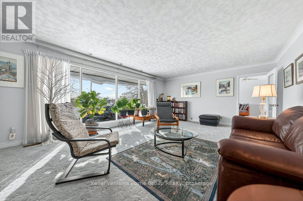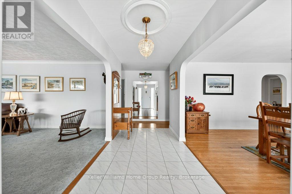 Welcome Home to 379 St Patrick St W in Fergus! This Grand Estate home is set on a large, treed .3 acre lot. Boasting massive principal rooms, this 2200+ sq ft all brick bungalow is situated perfectly, a short walk from beautiful downtown Fergus and all it has to offer located along the banks of the Grand River. From the oversized driveway and tandem 2 car garage, walk up the pathway to the front patio overlooking the neighbourhood. Through the front door and into the large foyer that opens in the formal living room and dining room which span the front of the home. At one end enjoy the informal sunroom/office/den, with its own entrance (perfect for a home business). The other end of the house boasts a generous, bright kitchen which flows nicely through the formal dining room and conveniently located off the garage. At the back of the home, you'll be pleasantly surprised at the size of the bedrooms, the primary bedroom with 3 piece bathroom and laundry closet and the main 4 piece bathroom. An unfinished basement with seperate entrance has tons of potential for extending the main home or as an in-law suite. Homes of this size and quality in this sought-after locations, are very hard to find; don't let this one get away! (id:64974)