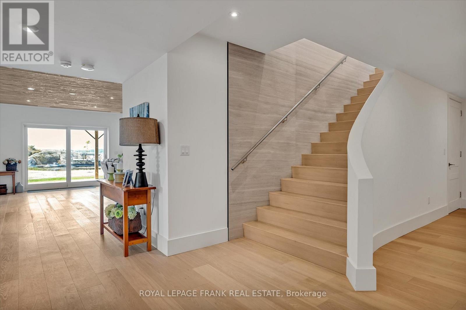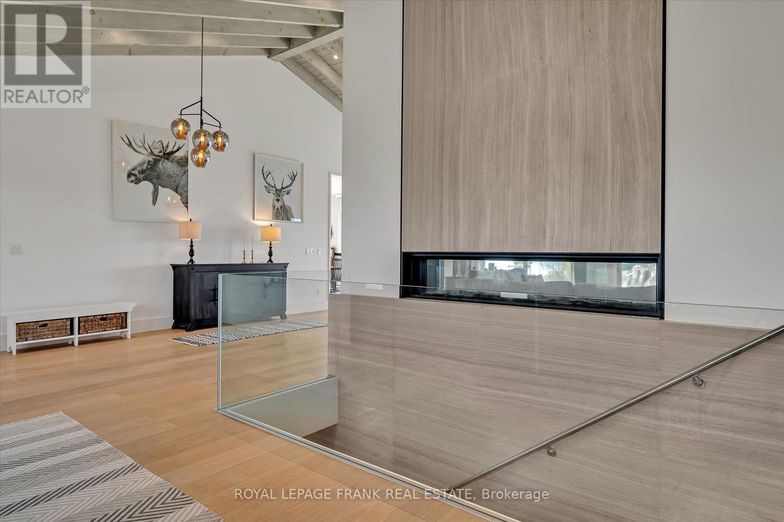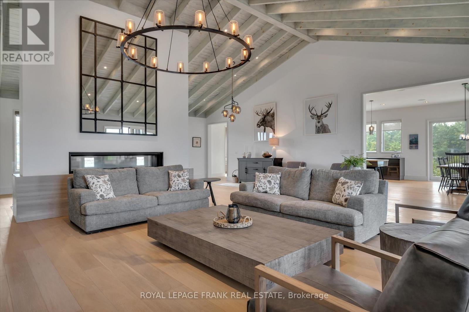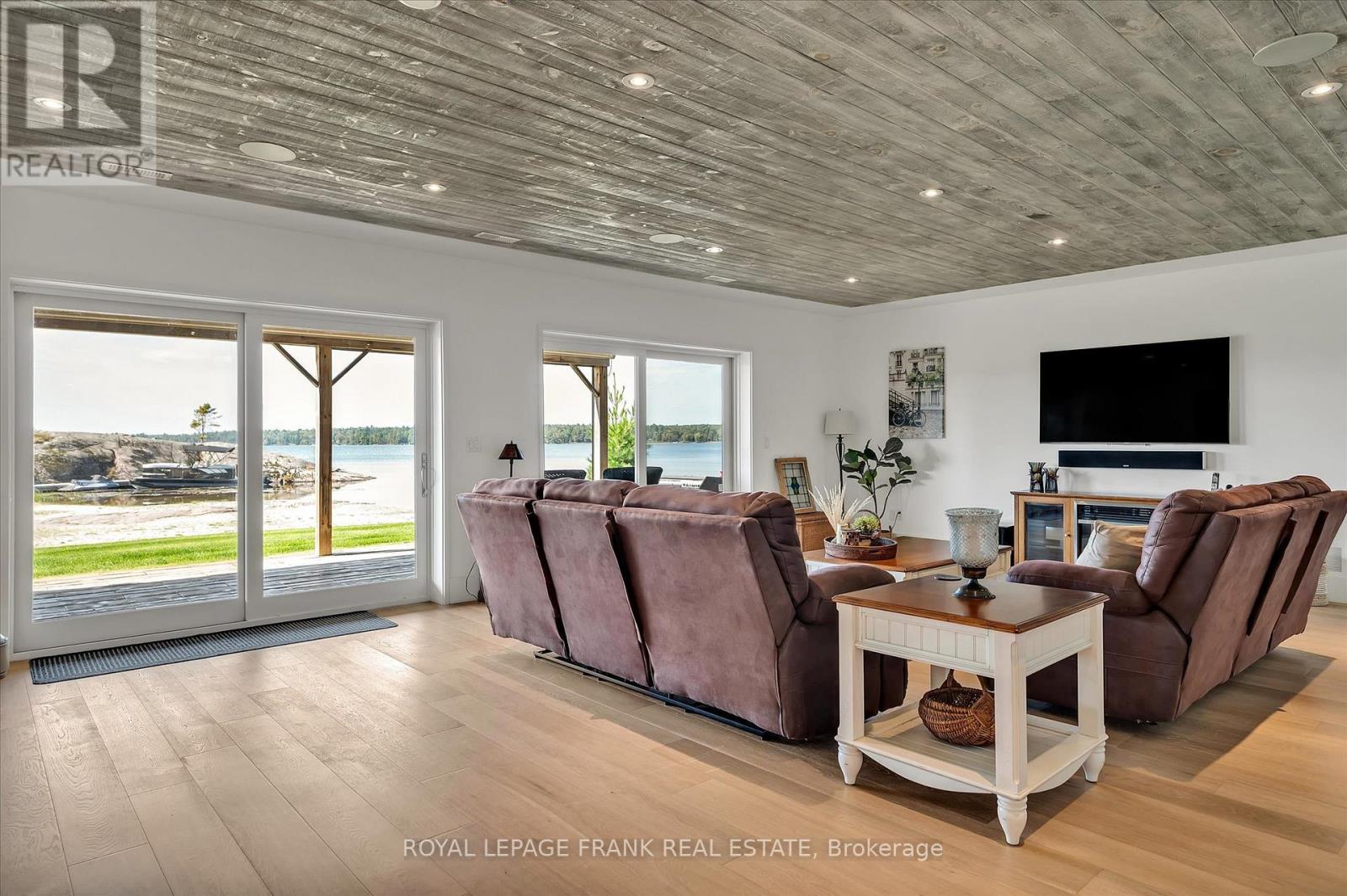Experience the pinnacle of lakeside living at this stunning Stoney Lake estate. Rarely do properties of this scale become available. Set on over 3 acres of beautifully landscaped grounds with an impressive 1,000 feet of water frontage, this estate offers sweeping views down the length of Upper Stoney Lake. The setting is truly spectacular complete with breathtaking sunsets, exceptional privacy, and a massive sand beach. A distinctive granite island point (offering an additional 700+ ft of frontage) provides the perfect location for deep-water swimming, all ideally positioned to capture the sunset. The 5-bedroom, 4.5-bathroom home is impeccably designed, blending relaxed lakeside charm with refined modern finishes. Bright, spacious interiors are thoughtfully appointed, including a dream kitchen ideal for both casual family time and elevated entertaining. Step outside to enjoy the extensive professional landscaping, a lakeside fire pit for unforgettable evenings, and a brand-new bunkie or yoga studio just steps from the shoreline. The screened-in Kawartha Room invites you to enjoy the outdoors in comfort -- rain or shine. A detached triple-car garage offers ample storage and convenience, with direct access off a paved road. Located only minutes from the prestigious Wildfire Golf Club, this exceptional property delivers an unmatched opportunity to enjoy luxury, nature, and lifestyle -- all in one extraordinary package. Click "Multi Media", below, for aerial video, additional photos and more. (id:64974)