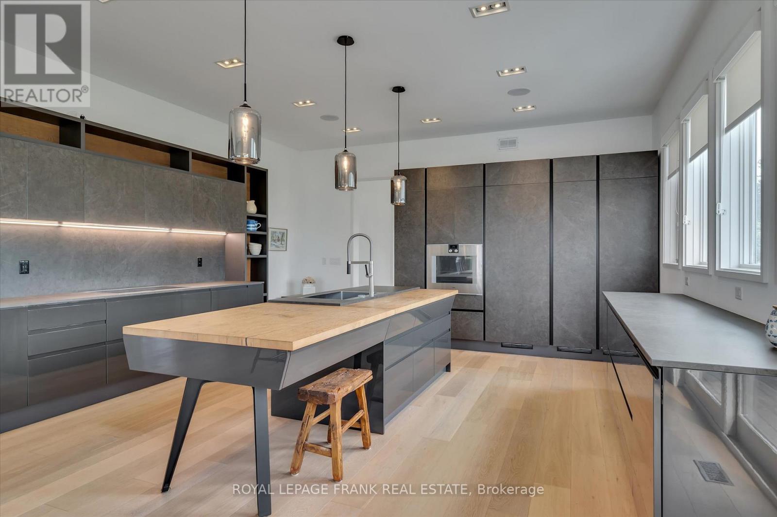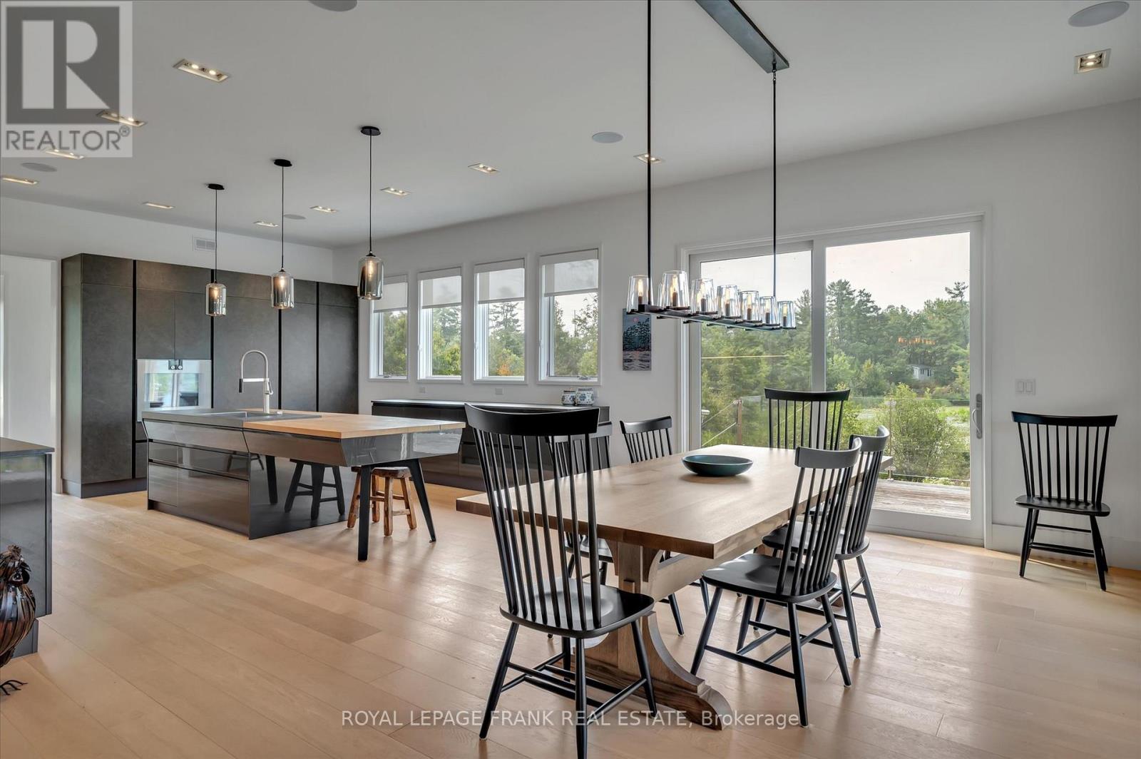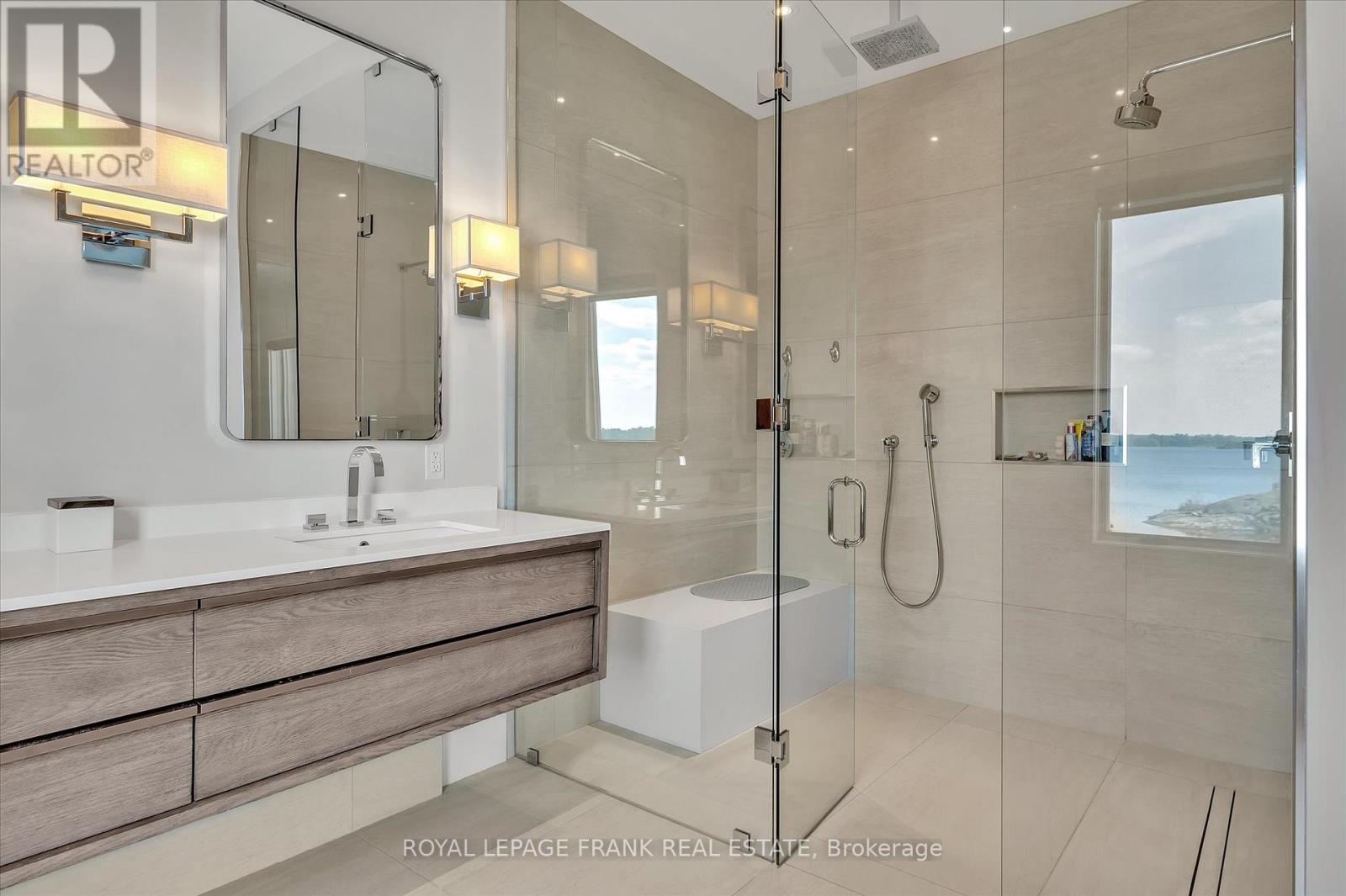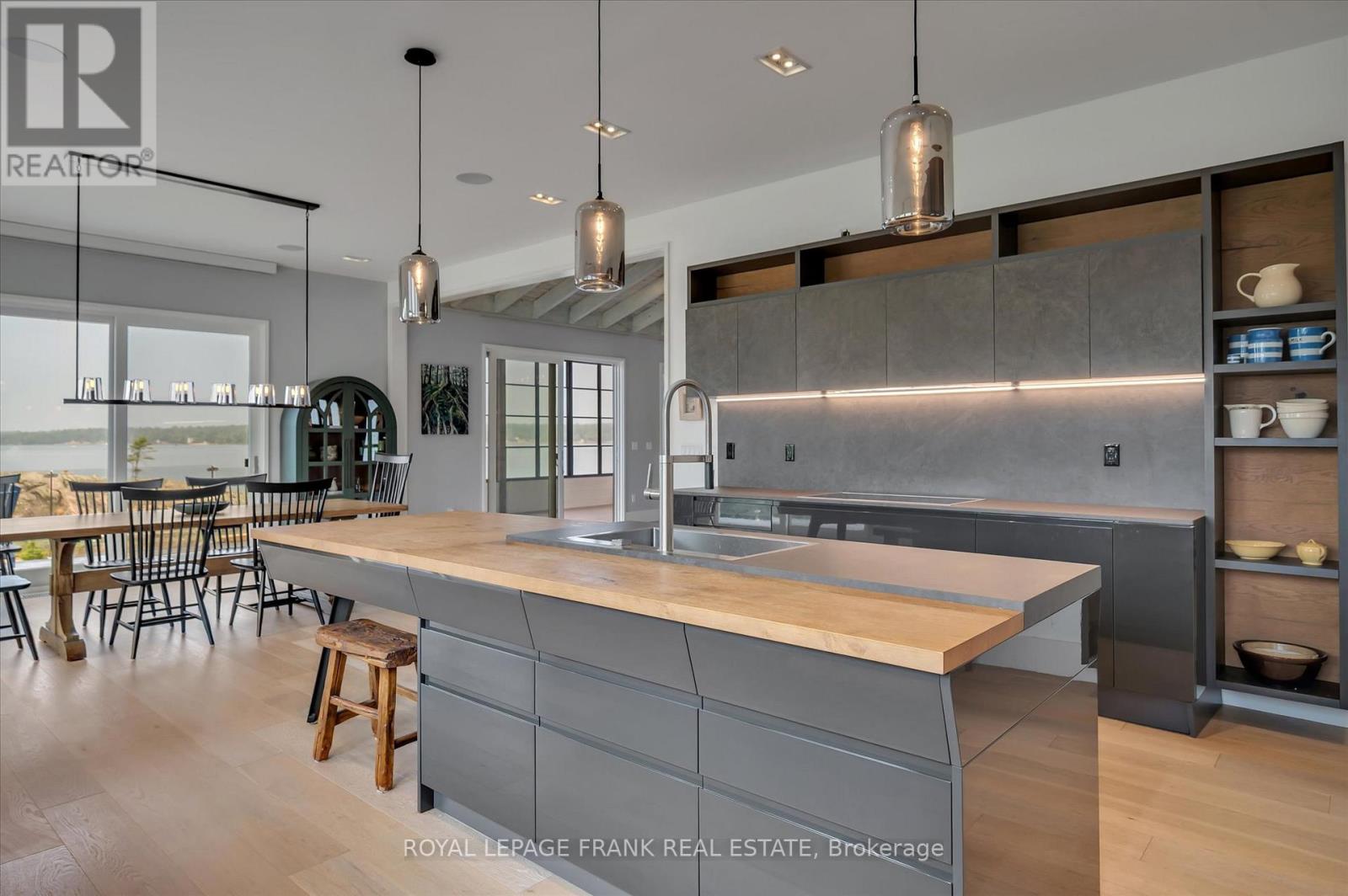 Experience the pinnacle of lakeside living at this stunning Stoney Lake estate. Rarely do properties of this scale become available. Set on over 3 acres of beautifully landscaped grounds with an impressive 1,000 feet of water frontage, this estate offers sweeping views down the length of Upper Stoney Lake. The setting is truly spectacular complete with breathtaking sunsets, exceptional privacy, and a massive sand beach. A distinctive granite island point (offering an additional 700+ ft of frontage) provides the perfect location for deep-water swimming, all ideally positioned to capture the sunset. The 5-bedroom, 4.5-bathroom home is impeccably designed, blending relaxed lakeside charm with refined modern finishes. Bright, spacious interiors are thoughtfully appointed, including a dream kitchen ideal for both casual family time and elevated entertaining. Step outside to enjoy the extensive professional landscaping, a lakeside fire pit for unforgettable evenings, and a brand-new bunkie or yoga studio just steps from the shoreline. The screened-in Kawartha Room invites you to enjoy the outdoors in comfort -- rain or shine. A detached triple-car garage offers ample storage and convenience, with direct access off a paved road. Located only minutes from the prestigious Wildfire Golf Club, this exceptional property delivers an unmatched opportunity to enjoy luxury, nature, and lifestyle -- all in one extraordinary package. Click "Multi Media", below, for aerial video, additional photos and more. (id:64974)