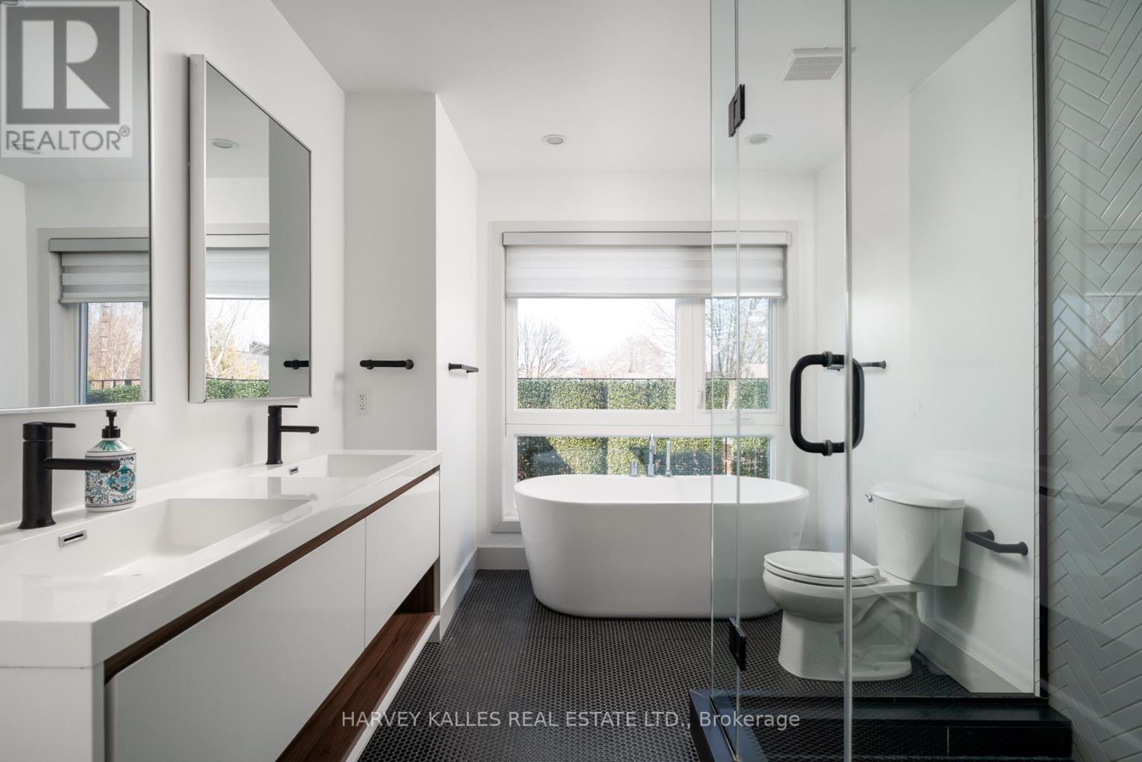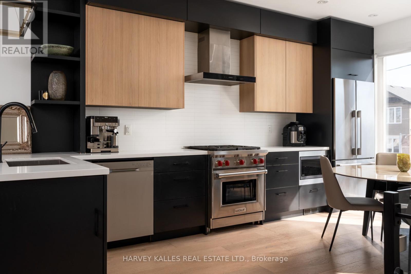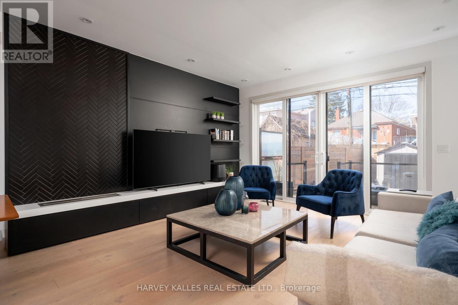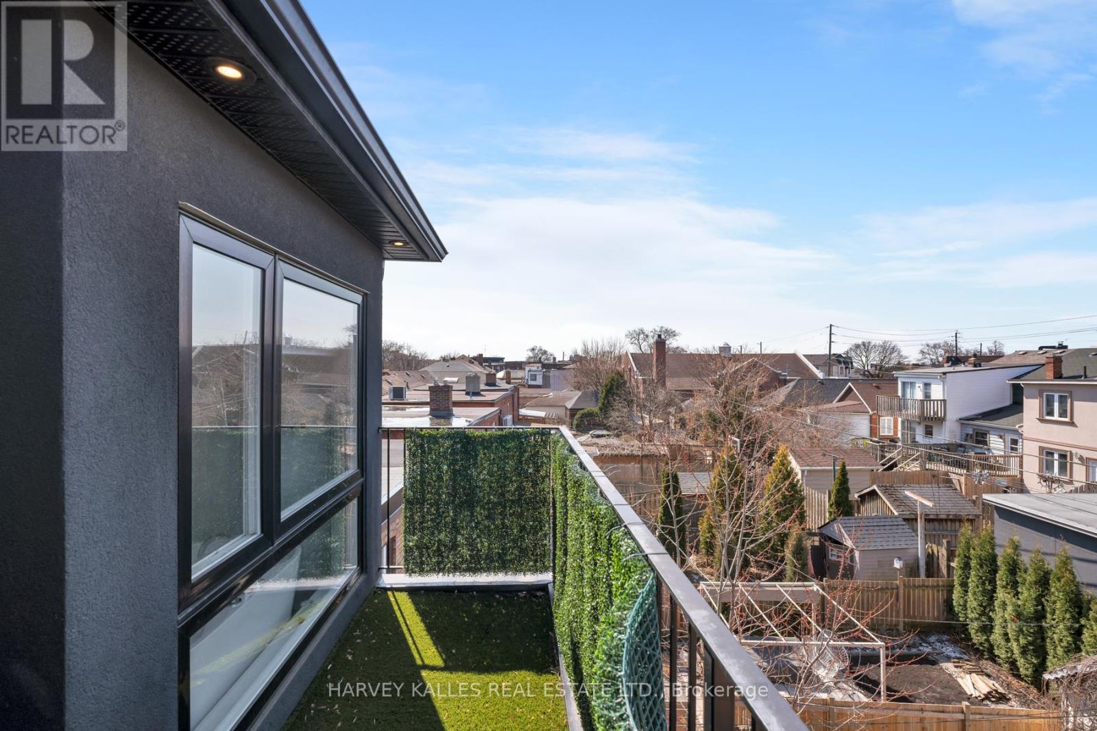 38 Alameda Avenue Delivers Clean Design, A Smart Layout, And The Kind Of Space You Actually Want To Live In-Just Steps From Cedarvale Park. Featuring High-End Finishes And Modern Functionality, This Home Offers Exceptional Living Space For Families And Professionals Alike. The Main Floor Welcomes You With A Stylish Foyer Featuring Tile Flooring, Shiplap Accents, And A Convenient Front Closet. A Few Steps Up-Above The Rare Built-In Garage-You'll Find The Stunning Kitchen, Showcasing A Sophisticated Blend Of White Oak And Black Cabinetry, Complemented By Quartz Countertops, A Porcelain Backsplash, And Premium Appliances, Including A Wolf 30-Inch Range. A Large Window Overlooking The Front Yard Fills The Space With Natural Light. The Dining Area Features Wide-Plank White Oak Hardwood Flooring, Carried Throughout The Home, Along With Access To A Chic Powder Room With Marble Tile Finishes. A Striking Wrought Iron Staircase Adds Architectural Character, While The Living Room Is Warm And Inviting, Highlighted By A Modern Herringbone Accent Wall And A Sleek, Eco-Friendly Ethanol Fireplace-Creating A Sophisticated Focal Point With The Beauty Of Real Flame, Without The Smoke. French Sliding Doors Lead To The Backyard, Offering Seamless Indoor-Outdoor Living. The Third-Floor Primary Retreat Is A Luxurious Sanctuary, Complete With Custom Built-Ins, A Private Balcony Overlooking The Park, And A Walk-In Closet With Integrated Drawers. The Spa-Inspired 5-Piece Ensuite Features Double Sinks With Moen Faucets, A Soaker Tub, Bubble Tile Flooring, And A Walk-In Rain Shower With Herringbone Tile Detailing. The Second Level Offers Well-Appointed Bedrooms. One Features A South-Facing Exposure, A Built-In Closet, And A Private Walkout Balcony. Another Is Ideal As A Home Office, With Hardwood Flooring And Generous Closet Space. Additional Bedrooms Include Hardwood Floors, Built-Ins, And Beautiful Park Views. (id:64974)
