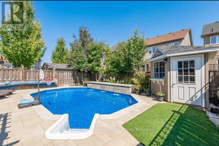 Quiet street, over 3,300 sq ft of beautifully finished living space, with a pool! This exceptional 3-bedroom, 4-bathroom home is ready for a new family to enjoy. From the moment you arrive, the striking brick-and-stucco exterior creates a lasting impression, while inside, gorgeous hardwood floors set the tone for the quality and craftsmanship found throughout. A formal dining room, complete with detailed wall mouldings and a statement chandelier, sets the stage for memorable gatherings. Just beyond, the warm and welcoming living room-anchored by a gas fireplace-flows effortlessly into the heart of the home: a stunning, updated kitchen. Here, you'll find stainless steel appliances, sleek quartz counter tops with a seamless back splash, under-cabinet lighting, and an over sized island perfect for casual meals or entertaining. Step out to the rear deck and enjoy easy indoor-outdoor living all season long. A chic powder room and convenient access to the double garage complete this thoughtfully designed level. Upstairs, a bright and versatile open-concept space offers endless possibilities-whether as a cozy family retreat, a productive home office, or a homework hub. Behind double doors, the serene primary suite awaits, featuring elegant wall detailing, a walk-in closet, and a luxurious 5-piece ensuite with a soaker tub and double vanity. Two additional generously sized bedrooms are complemented by a beautifully appointed 5-piece bathroom.The finished basement adds even more living space, with a spacious recreation room and fireplace-ideal for movie nights, entertaining, or simply unwinding. Outdoors, your private backyard oasis is ready to impress. A large deck overlooks the in-ground pool with tranquil waterfall features, for both relaxation and entertaining.Nestled in wonderful Westminster Woods, where scenic walking trails, great schools, and everyday conveniences are literally just steps away. (id:64974)