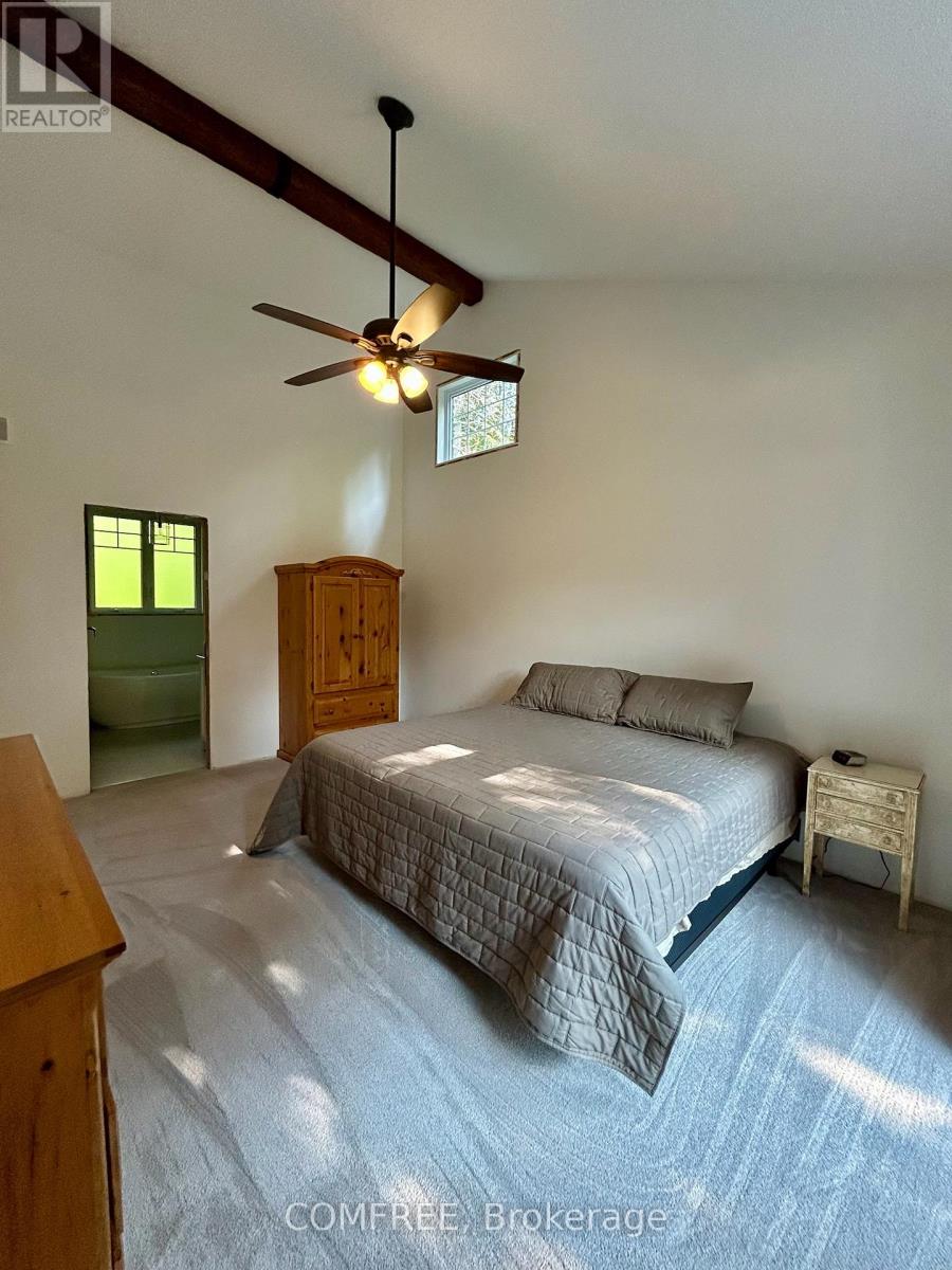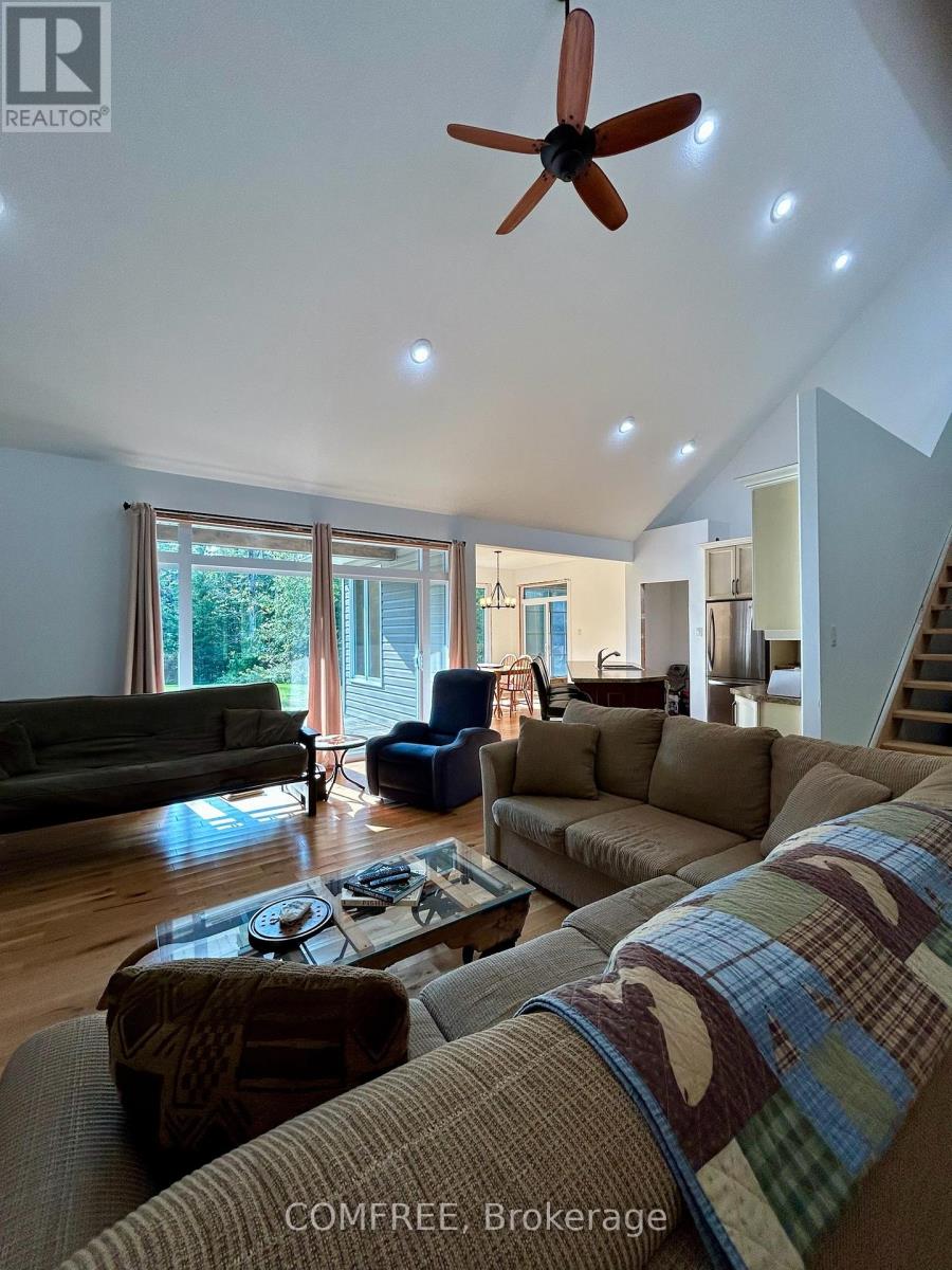 Welcome to this custom-built bungalow with loft area, offering a thoughtfully designed layout and quality finishes throughout. The main floor features soaring vaulted ceilings in the entrance, living area, primary bedroom, and ensuite, complemented by 9-foot ceilings with California stucco texture. A bright 14'3" x 11'5" insulated sunroom with large windows extends from the dining area, creating the perfect space to enjoy views of the private, treed surroundings. The home includes spray foam insulation for comfort and efficiency, a spray-foamed and drywalled attached garage, plus a generator panel for peace of mind. Upstairs, a 210 sq ft loft provides a spacious bonus room, ideal for flexible use. 98% finished ready for your personal touches to complete. Outdoors, the large deck invites you to relax or entertain on the 2.42-acre property. This 3-bedroom home is within walking distance to Lake Huron, a general store with gas, groceries, and lcbo, park, and boat launch blending privacy, convenience, and lifestyle in one exceptional property. (id:64974)