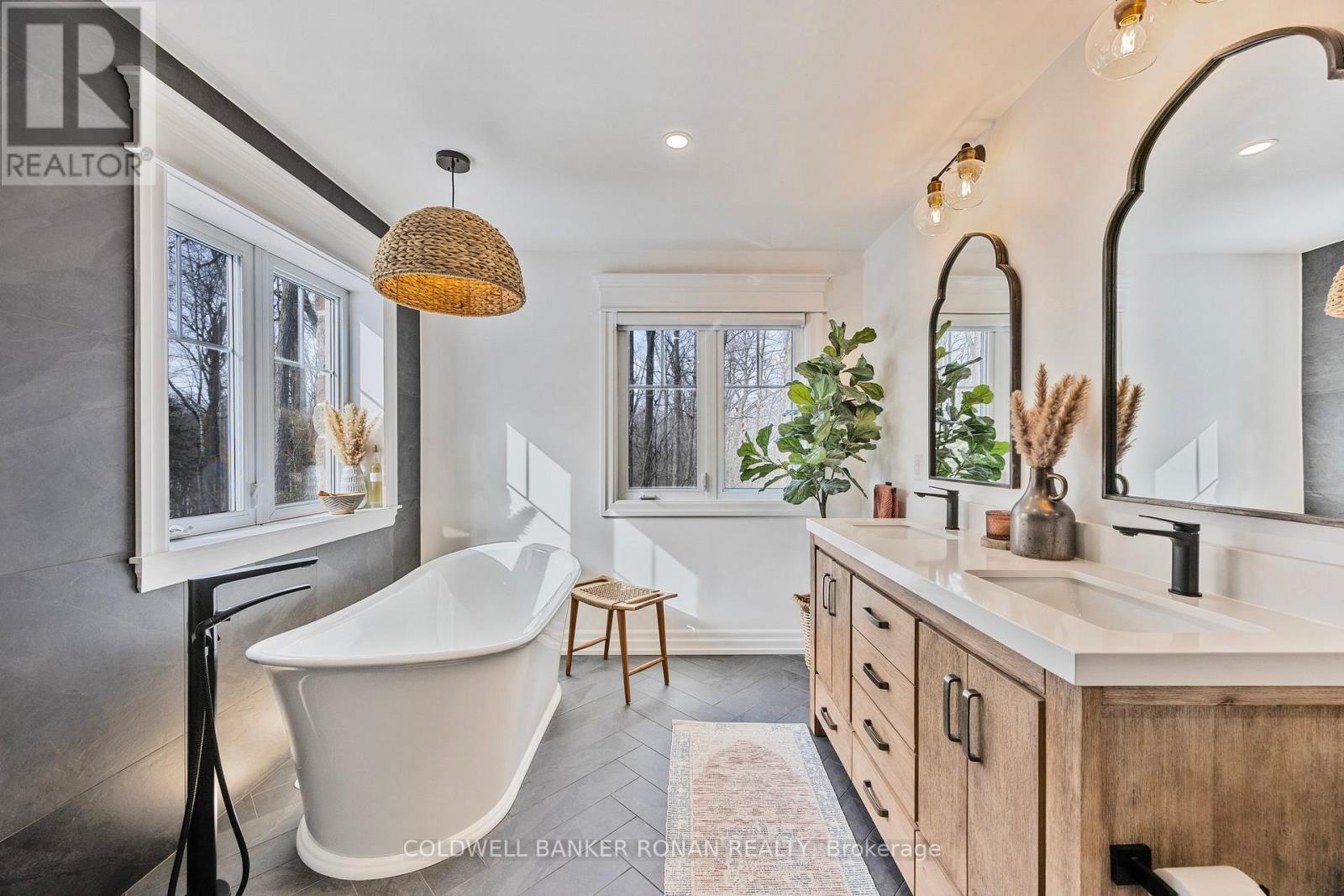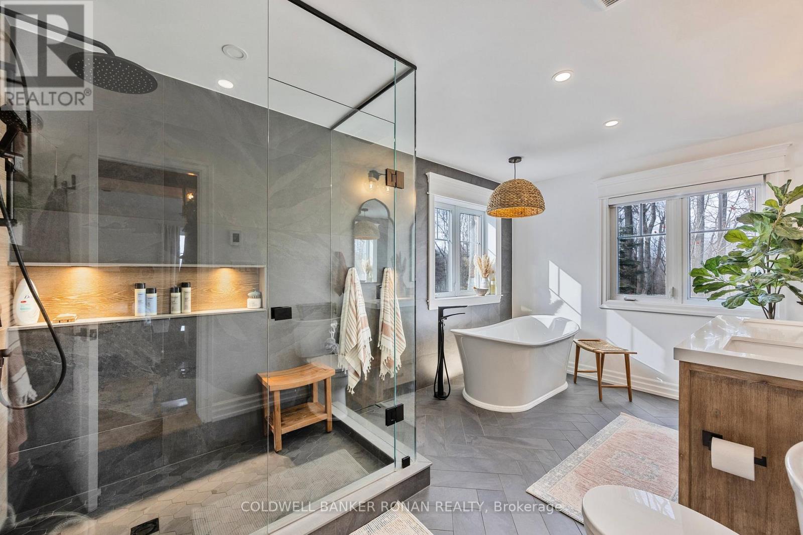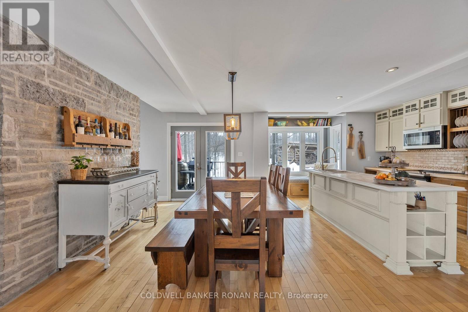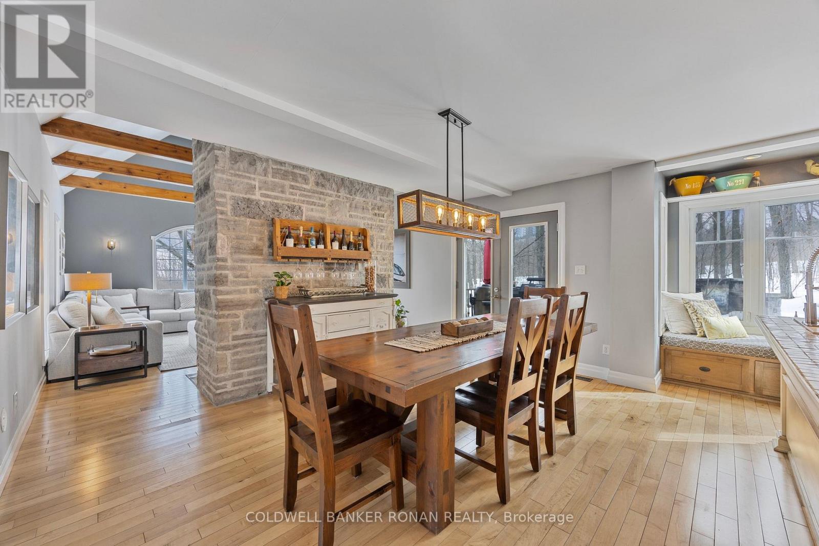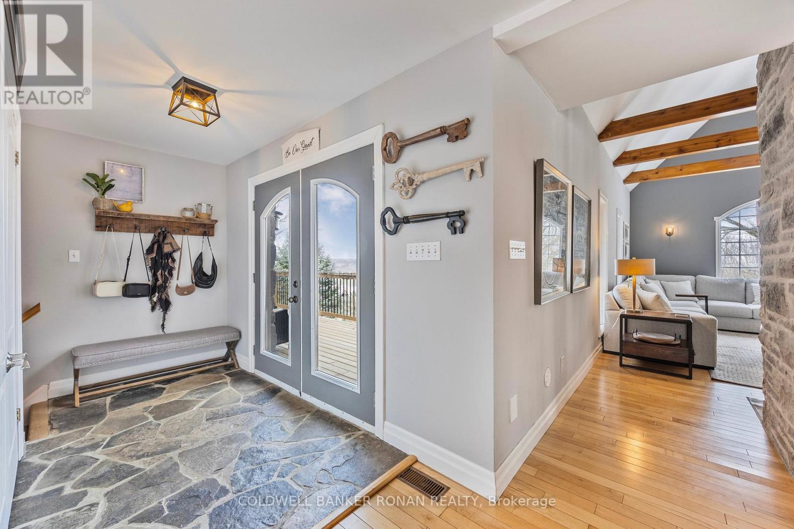 Every so often, a property comes along that offers more than a place to live-it offers a lifestyle. Perched atop a scenic hill, this exceptional custom-built stone home captures sweeping, unobstructed views of the Mulmur Valley. Thoughtfully designed with multiple walkouts and expansive living spaces, the home seamlessly blends indoor comfort with the beauty of its natural surroundings. Inside, quality craftsmanship is evident in every detail. Modern finishes create a refined yet welcoming atmosphere throughout. The main floor features a spacious, family-sized kitchen with a walkout to a decked BBQ area-ideal for entertaining. A charming built-in bench beneath a large bay window frames tranquil forest views, making it the perfect spot to start your day. The living room is anchored by a striking stone fireplace, offering warmth, character, and unforgettable valley vistas. The main level also includes a serene primary suite with a newly renovated, spa-inspired 5-piece bathroom. An additional bedroom on this floor offers flexibility as a guest room, office, or study. Upstairs, three more generously sized bedrooms are complemented by a versatile loft space-perfect for relaxing, reading, or creative pursuits-along with a beautifully updated bathroom. The fully finished lower level, complete with a walkout and oversized windows, is bright and inviting. It features a cozy family room, a third bathroom, and a wood-burning fireplace, creating an ideal space for gathering year-round. Outdoors, the property transforms into a private retreat. Enjoy summer days by the in-ground pool, unwind in the hot tub, or relax in the sauna-all surrounded by peaceful natural beauty. A detached workshop adds functionality for hobbies or projects. Perfectly positioned, this remarkable home offers the tranquility of country living while remaining within easy reach of nearby amenities an added bonus of Bell Fibre Internet-a rare and desirable combination. (id:64974)