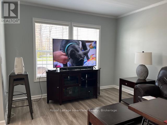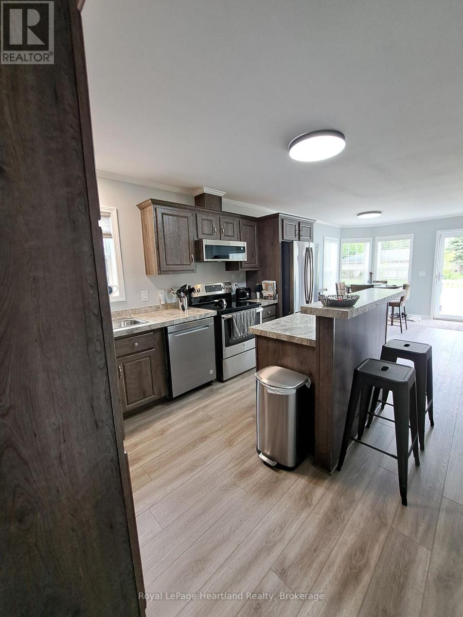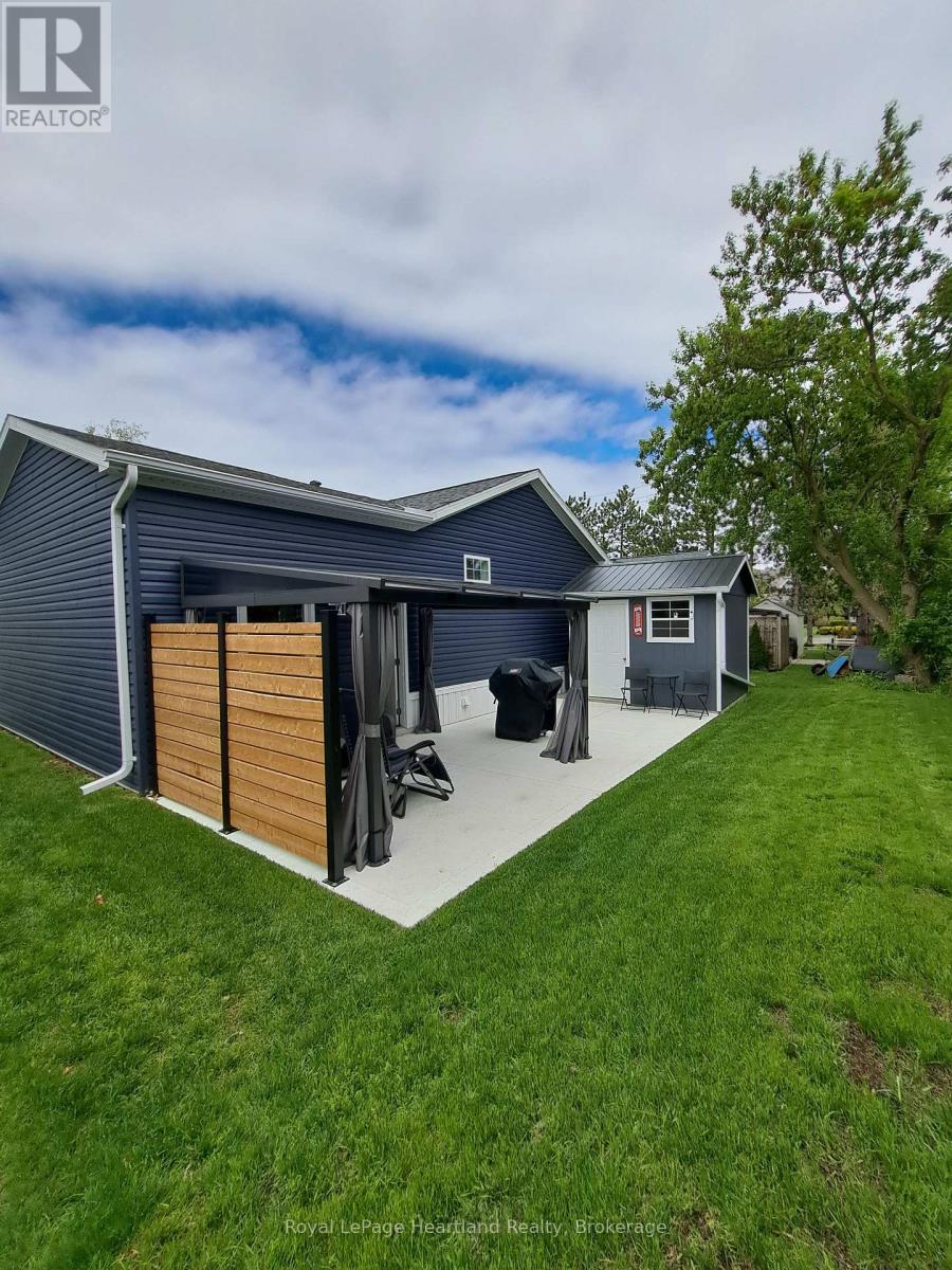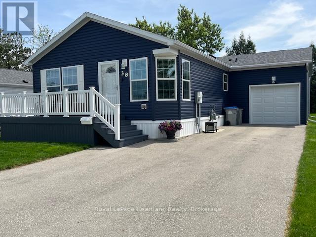 Welcome to Twin Elm Estates in the beautiful town of Strathroy. You are 20 minutes down the road from London in a town that offers all major conveniences - shopping, hospital, golf courses. When you live in Twin Elm you are walking distance to shopping. Twin Elm is a premiere Parkbridge Adult Lifestyle Community offering a very active Clubhouse for a variety of activities to suit everyone's tastes. This home reaches out to you as you enter the Community. Beautiful navy siding with white accents. Great lot - home offers clear view to the front and treed backyard. Front porch for that morning coffee and backyard patio with gazebo to just sit back and relax. Open concept interior with large windows. Kitchen features island and opens to separate dining area. Updates to the home include new vinyl siding, all new light fixtures throughout, all new flooring in main living areas, new laundry counter, washer and upper cabinets in laundry room, newer microrange (slim line), newer cabinets and high toilets in bathroom. Garage features added storage racks. This home shows like a model home and feels comfortable and cozy as you walk through. Land Lease is assumable at $714.78/month for 2026. Taxes at $201.60/month. (id:64974)
