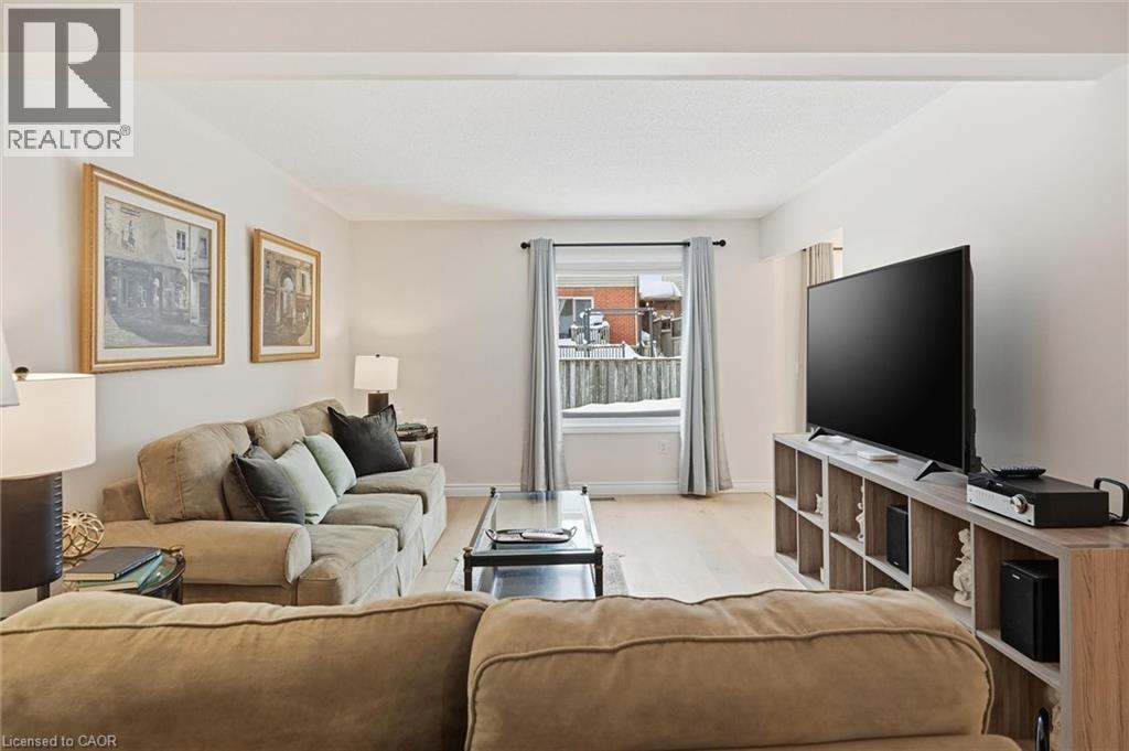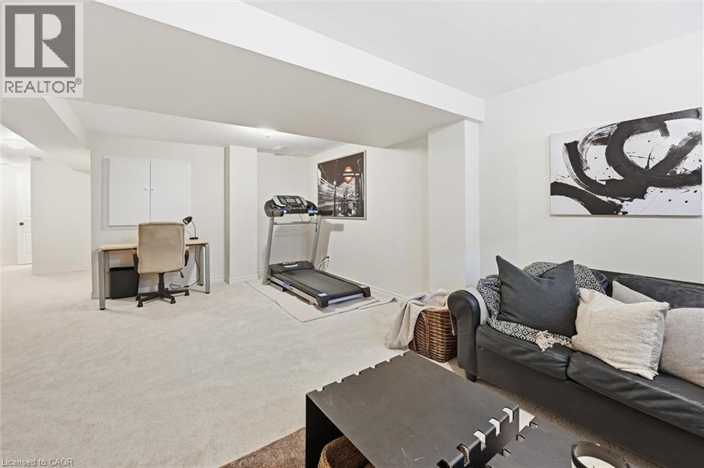 Welcome to this charming, two-storey 3 + 1 Freehold townhome in this sought-after Waterdown West neighbourhood, with over 2100 sq ft of living space.Step into an inviting foyer with a double closet, convenient inside garage access, and a main-floor powder room. A dining room that flows seamlessly into a generously sized living room, showcasing engineered hardwood flooring. The eat-in kitchen features a sliding door to a fully fenced backyard and an attractive patio, ideal for enjoying indoor/outdoor living. On the upper level, you will find three bedrooms and two bathrooms. The spacious primary bedroom offers an oversized closet and a private two-piece en-suite. The finished lower level adds impressive versatility with a large recreation room, a three-piece bathroom, and a separate flex room (or fourth bedroom), perfect for a teenage retreat or guest space. Updates to the home include a freshly painted interior, flooring, and windows. Ideally located, this home is within walking distance to parks, scenic Rockcliffe Trail walks, and shopping. Convenient transport links, with easy access to Highway 403. (id:64974)