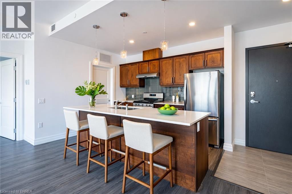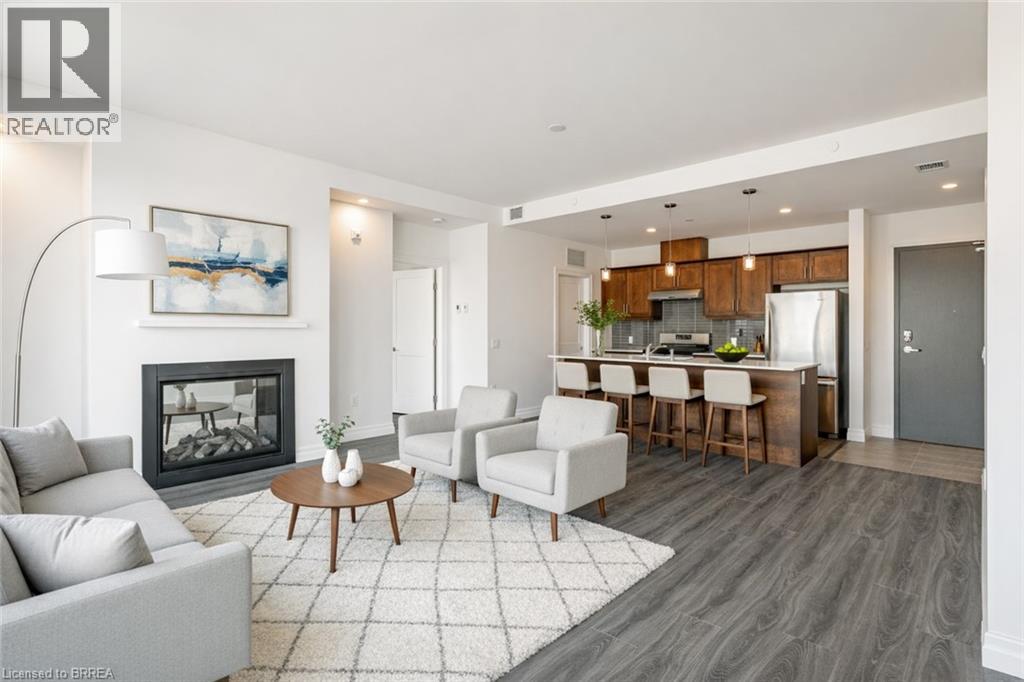 Experience refined lakeside living in this spacious 2-bedroom, 2-bath residence designed with elegance and comfort in mind. Expansive windows invite an abundance of natural light, highlighting soaring 9+ foot ceilings and premium flooring throughout without a trace of carpet. A striking double-sided fireplace creates a warm connection between the living area and the primary suite, where you'll find a generous ensuite and a discreet in-suite laundry. The layout is bright, airy, and thoughtfully finished for those who value both style and convenience. Parking is on the main level of the building for ease, while outdoors you'll enjoy common barbecue areas along the river that flows directly into Lake Erie. Just steps from the boardwalk, sandy beaches, fine dining, boutique shops, and the marina, this is truly year-round lakefront living an unmatched blend of sophistication and leisure. (id:64974)