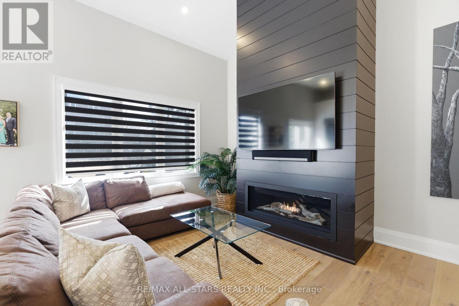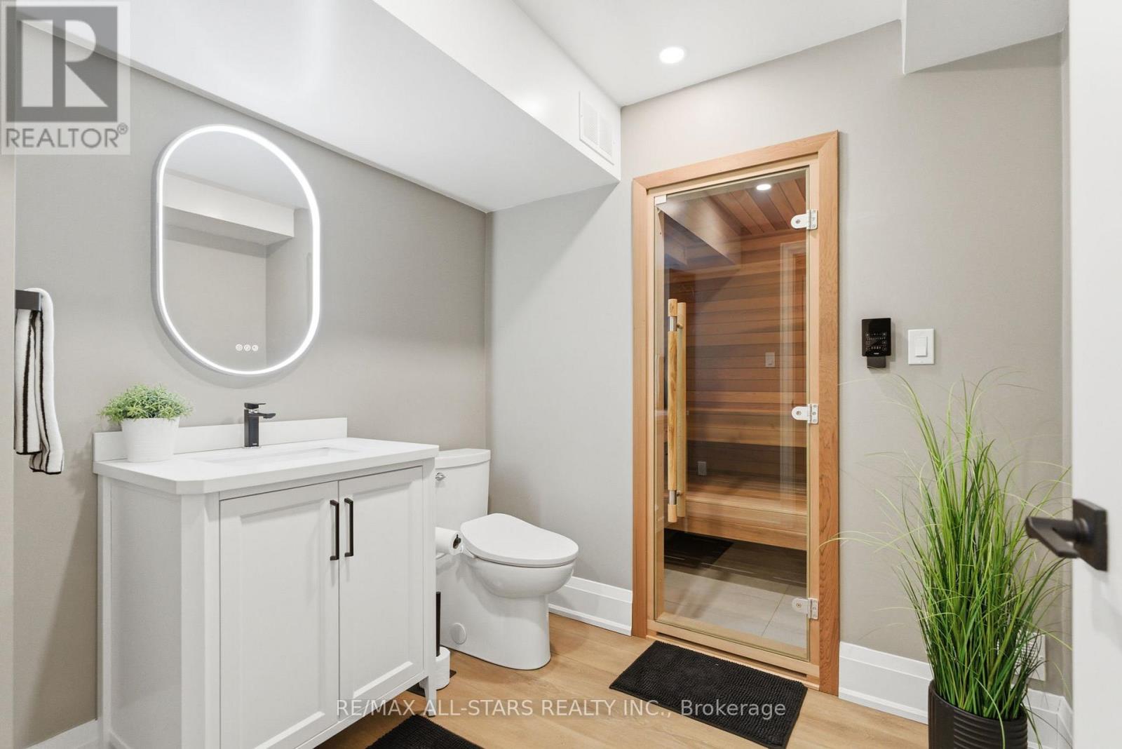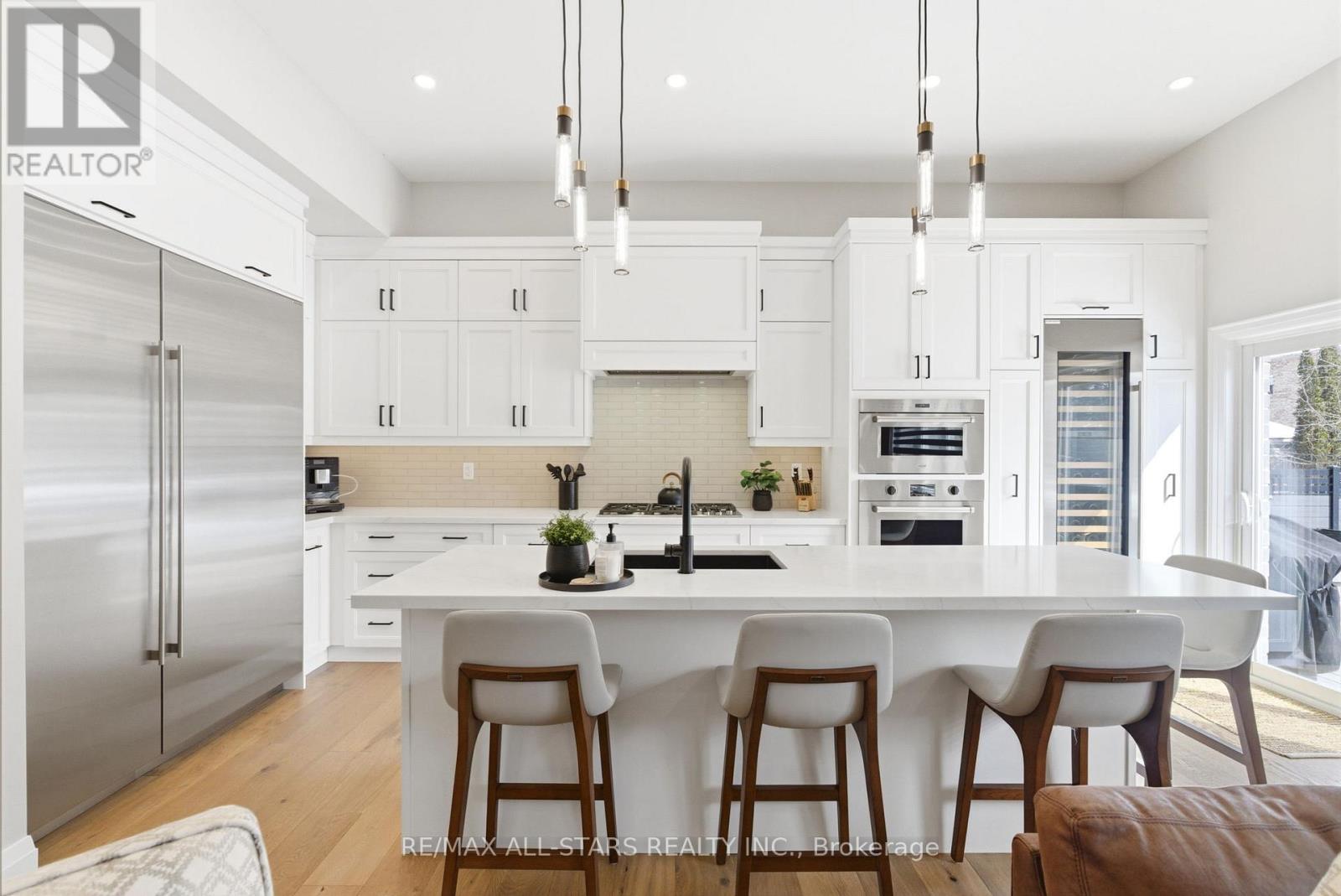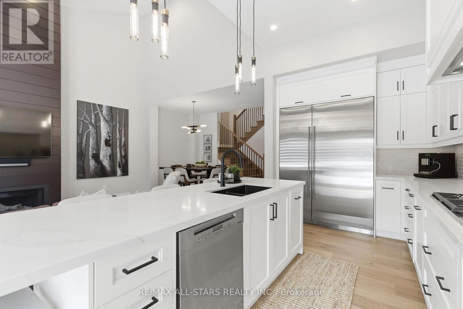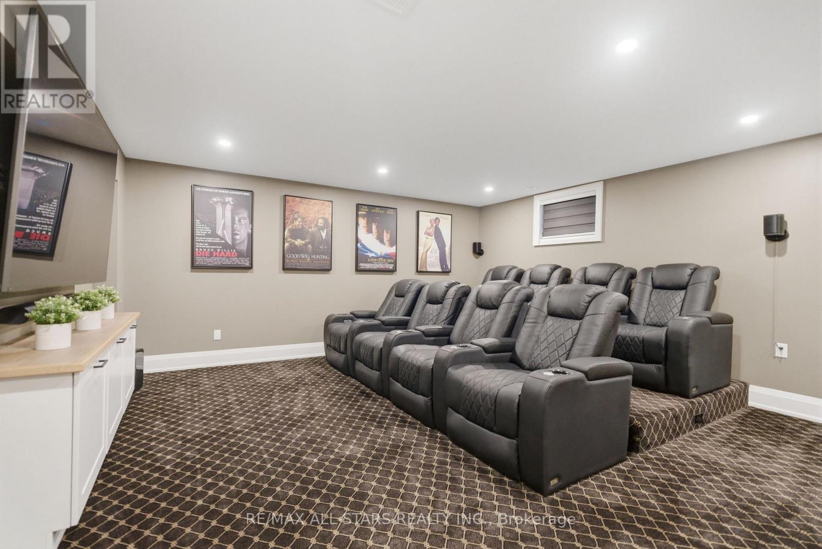This home is the definition of upgraded living. Thoughtfully designed from top to bottom, every space showcases elevated finishes, smart features, and carefully selected details. The main floor welcomes you w/ a living room centred around a Napoleon gas fireplace, shiplap accent wall, and automatic blinds. The kitchen is designed for everyday living and entertaining, w/ quartz counters, a large island w/ extension, two pull-out pantry systems, under-cabinet lighting, and a walkout to the private backyard retreat. The premium appliance package includes a Sub-Zero refrigerator/freezer, Sub-Zero wine fridge, Miele dishwasher, and a suite of Wolf professional appliances. The main floor bedroom features a double closet w/ automatic blinds and organizer, while the nearby 3pc bathroom offers heated floors, a quartz vanity, LED mirror, heated bidet toilet seat, and a glass walk-in shower. The laundry room includes heated tile flooring and built-in cabinetry. The primary suite serves as a private retreat w/ built-in end tables, accent wall, walk-in closet w/ organizers, automatic blinds, and a sliding door to the composite deck w/ hot tub. The ensuite features heated flooring, double vanity w/ quartz counters, glass shower, LED mirrors, and heated bidet toilet seat. Upstairs, the loft offers a dedicated desk area, alongside a large bedroom w/ automatic blinds and a walk-in closet. The 4pc bathroom continues the home's refined design w/ heated floors, quartz vanity, LED mirror, heated bidet toilet seat, and tub. The finished basement adds a home gym w/ specialty flooring, mirrored walls, and a feature wall, plus a private theatre room w/ theatre seating, built-in cabinetry, a dry bar, and automatic blinds. A large bedroom w/ built-in desk and a 2pc bathroom w/ private sauna, quartz vanity, LED mirror, and heated bidet toilet seat complete the level. Outside, upgrades include composite decking, glass railings, a sunken hot tub, gas hookups, irrigation, and composite fencing. (id:64974)