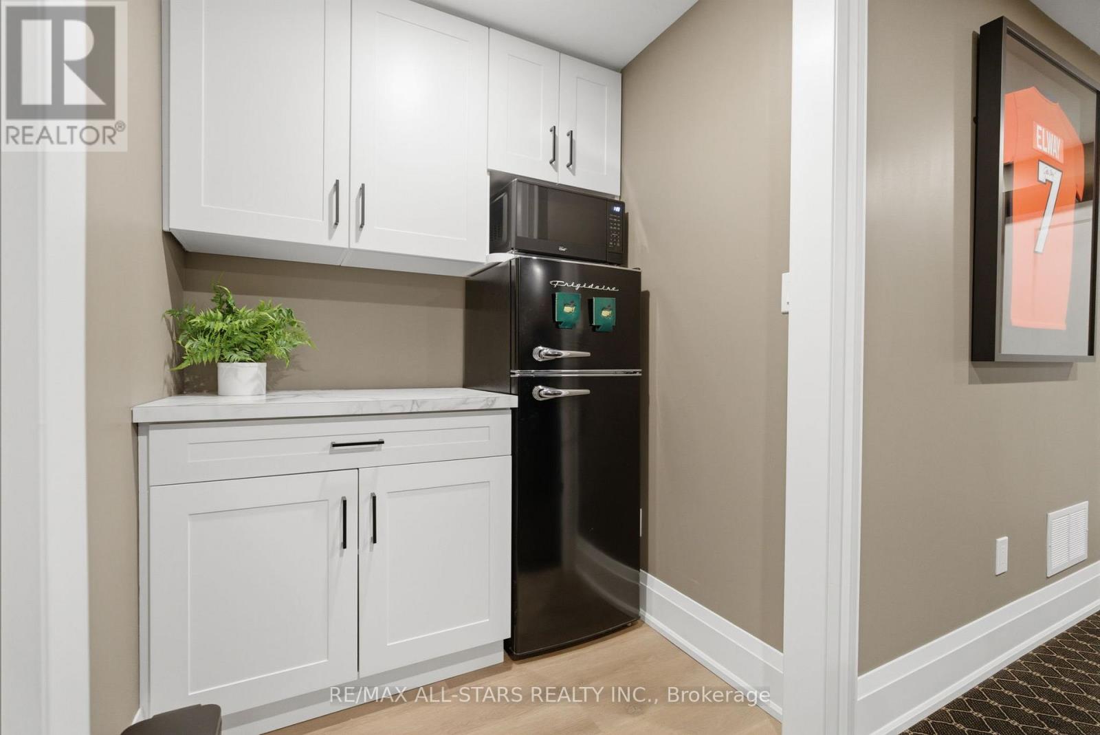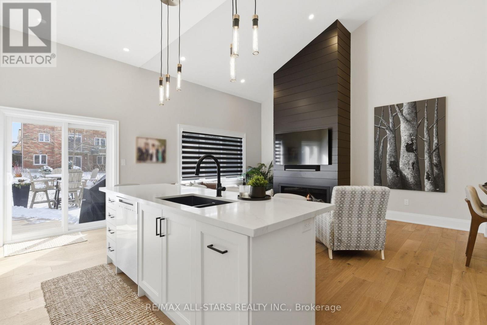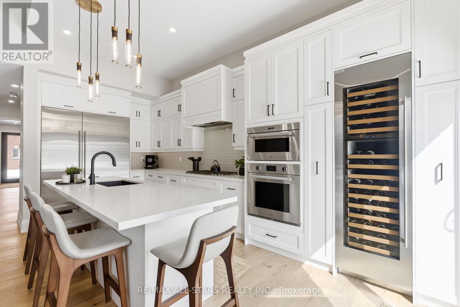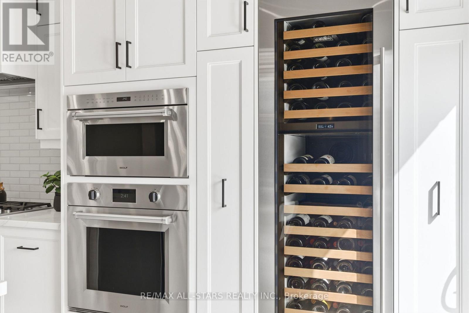 This home is the definition of upgraded living. Thoughtfully designed from top to bottom, every space showcases elevated finishes, smart features, and carefully selected details. The main floor welcomes you w/ a living room centred around a Napoleon gas fireplace, shiplap accent wall, and automatic blinds. The kitchen is designed for everyday living and entertaining, w/ quartz counters, a large island w/ extension, two pull-out pantry systems, under-cabinet lighting, and a walkout to the private backyard retreat. The premium appliance package includes a Sub-Zero refrigerator/freezer, Sub-Zero wine fridge, Miele dishwasher, and a suite of Wolf professional appliances. The main floor bedroom features a double closet w/ automatic blinds and organizer, while the nearby 3pc bathroom offers heated floors, a quartz vanity, LED mirror, heated bidet toilet seat, and a glass walk-in shower. The laundry room includes heated tile flooring and built-in cabinetry. The primary suite serves as a private retreat w/ built-in end tables, accent wall, walk-in closet w/ organizers, automatic blinds, and a sliding door to the composite deck w/ hot tub. The ensuite features heated flooring, double vanity w/ quartz counters, glass shower, LED mirrors, and heated bidet toilet seat. Upstairs, the loft offers a dedicated desk area, alongside a large bedroom w/ automatic blinds and a walk-in closet. The 4pc bathroom continues the home's refined design w/ heated floors, quartz vanity, LED mirror, heated bidet toilet seat, and tub. The finished basement adds a home gym w/ specialty flooring, mirrored walls, and a feature wall, plus a private theatre room w/ theatre seating, built-in cabinetry, a dry bar, and automatic blinds. A large bedroom w/ built-in desk and a 2pc bathroom w/ private sauna, quartz vanity, LED mirror, and heated bidet toilet seat complete the level. Outside, upgrades include composite decking, glass railings, a sunken hot tub, gas hookups, irrigation, and composite fencing. (id:64974)