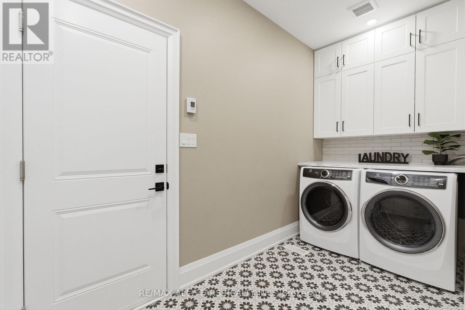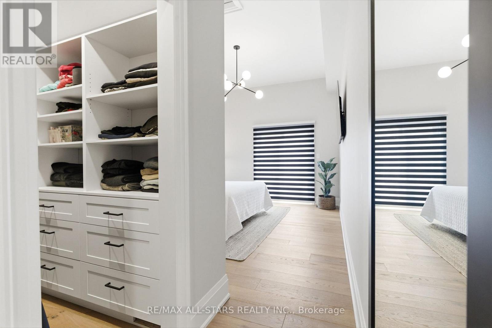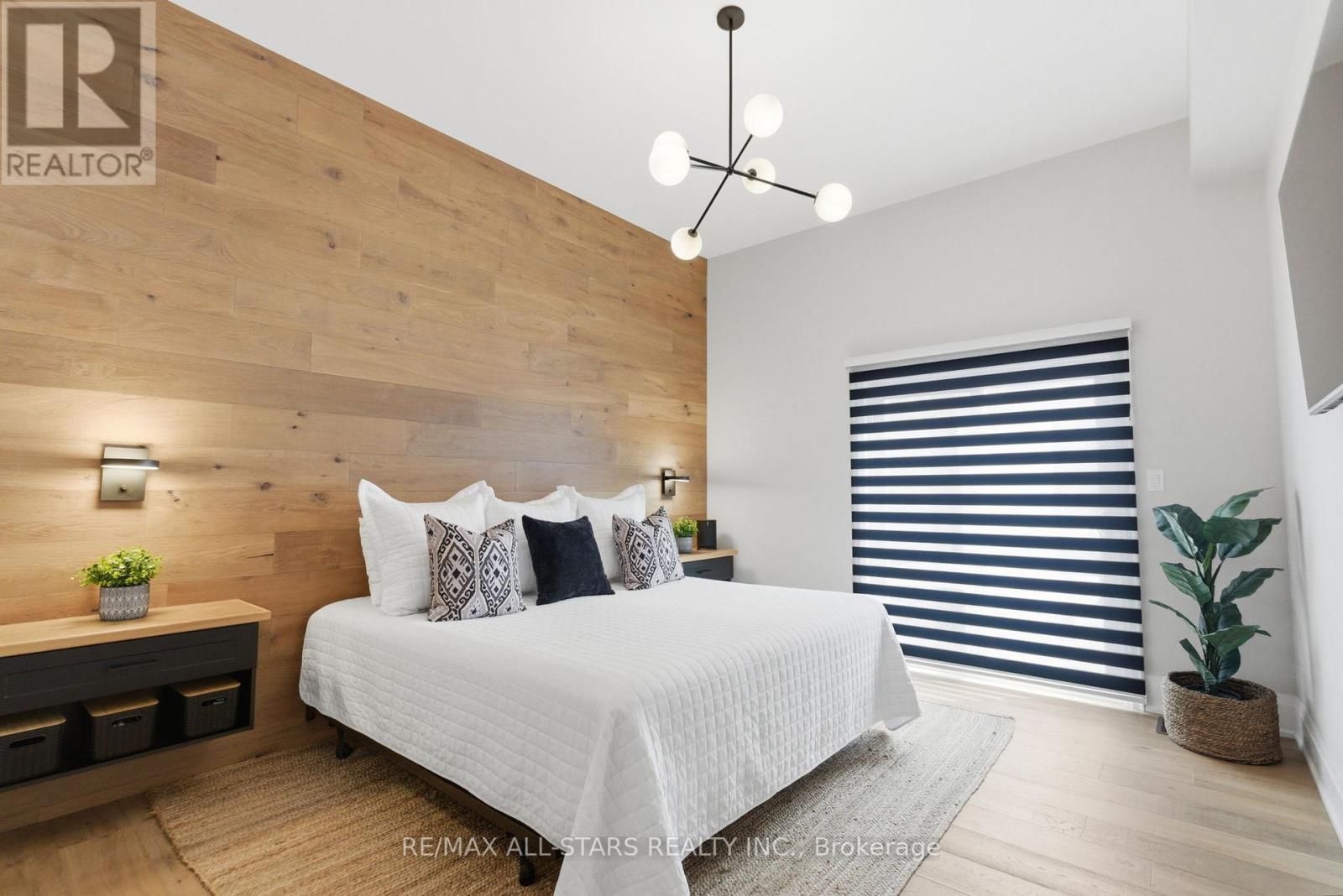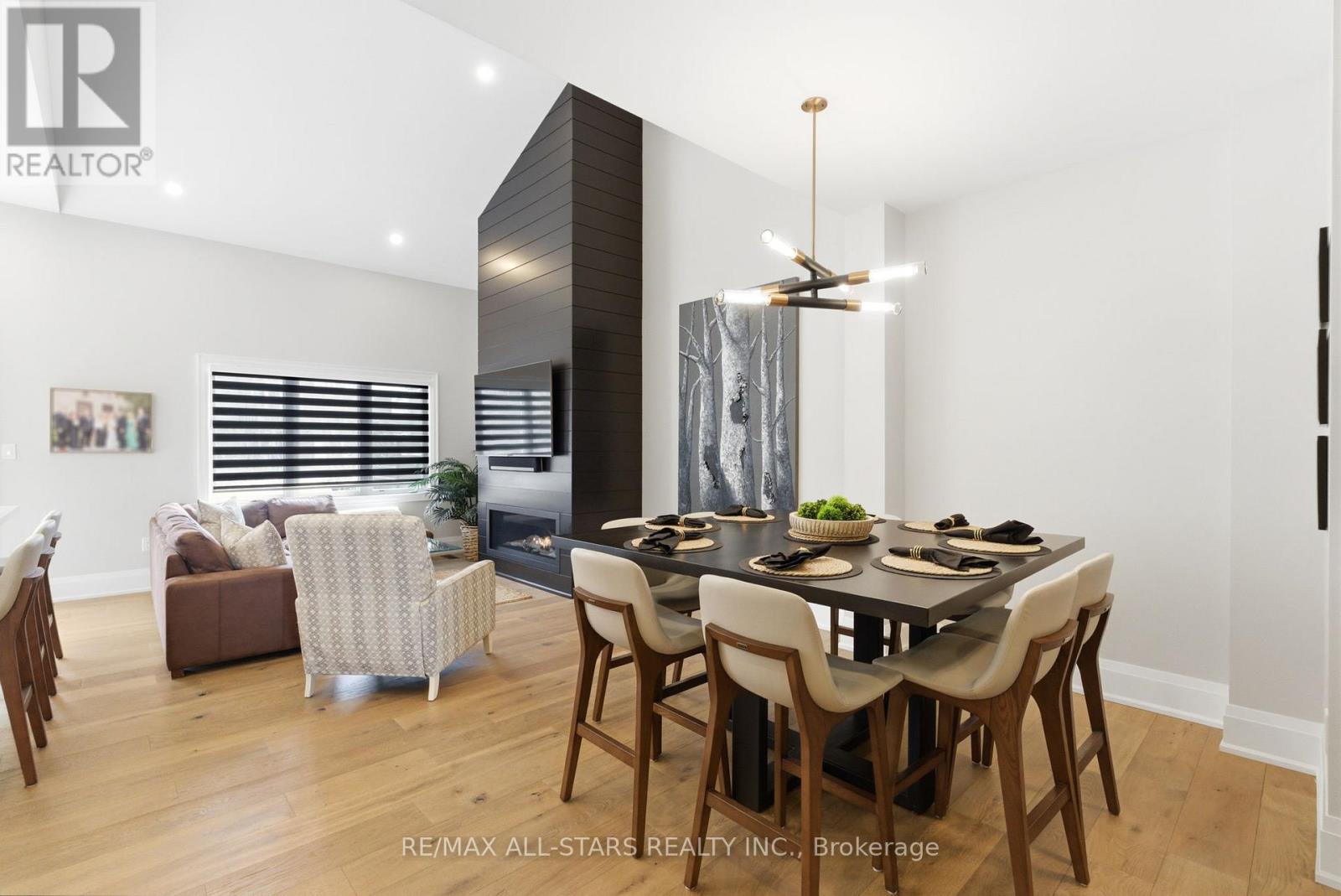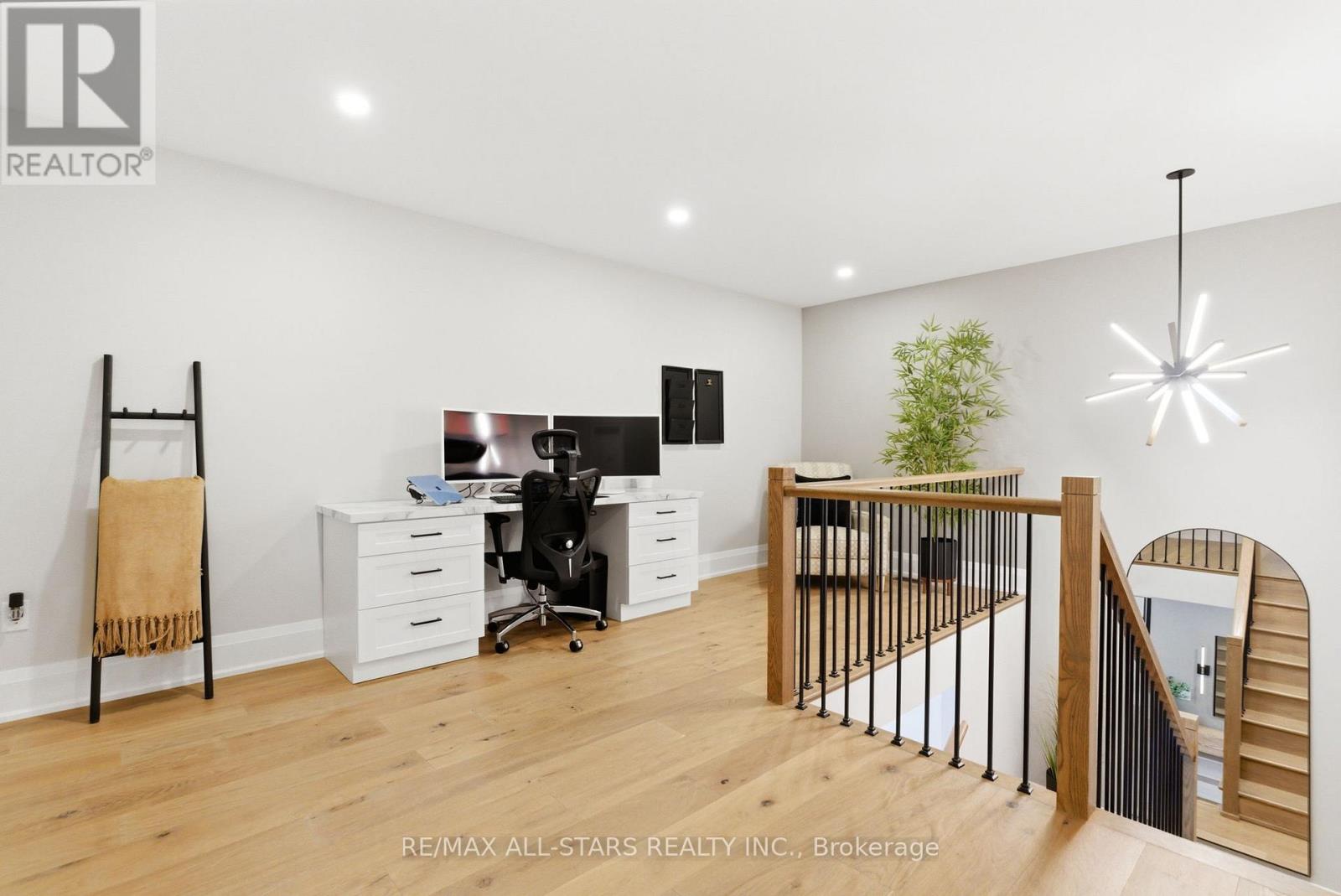 This home is the definition of upgraded living. Thoughtfully designed from top to bottom, every space showcases elevated finishes, smart features, and carefully selected details. The main floor welcomes you w/ a living room centred around a Napoleon gas fireplace, shiplap accent wall, and automatic blinds. The kitchen is designed for everyday living and entertaining, w/ quartz counters, a large island w/ extension, two pull-out pantry systems, under-cabinet lighting, and a walkout to the private backyard retreat. The premium appliance package includes a Sub-Zero refrigerator/freezer, Sub-Zero wine fridge, Miele dishwasher, and a suite of Wolf professional appliances. The main floor bedroom features a double closet w/ automatic blinds and organizer, while the nearby 3pc bathroom offers heated floors, a quartz vanity, LED mirror, heated bidet toilet seat, and a glass walk-in shower. The laundry room includes heated tile flooring and built-in cabinetry. The primary suite serves as a private retreat w/ built-in end tables, accent wall, walk-in closet w/ organizers, automatic blinds, and a sliding door to the composite deck w/ hot tub. The ensuite features heated flooring, double vanity w/ quartz counters, glass shower, LED mirrors, and heated bidet toilet seat. Upstairs, the loft offers a dedicated desk area, alongside a large bedroom w/ automatic blinds and a walk-in closet. The 4pc bathroom continues the home's refined design w/ heated floors, quartz vanity, LED mirror, heated bidet toilet seat, and tub. The finished basement adds a home gym w/ specialty flooring, mirrored walls, and a feature wall, plus a private theatre room w/ theatre seating, built-in cabinetry, a dry bar, and automatic blinds. A large bedroom w/ built-in desk and a 2pc bathroom w/ private sauna, quartz vanity, LED mirror, and heated bidet toilet seat complete the level. Outside, upgrades include composite decking, glass railings, a sunken hot tub, gas hookups, irrigation, and composite fencing. (id:64974)
