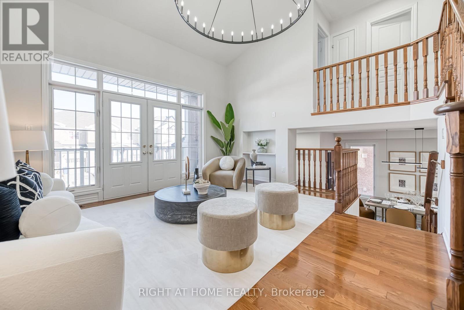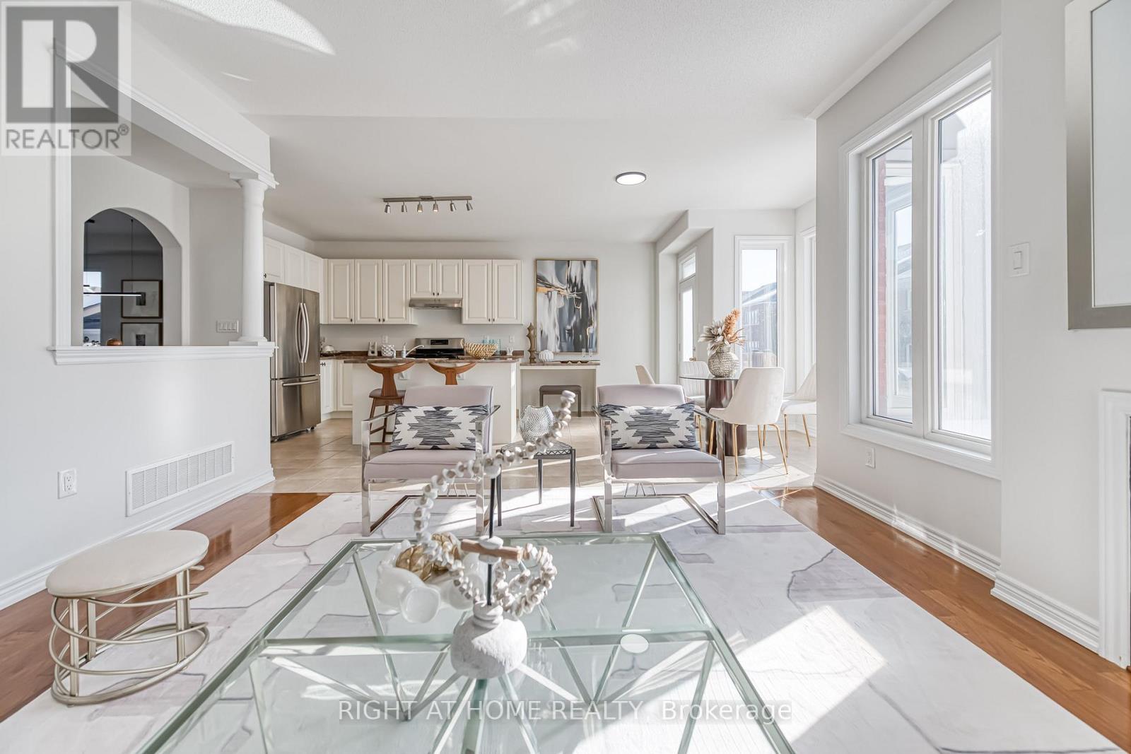 Bring an entertainer's dream here! Fronting on the South ,38 Kellington Tr is nestled in the highly desirable Stouffville Area, offering a bright and spacious living space with 4 bedrooms and 3 baths. This home features a functional & excellent layout, including 9' ceilings on the main floor, a magnificent 21-foot cathedral ceiling on in-between floor, creating an airy and expansive feel. Inside, Double door Entry & large foyer, a generously sized dining room. The Gourmet kitchen boasts stainless steel appliances, a large center island, a enjoyable breakfast area, stepping out to the beautiful backyard, a serene oasis ideal for outdoor gatherings. The kitchen seamlessly flows into the open-concept family room which features a decent gas fireplace, which is perfect for entertaining guests or enjoying family time. The 21 ft Fascinating great room drags amble natural light from a Large Double Door, leading to a walk-out balcony where you can enjoy your morning coffee there. You'll find four generously sized bedrooms, each offering comfort, privacy, & a functional layout. The primary bedroom has a 4-piece ensuite & a large closet. Large windows, hardwood floors throughout on Main & Comfortable Capet on 2nd Floors, a convenient main floor laundry, Direct Entry from Garage, Natural light floods every corner of this sun-filled home. Fully Fenced Backyard Quiet Neighborhood, Minutes to Park, Store, School, Highway! (id:64974)