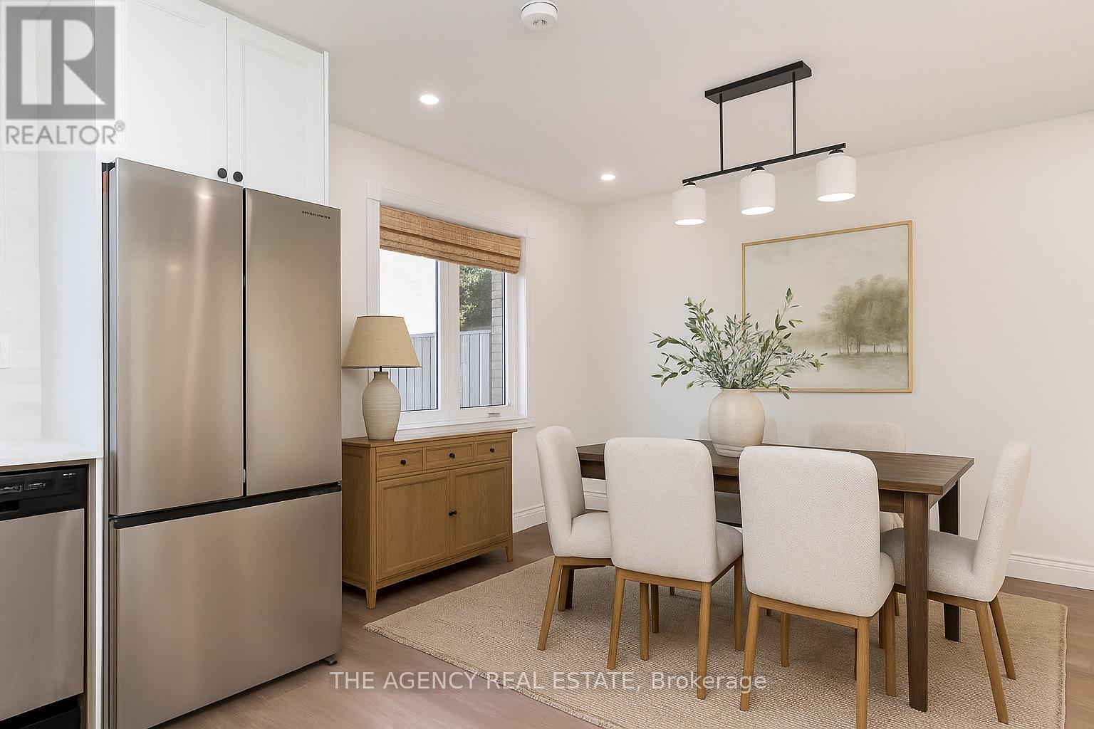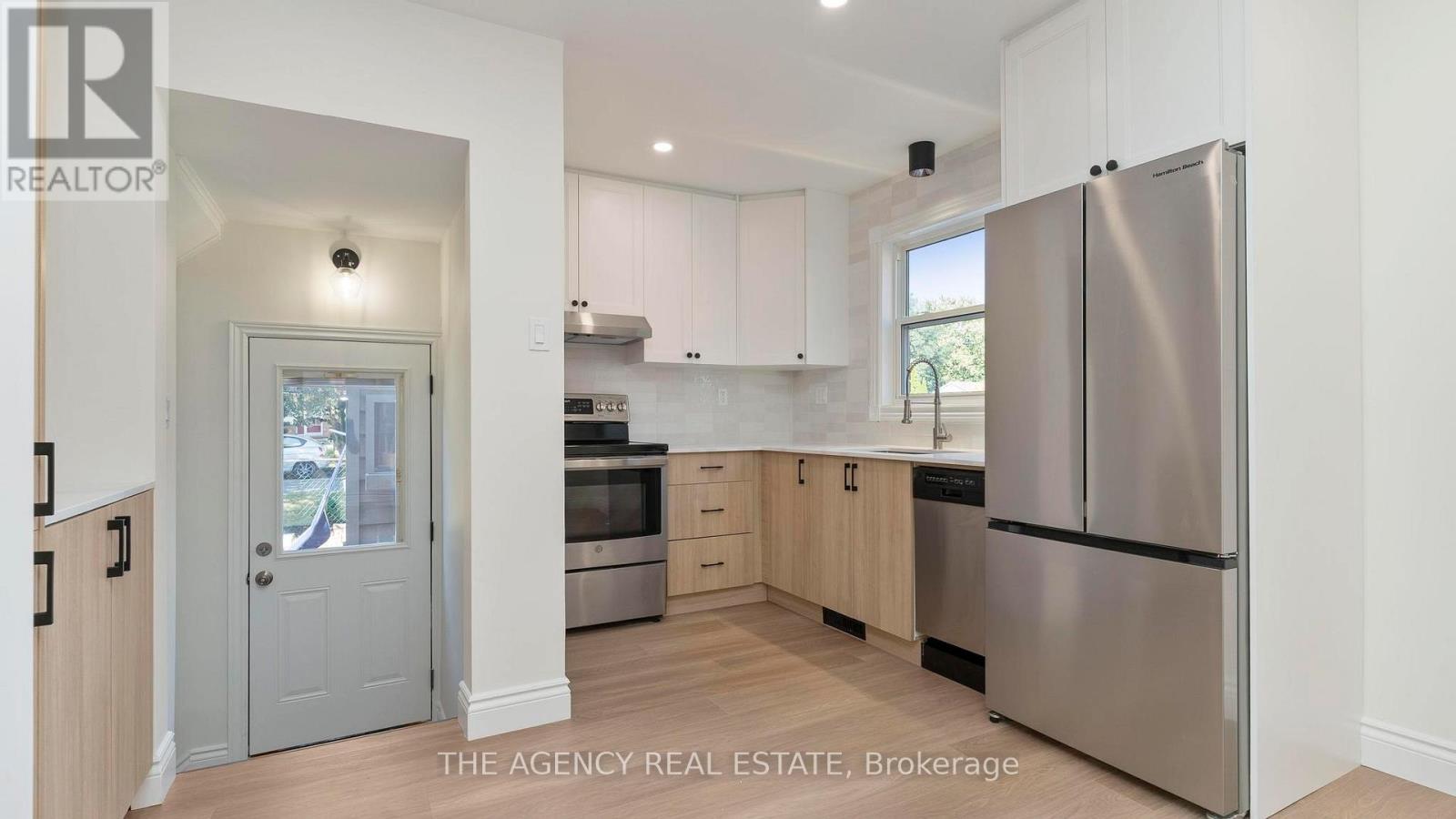 Renovated semi with income potential less than 800m from Fanshawe College! Fully renovated and move-in ready, this 3-bedroom, 2-bath semi-detached home with a separatebasement studio apartment is a rare opportunity in a quiet, family-friendly Huron Heights neighbourhood less than 800m from Fanshawe College. Step inside to a bright, modern interior featuring new flooring, lighting, and oversized windows that flood the home with natural light.The sleek kitchen is complete with stainless steel appliances, updated cabinetry, and a walkout to the backyard. Upstairs, three spacious bedrooms and a beautifully updated 4-piece bath provide comfort and style. The finished basement boasts a private entrance, kitchen, bathroom,and open-concept space-perfect for generating rental income or accommodating extended family.Outside, enjoy a fully fenced yard with fresh landscaping and a handy storage shed. With the adjoining property also recently renovated, this home offers excellent curb appeal and long-term value. Ideal for investors, first-time buyers, or families seeking a stylish home with a mortgage-helper suite, this property truly checks all the boxes. (id:64974)
