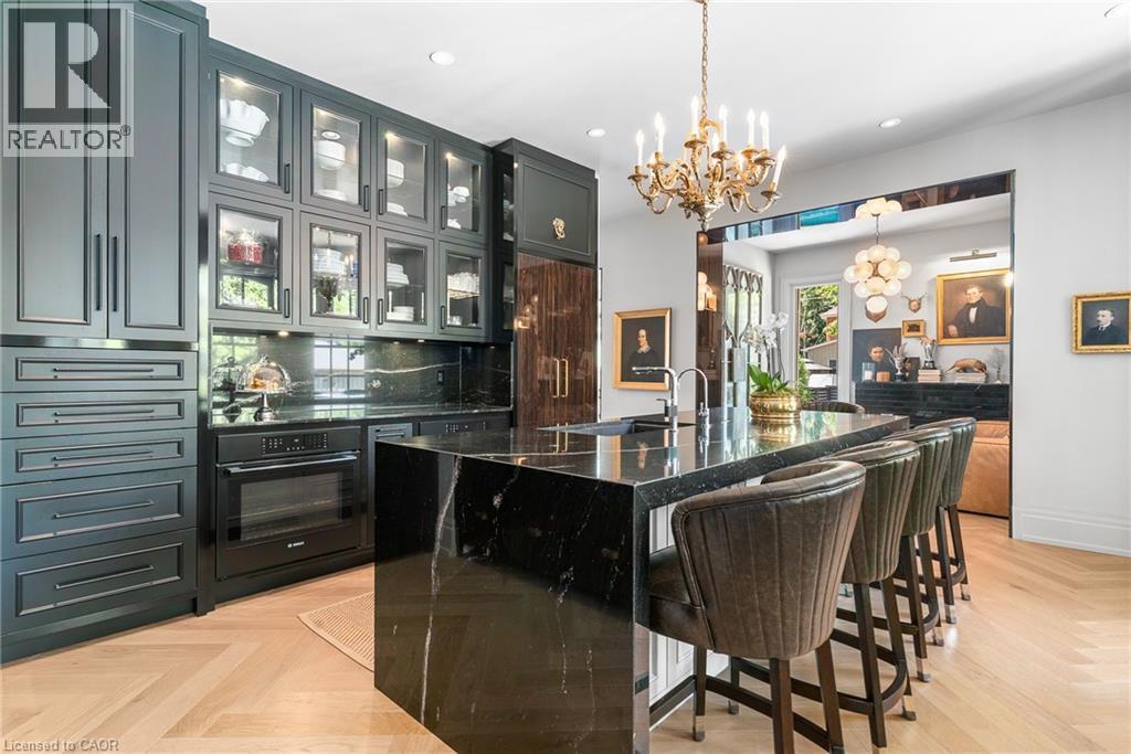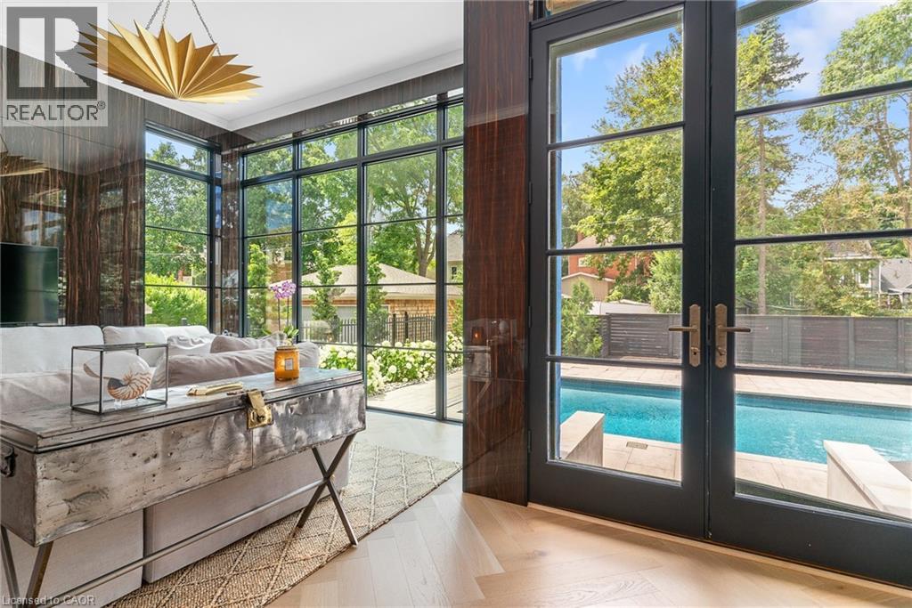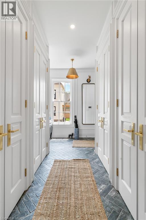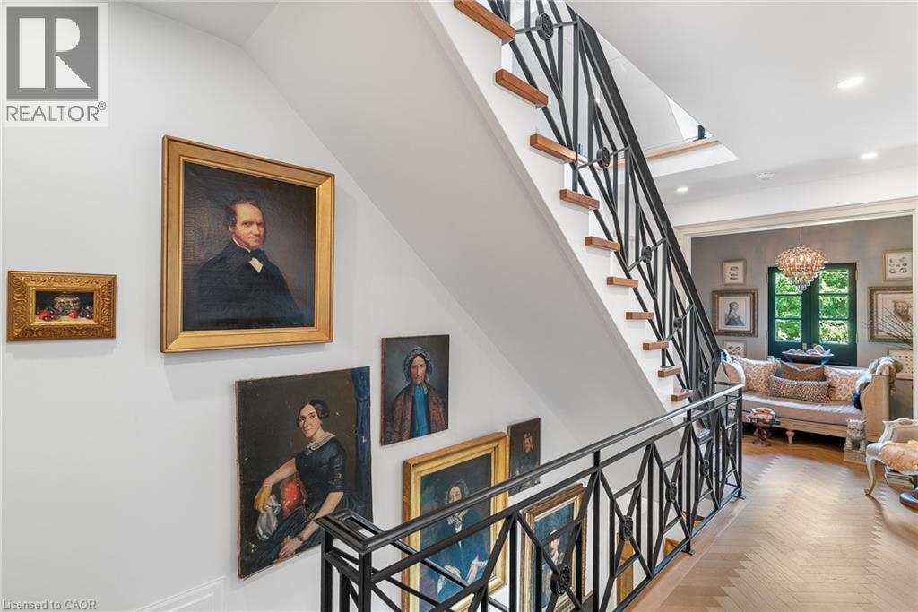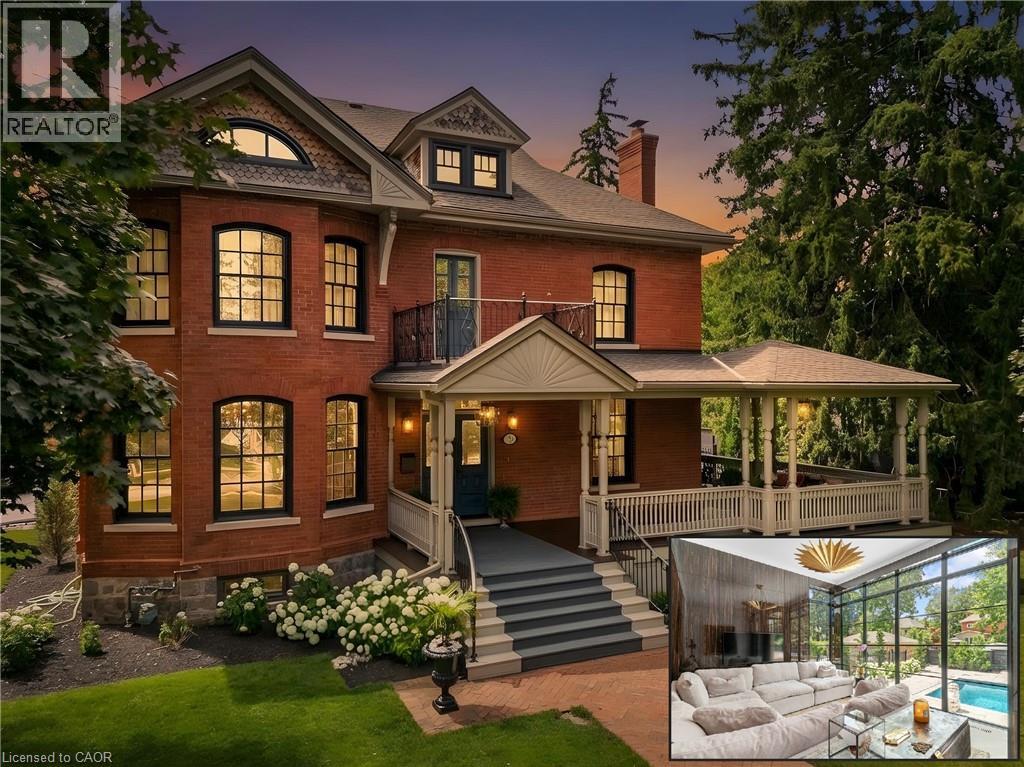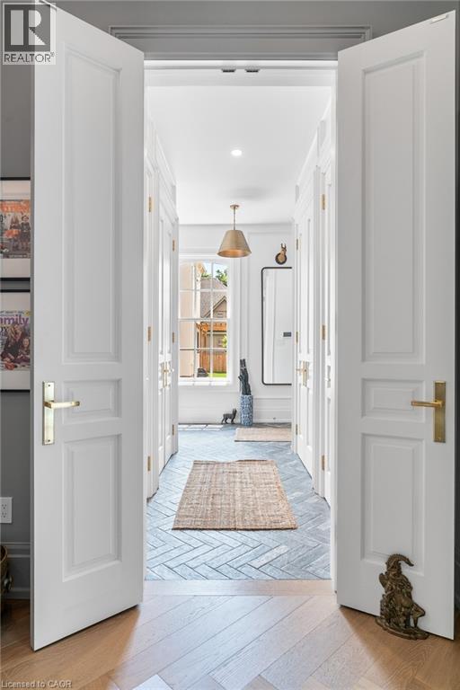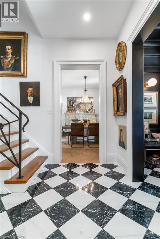 LIVING IN ART. Behind the meticulously restored red double brick façade architectural heritage and avant-garde luxury unfold. This is not merely a residence; it is a curated experience. The journey begins as you pass through custom cherry and mahogany exterior doors, fitted with heavy Rocky Mountain hardware. You are greeted by a striking marble checkerboard floor in the main hallway, where the eye is immediately drawn to a grand staircase featuring walnut treads and hand-forged wrought iron railings. Beneath your feet, white oak herringbone hardwood floors stretch across the main floor, framed by soaring 10ft ceilings and 10inch poplar baseboards. The formal living areas are anchored by two rebuilt Rumford-style wood-burning fireplaces, each crowned with a solid marble mantel. In the family room, a custom wallpaper mural from Italy serves as a sophisticated backdrop. Every transition feels intentional. The kitchen is a technical marvel hidden within bespoke craftsmanship. A 9’4” granite island with waterfall sides commands the room, accented by antique brass sconces and a chandelier. Behind high-gloss panels and solid brass hardware lies a suite of professional Bosch appliances, including double wall ovens and more. Retreat to the second floor, where 9ft ceilings create an atmosphere of airy elegance. The primary suite is an escape, featuring a dramatic cathedral ceiling and a spa-inspired ensuite. Here, a 10ft walnut vanity with a quartz top sits alongside a double marble shower and a separate throne room, all finished with marble walls and floors. The story continues outside, where a wraparound front porch with stained floorboards offers the perfect perch for morning coffee. The rear of the home reveals a private oasis: a fenced yard featuring a 38’x16’ heated inground salt pool and a composite deck. With all-updated electrical wiring, plumbing, and a zoned high-efficiency HVAC system, this estate is a rare offering in a prestigious and historic neighbourhood. (id:64974)