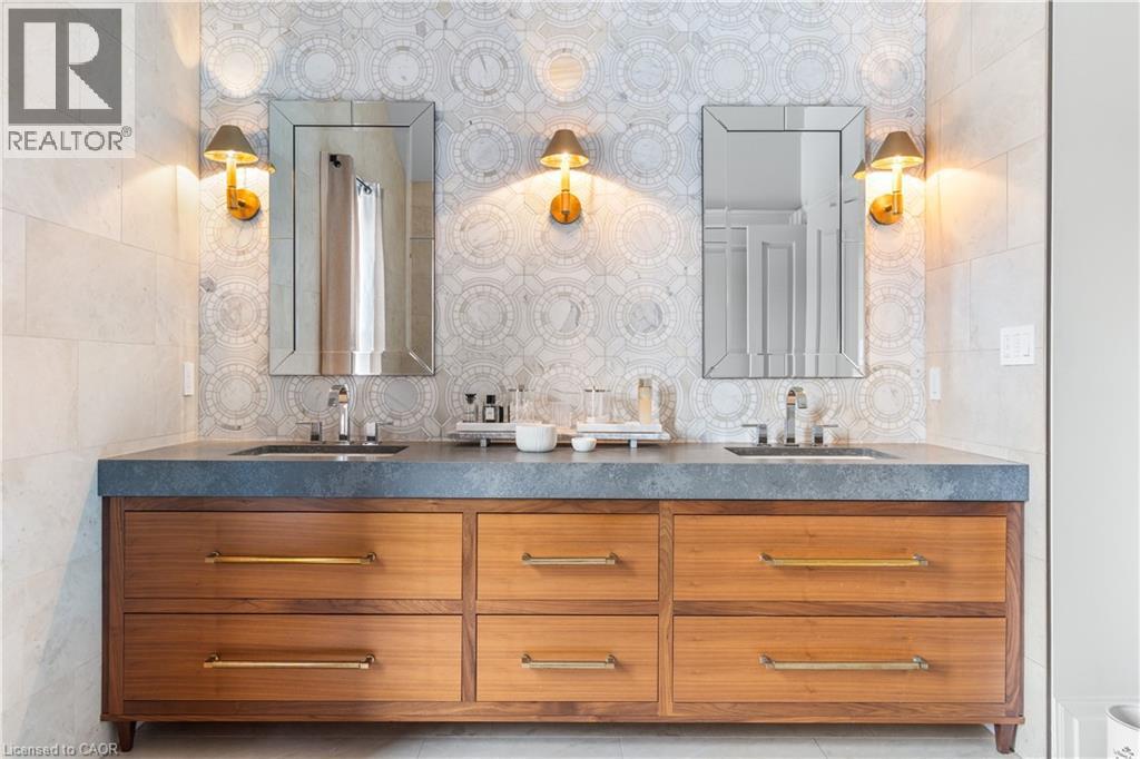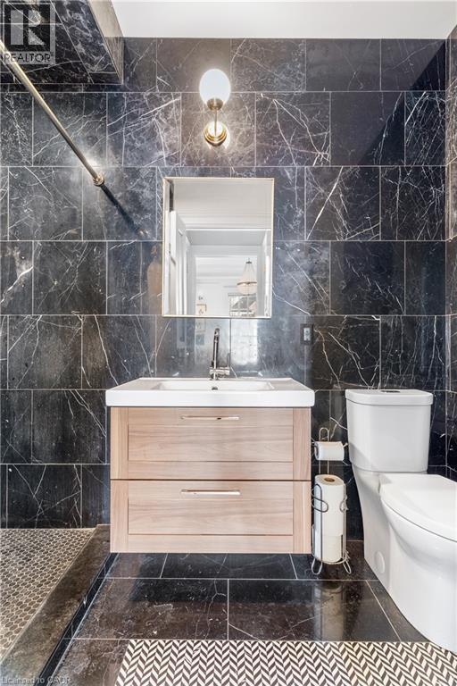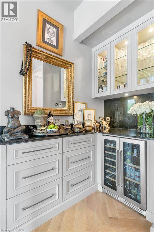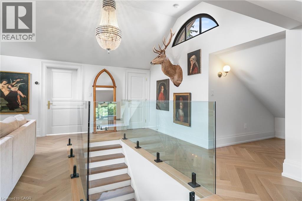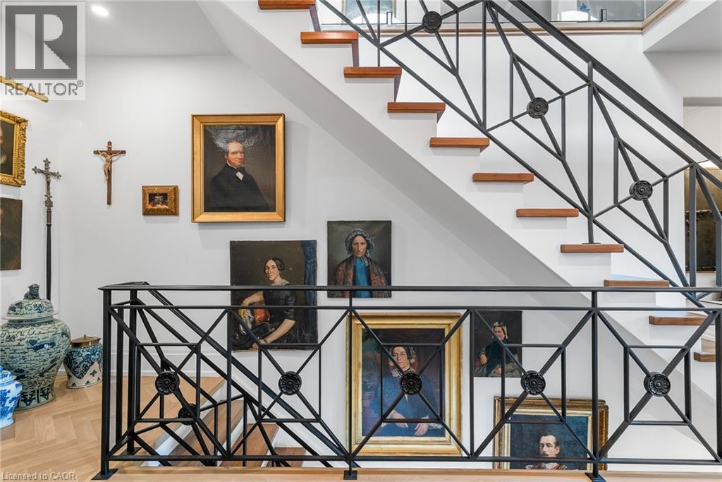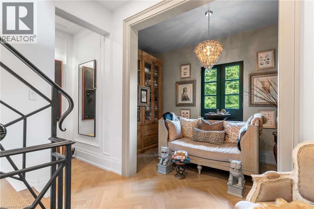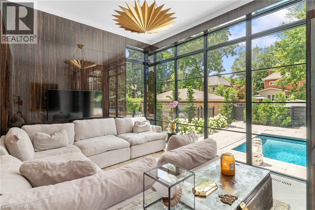 LIVING IN ART. Behind the meticulously restored red double brick façade architectural heritage and avant-garde luxury unfold. This is not merely a residence; it is a curated experience. The journey begins as you pass through custom cherry and mahogany exterior doors, fitted with heavy Rocky Mountain hardware. You are greeted by a striking marble checkerboard floor in the main hallway, where the eye is immediately drawn to a grand staircase featuring walnut treads and hand-forged wrought iron railings. Beneath your feet, white oak herringbone hardwood floors stretch across the main floor, framed by soaring 10ft ceilings and 10inch poplar baseboards. The formal living areas are anchored by two rebuilt Rumford-style wood-burning fireplaces, each crowned with a solid marble mantel. In the family room, a custom wallpaper mural from Italy serves as a sophisticated backdrop. Every transition feels intentional. The kitchen is a technical marvel hidden within bespoke craftsmanship. A 9’4” granite island with waterfall sides commands the room, accented by antique brass sconces and a chandelier. Behind high-gloss panels and solid brass hardware lies a suite of professional Bosch appliances, including double wall ovens and more. Retreat to the second floor, where 9ft ceilings create an atmosphere of airy elegance. The primary suite is an escape, featuring a dramatic cathedral ceiling and a spa-inspired ensuite. Here, a 10ft walnut vanity with a quartz top sits alongside a double marble shower and a separate throne room, all finished with marble walls and floors. The story continues outside, where a wraparound front porch with stained floorboards offers the perfect perch for morning coffee. The rear of the home reveals a private oasis: a fenced yard featuring a 38’x16’ heated inground salt pool and a composite deck. With all-updated electrical wiring, plumbing, and a zoned high-efficiency HVAC system, this estate is a rare offering in a prestigious and historic neighbourhood. (id:64974)