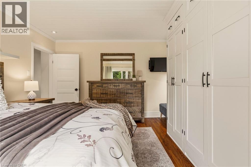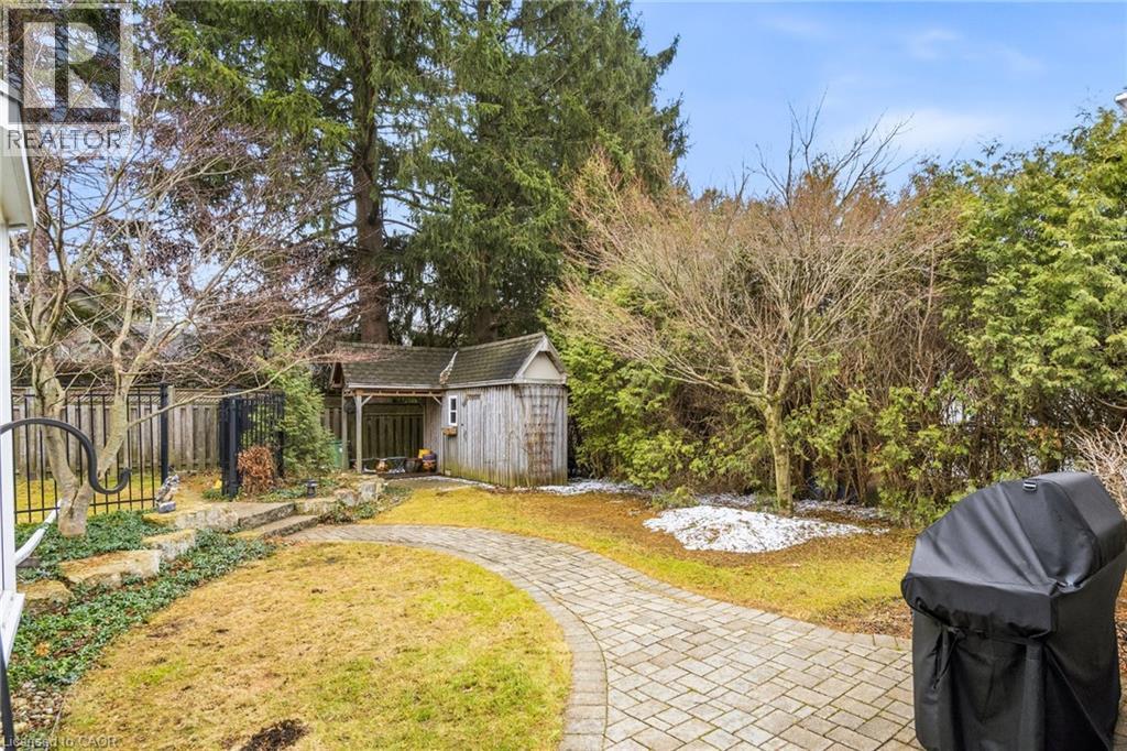 Welcome to this beautifully maintained home in the highly desirable Oakhill neighbourhood in the heart of Old Ancaster offering over 2000 square feet of living space. Situated on a large, mature lot, this property offers charm, space, and exceptional outdoor living. The main level features 3 spacious bedrooms and an updated 3 piece bathroom, along with a bright living and dining room combination with hardwood floors throughout and a cozy gas fireplace. The kitchen is well appointed with brand new quartz countertops (2026) and stainless steel appliances. The primary bedroom features built ins as well as sliding doors to the backyard. Stunning finished basement offers excellent additional living space with a large rec room, fourth bedroom, laundry area, and an oversized bathroom featuring a soaker tub and separate shower. The basement walk-up to the side entrance provides excellent potential for a future in-law suite or secondary unit. Step outside to your private backyard oasis with beautiful landscaping, mature greenery, and plenty of space to relax or entertain. Additional features include a detached single car garage with new concrete floor, an 8' x 16' storage room addition beside garage, and a separate backyard shed. A gas BBQ line adds extra convenience for outdoor entertaining. A rare opportunity to own a charming bungalow in the coveted Old Ancaster community, close to parks, schools, and all local amenities. (id:64974)