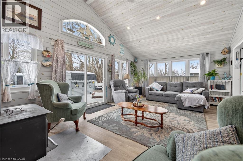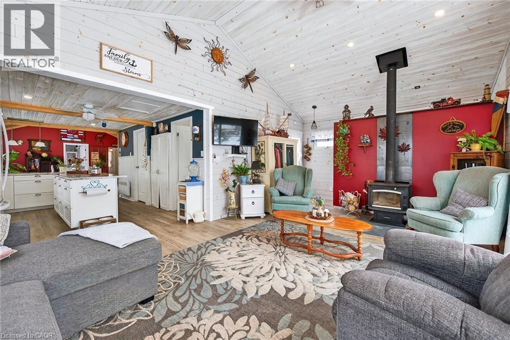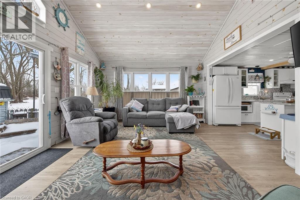 If you are looking for peace and quiet where the world slows down and your neigbours include the deer that come up to the porch for a snack & the sound of birds in the wind – this is it! Magical 38 Siddall Road in Lowbanks offers 1100 square foot home on 50x150ft private lot plus this property is a part of an association that owns 15 acres of common land including 750 feet of sandy beach, some bush and some open areas to enjoy. Association fee is only $75/year. One storey home features many updates including cozy rear addition with wood burning stove, soaring cathedral ceilings and patio door walk out to the beautiful back yard. Recently renovated kitchen is the heart of this home offering island/breakfast area, newer white cabinetry, tile backsplash & white washed wood ceiling. Large dining room here as well as two bedrooms plus 3 pc bath, laundry room and foyer. Pull down attic hatch provides extra storage. Very functional – everything you need to live a simple peaceful life. Charming front porch plus large deck area in the back for your outdoor relaxation. Three great sheds in the back yard – 10x10 with conc flr, insulation, power & steel roof. Second shed is 10x12ft with wood floor, steel roof and power. Last shed is a cool decommissioned out house – perfect for extra storage. Mechanicals: steel roof (except porch), vinyl siding, insulated crawl space, “hydrid” septic, water cistern, 100 amp electrical on breakers, propane gas fireplace plus wood burning stove for heat. Open the windows in the summer to feel the cool Lake breeze (or use a portable ac unit). High speed fibre optic internet here. Change your life – come to the lake! (id:64974)