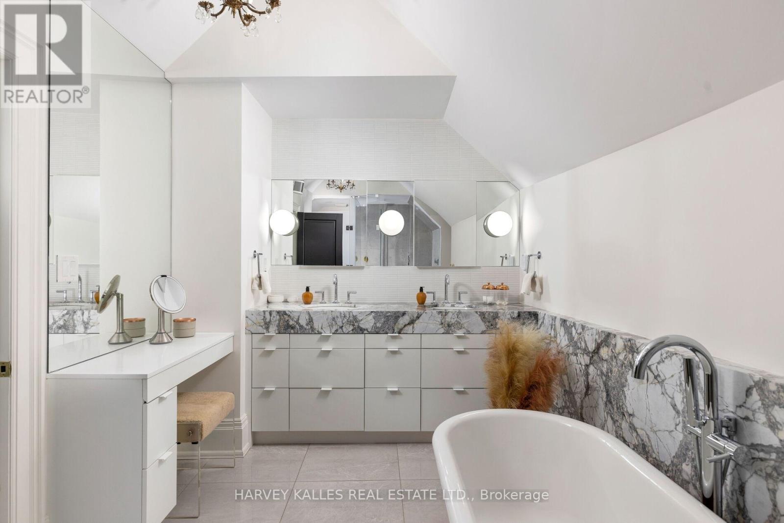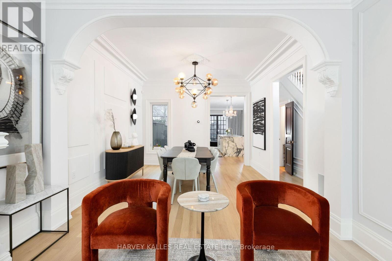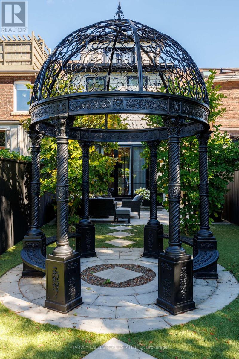 Ultra-luxurious turnkey detached Roncesvalles home fully reimagined w/ a complete, high-end reno that seamlessly blends timeless elegance with modern sophistication. Offering 4 bdrms, 4 baths & approx 3200sqft of exquisitely finished living space, this residence showcases exceptional craftsmanship & designer finishes throughout. The main flr features a spectacular open-concept layout w/ soaring ceilings, abundant natural light & refined architectural details incl. rich oak flrs, custom plaster mouldings, marble-surround gas f/p, ceiling medallions & rosette accents. The showpiece chef's kitchen is nothing short of breathtaking, appointed w/ rare Italian Paonazzo marble, bespoke cabinetry & premium finishes, flowing into a spacious fam rm w/ seamless w/o to a private backyard oasis--perfect for elevated indoor/outdoor living & upscale entertaining. Set on an extraordinary 156-ft deep lot, the backyard is a serene, romantic retreat featuring a custom wrought-iron gazebo ideal for elegant outdoor dining & unforgettable gatherings. The primary suite is a true sanctuary, boasting French doors to a Juliet balcony (future deck potential), a custom W/I closet & a spa-inspired ensuite wrapped in marble w/ a vintage cast iron soaker tub w/ artisanal copper & chrome detailing. The 2nd flr offers 3 addl bdrms, 2 w/ ensuite bathrooms, one used as an oversized office w/ bay window seating w. access to hallway bathroom. The lower lvl is designed for indulgence w/ a custom wet bar, glassed in wine cellar, TV lounge w/ flp, music rm & ample storage. Rare 2-car garage + 1 add'l parking, Located in the heart of vibrant Roncesvalles, steps to top restaurants, cafés, boutiques schools, transit, High Park & the lake, w/ easy access to TTC, hwys & downtown-an exceptional offering of refined luxury living, crafted for the most discerning buyer seeking comfort prestige, and an unparalleled lifestyle in a premier west-end neighbourhood, combining elegance, privacy and sophistication. (id:64974)