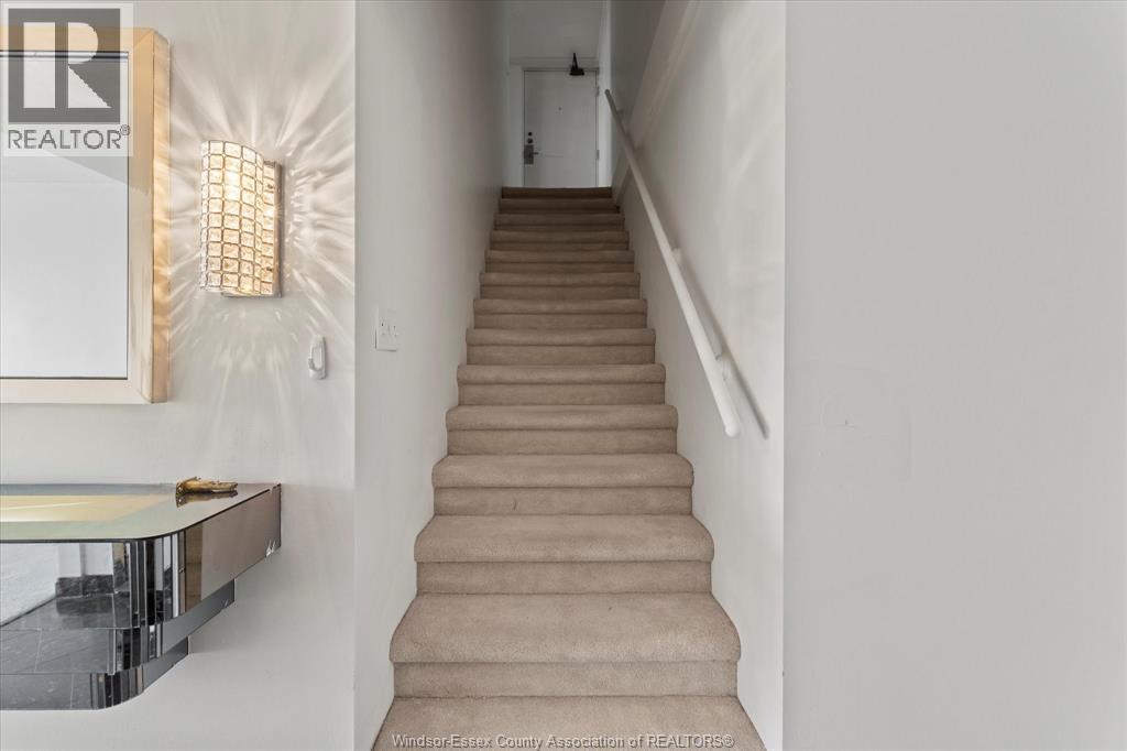 Bright South-Facing Loft Condo with Balcony & Skyline Views - Royal Windsor Terrace. Two-storey loft condominium offering refined downtown Windsor living. Approximately 1,230 sq ft with two bedrooms and two bathrooms. South-facing exposure provides excellent natural light and skyline views. Open-concept main level with modern kitchen and four-person breakfast bar, ideal for entertaining. Private balcony for reading or garden space. Includes same floor laundry, generous closet space, and same-floor storage locker. All appliances included. Utilities included except electricity (historically about $75/month). Condo fees included in the lease. (id:64974)