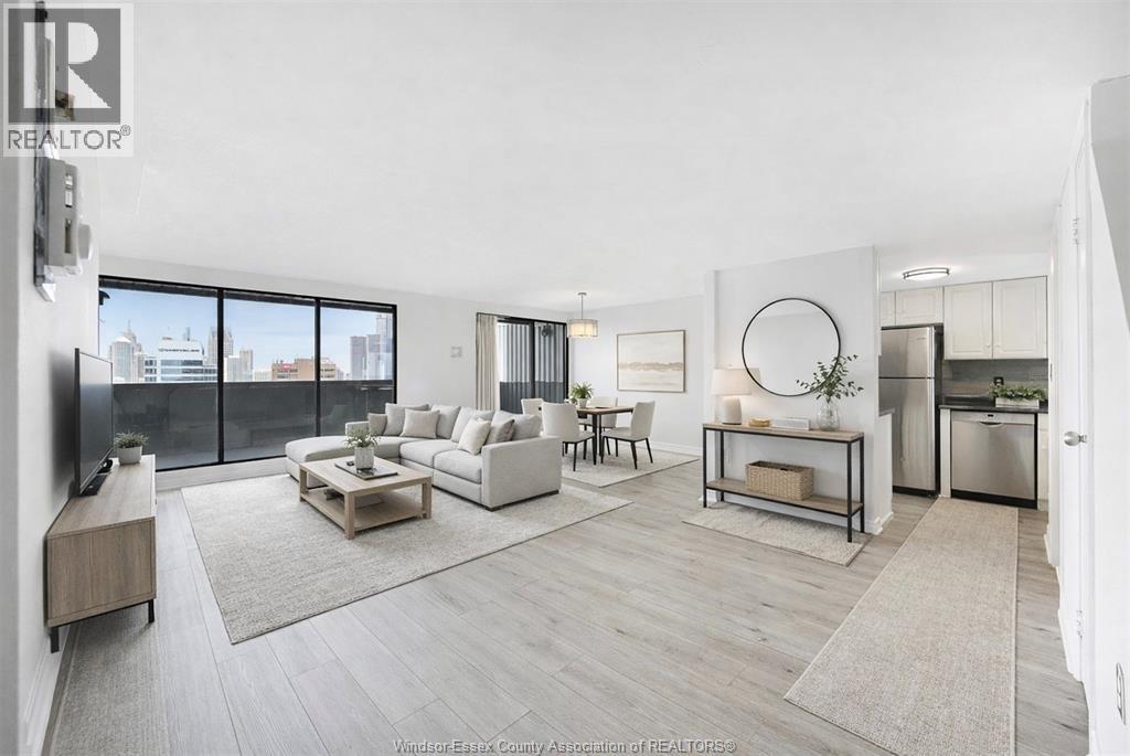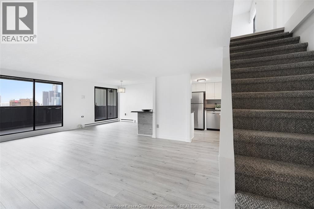 **RARE FIND** THIS EXECUTIVE, NORTH-FACING 2 STORY CONDO IS A VERY RARE FIND, BOASTING STUNNING VIEWS OF THE WATER AND AN IMPRESSIVE PANORAMA OF BOTH WINDSOR AND DETROIT SKYLINES. FEATURING 2 SPACIOUS BEDROOMS AND 2 BATHROOMS, INCLUDING A CONVENIENT MAIN FLOOR POWDER ROOM, THIS HOME COMBINES LUXURY WITH FUNCTIONALITY. THE LARGE OPEN-CONCEPT LIVING AND DINING AREA IS FLOODED WITH NATURAL LIGHT FROM AN EXPANSIVE WALL OF WINDOWS AND A PATIO DOOR, WHICH LEAD TO A PRIVATE BALCONY - PERFECT FOR ENJOYING SUNSETS AND FIREWORKS OVER THE WATER. THE WELL-APPOINTED KITCHEN OFFERS AMPLE CABINETRY, GENEROUS COUNTER SPACE, 3 APPLIANCES AND A WINDOW FOR ADDED BRIGHTNESS. UPSTAIRS BOTH BEDROOMS SHOWCASE BEAUTIFUL VIEWS OF THE WATER, WHILE A COZY LOUNGE AREA CREATES THE IDEAL SPACE TO UNWIND WITH A GOOD BOOK. THERE IS ALSO AN OFFICE NOOK, CATERING TO ALL YOUR WORK FROM HOME NEEDS. ANOTHER AMAZING FEATURE OF THIS CONDO IS THE OPTION TO ENTER OR EXIT FROM BOTH THE 16TH OR 17TH FLOOR, OFFERING ADDED CONVENIENCE AND VERSATILITY TO YOUR EVERYDAY LIVING. YOU’LL LOVE THIS RESORT STYLE BUILDING WITH TONS OF AMENITIES THAT INCLUDE AN INDOOR HEATED POOL, CAR WASH STATION, ELEVATOR, FITNESS CENTRE, PARTY ROOM, RACQUET COURTS, RECREATION CENTRE AND A ROOFTOP TERRACE. THIS EXCEPTIONAL CONDO COMBINES STYLE, COMFORT, AND PRACTICALITY, ENSURING YOU EXPERIENCE A LIFESTYLE THAT TRULY RISES ABOVE THE ORDINARY. (id:64974)