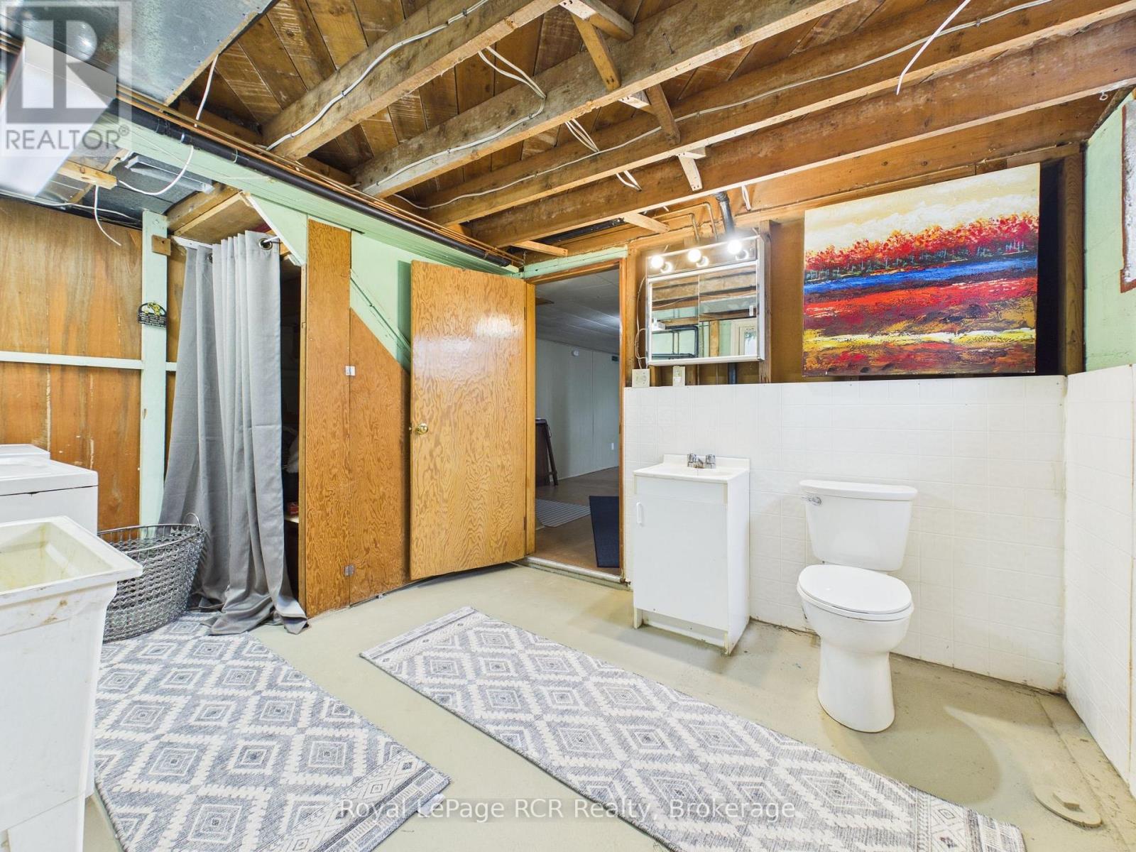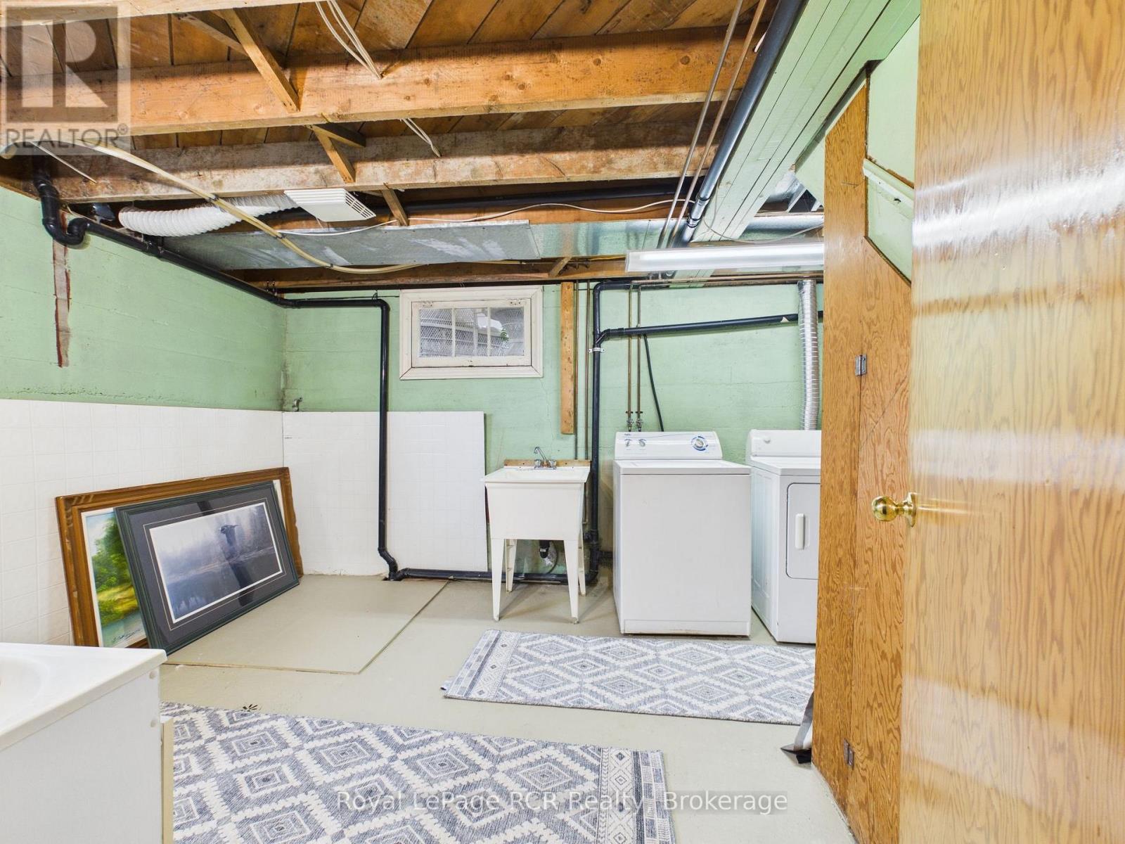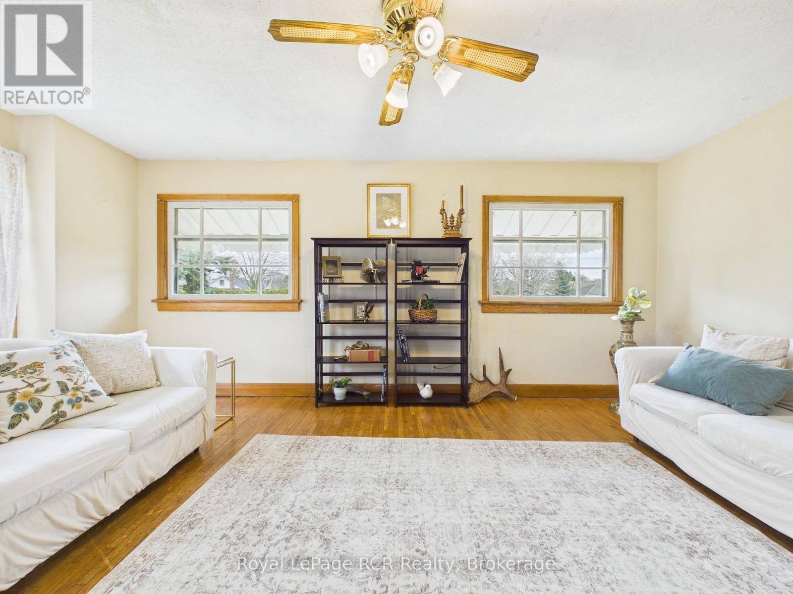 Situated on a generous 75' x 100' lot, this bungalow offers the perfect blend of character, comfort, and potential. Curb appeal is evident from the moment you arrive, featuring classic siding, a durable metal roof, an attached single-car garage, and a mature hedge that creates a truly private backyard retreat. Step inside to a bright, spacious living room with warm hardwood flooring that flows seamlessly throughout the entire main level. The eat-in kitchen offers ample cabinetry, counter space, and plenty of room for the family. Two comfortable bedrooms and a 4-piece main floor bathroom round out the main level nicely. The full basement adds tremendous value with a partially finished recreation room, a combined laundry and 2-piece bathroom, and a large utility room - offering incredible storage and future finishing potential. Reliable natural gas forced-air heating keeps things comfortable year-round. Outside, the deep backyard is a private oasis enclosed by a tall, manicured hedge - ideal for children, pets, or summer entertaining. The single-wide asphalt driveway leads to the attached garage for added convenience. Located in a quiet, mature neighbourhood just minutes from Listowel Memorial Hospital, parks, and all local amenities. Whether you're a first-time buyer, downsizer, or investor - this one is not to be missed! (id:64974)