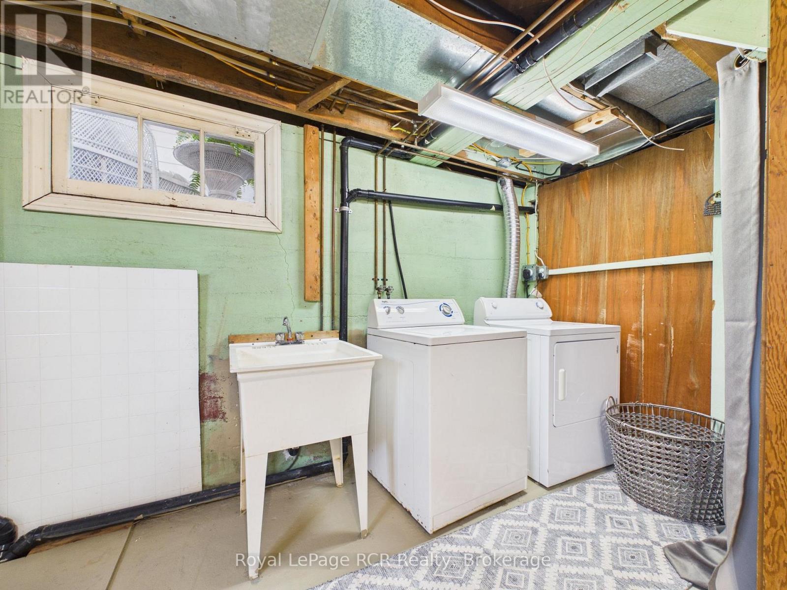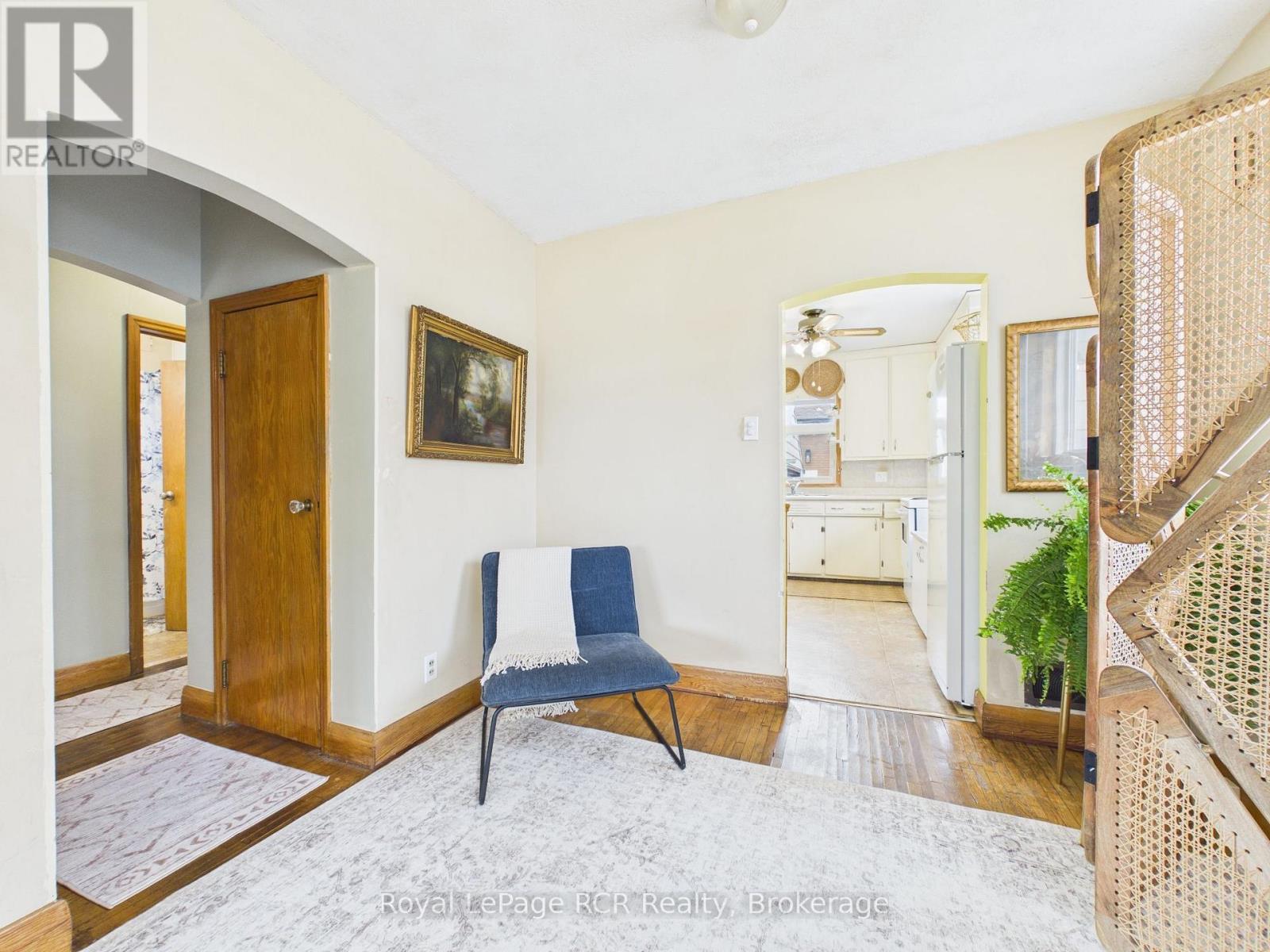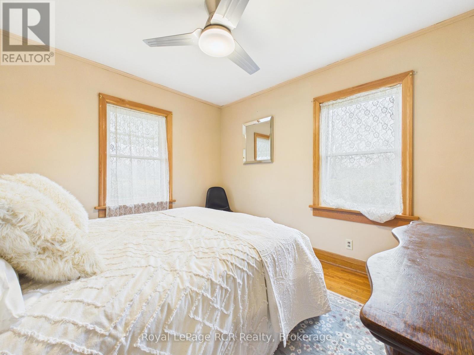Situated on a generous 75' x 100' lot, this bungalow offers the perfect blend of character, comfort, and potential. Curb appeal is evident from the moment you arrive, featuring classic siding, a durable metal roof, an attached single-car garage, and a mature hedge that creates a truly private backyard retreat. Step inside to a bright, spacious living room with warm hardwood flooring that flows seamlessly throughout the entire main level. The eat-in kitchen offers ample cabinetry, counter space, and plenty of room for the family. Two comfortable bedrooms and a 4-piece main floor bathroom round out the main level nicely. The full basement adds tremendous value with a partially finished recreation room, a combined laundry and 2-piece bathroom, and a large utility room - offering incredible storage and future finishing potential. Reliable natural gas forced-air heating keeps things comfortable year-round. Outside, the deep backyard is a private oasis enclosed by a tall, manicured hedge - ideal for children, pets, or summer entertaining. The single-wide asphalt driveway leads to the attached garage for added convenience. Located in a quiet, mature neighbourhood just minutes from Listowel Memorial Hospital, parks, and all local amenities. Whether you're a first-time buyer, downsizer, or investor - this one is not to be missed! (id:64974)