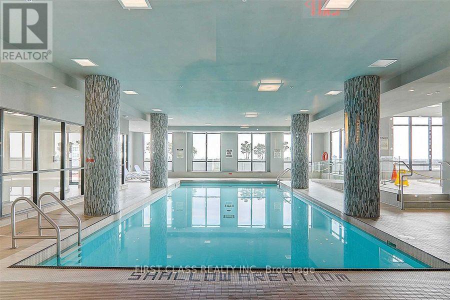 Prestigious Grand Park 2 - Corner Suite Living in the Heart of MississaugaWelcome to this beautifully maintained 2-bedroom + enclosed den, 2-bathroom corner unit located in the highly sought-after Grand Park 2 at Mississauga City Centre. Offering 923 sq ft of bright interior space plus a 120 sq ft private balcony, this suite showcases unobstructed downtown views and breathtaking sunrise exposures.Designed for modern living, the unit features 9 ft ceilings, floor-to-ceiling windows, and a spacious open-concept living and dining area filled with natural light. The sleek contemporary kitchen is finished with stainless steel appliances, quartz/granite countertops, and stylish cabinetry, complemented by laminate flooring throughout.The primary bedroom offers a peaceful retreat with an open concept walk-in closet and private 3-piece ensuite. The second bedroom is generously sized with a large window and ample closet space. The enclosed den provides exceptional flexibility-ideal for a home office, study, or additional sleeping area. Fresh Painting. Step out onto the large private balcony to relax and enjoy panoramic city views. Residents enjoy access to premium building amenities, including a 24/7 concierge, fitness centre, indoor pool, sauna, party room, and guest suites. One underground parking space and locker are included.Perfectly located just steps from Square One, Celebration Square, YMCA, Sheridan College, UTM campus, T&T Supermarket, GO Station, public transit, major highways, shopping, and dining-this is urban living at its finest. (id:64974)