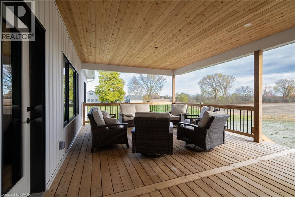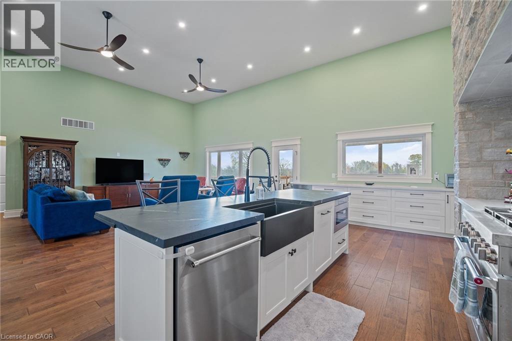 Modern Country Living on 1 Acre - Just 3 Minutes to the QEW! Welcome to 3809 Netherby Road in Fort Erie - a newly completed (June 2024) custom-built bungalow, offering 2,372 sqft of beautifully designed living space with 3 bedrooms, an office, and 2.5 bathrooms. Soaring 14' ceilings and an airy open-concept layout set the tone, with highlights like a double-door entry, engineered hardwood floors, 7 baseboards, and a stunning floor-to-ceiling stone cooking area. The kitchen features warm cabinetry, leathered granite counters, an undermount sink, a built-in fridge, and stainless steel appliances. The spacious primary suite includes a walk-in closet and a spa-like 5-piece ensuite with a soaker tub, glass shower, and double sinks. Outside, enjoy a deep, oversized deck and a detached double garage with 14' ceilings. Additional features include on-demand hot water, a 200-amp panel, HRV, A/C, a sump pump, and a fully insulated 8-foot basement with a bathroom rough-in. Serviced by septic, city water, and natural gas. Turnkey, stylish, and set in a peaceful rural location - just minutes to amenities, shopping, and major highways. (id:64974)