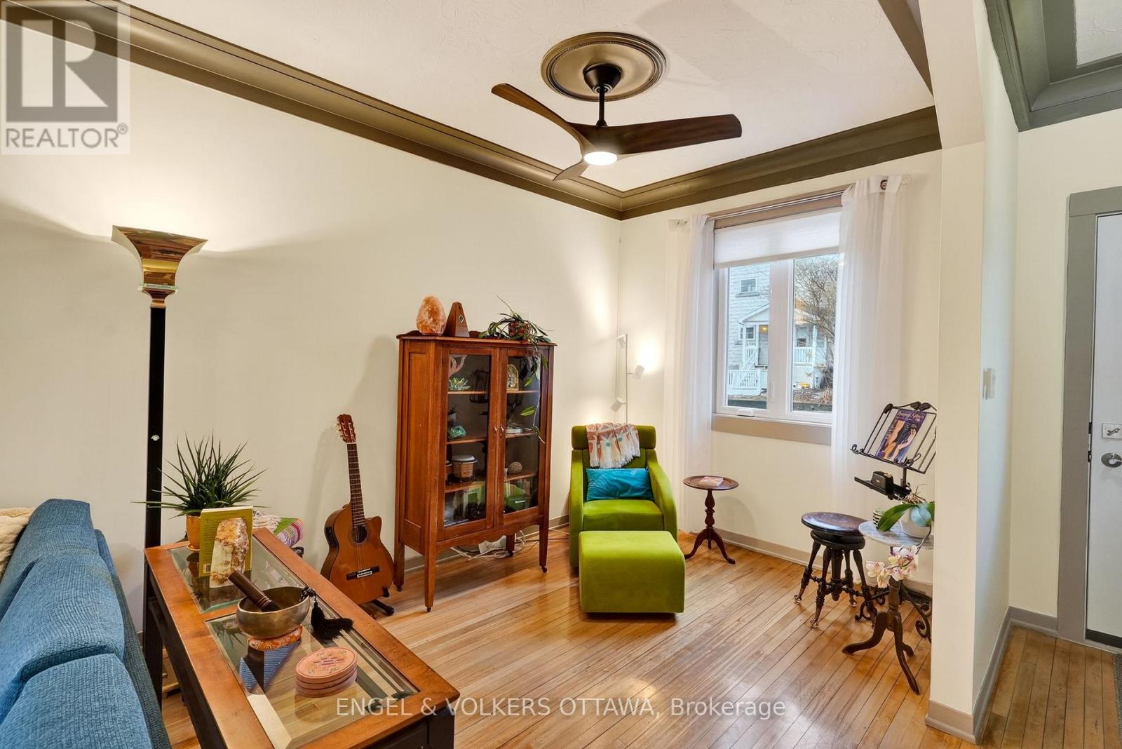 Welcome to 381 Montfort St - a hidden gem nestled conveniently near the core of Ottawa. This charming turn-key, detached family home sits on a large 53ft x 100ft lot and features a fully-fenced yard and a detached garage. Upon entering, you will discover a home that has been thoughtfully renovated with attention to detail - including 9ft high ceilings on the main floor, exceptional lighting and hardwood floors throughout. The welcoming foyer opens to a quiet sitting/reading nook and adjacent living room with a cozy gas fireplace as the focal point. The gorgeous updated gourmet kitchen features abundant cabinetry, quartz countertops, a centre island, a large pantry and dining area. The naturally light-filled rooms continue upstairs to three spacious bedrooms which include a primary bedroom with custom built-ins and a full bath featuring a statement clawfoot bathtub. Enjoy the landscaped backyard with a grill gazebo. Everything has been done for you! Do not miss out on this lovely, move-in-ready home. Perfectly located near all amenities including shops, restaurants, bike baths, parks, LRT/public transportation, the Rideau Sports Centre and downtown. (id:64974)