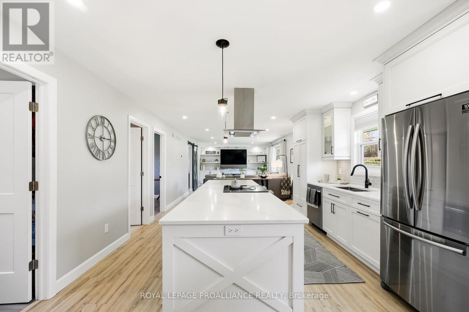 Welcome to 3810 Burnham St N, a beautifully updated bungalow that blends the peace of country living with the convenience of being just minutes from town in a highly sought-after community. This impressive 3+1 bedroom, 2-bath home with an attached 1-car garage sits on a well maintained 1-acre lot, offering an abundance of usable outdoor space to relax, play and enjoy. Step inside to a stunning open-concept main floor designed with both comfort and entertaining in mind. At the heart of the home is a dream kitchen, anchored by a 11ft island with breakfast bar, quartz countertops, custom cabinetry, stainless steel appliances, and pantry. The adjoining living room is equally impressive, featuring a striking media wall with stone and wood accents, a cozy fireplace, and built-in cabinetry for additional storage. The primary bedroom offers his and hers closets and a walkout to a private deck overlooking the green space behind making it an ideal spot to enjoy your morning coffee. Two additional bedrooms and a tastefully designed bath with a double-sink vanity and tiled shower complete the main level. The fully finished basement provides a generous extension of living space, including a large rec room warmed by a cozy and effective wood stove, a full bath, laundry room, home gym, and an additional bedroom, perfect for guests or a home office. The attached garage easily accommodates a vehicle while still providing extra storage. Outside, hobbyists and professionals alike will appreciate the opportunities with the approximately 38ft x 17ft detached shop, complete with its own driveway and hydro meter. (id:64974)