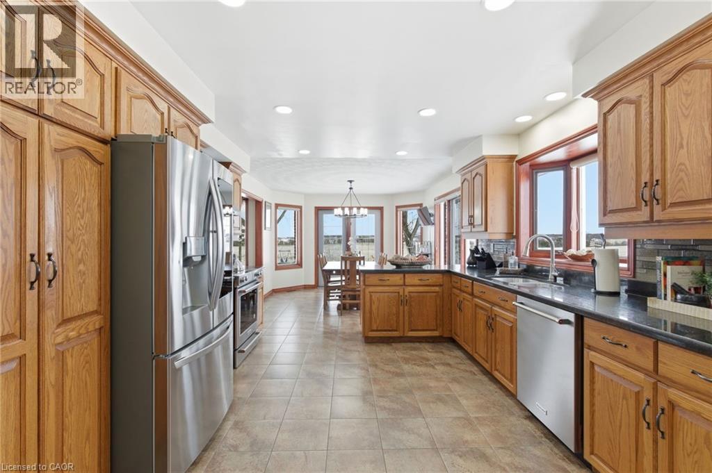 Luxury Living Meets Country Charm! Welcome to this stunning bungalow just over 2000 sq. ft. on 1.13 acres, perfectly blending modern updates with timeless character. This fully finished 3+3 bedroom, 3-bath home is ideal for multi-generational living, featuring two kitchens and a private separate entrance. Inside, you'll find granite and quartz throughout, rich hardwood floors, pot lights, and a bright, open layout. Outside, enjoy an above ground pool, sprawling yard, and parking for 20+ vehicles, perfect for entertaining or relaxing. With a durable metal roof, high-efficiency furnace and A/C (2010), and that perfect mix of modern comfort and old-world charm, this Caledonia retreat provides peaceful country living just minutes from town. RSA (id:64974)