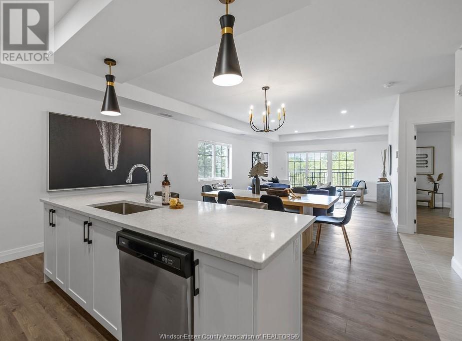 Welcome to the sought after SoHo South Windsor. Newly constructed and never occupied, this Empire suite measures 1,388 SF and includes 2 bedrooms, 2 bathrooms, a garage and storage unit. This beautifully appointed unit boasts an open and spacious main living and dining area, modern Kitchen with quartz countertop end island, stainless steel appliances, luxury vinyl flooring, in-suite laundry end custom fixtures. Tons of windows and large patio doors allow for lots of natural light and balcony access. Large primary BR with elegant ensuite and walk-in closet. Secondary BR offers flexibility for use as an office or nursery complete with 3 piece bathroom. This secure building offers a Party Room, Fitness Centre and lounge area on each floor, Ideally located at Howard and Cabana in South Windsor. Just minutes to medical offices, pharmacies, grocery, fine dining, Devonshire Mall, EC Row, the 401, etc. (id:64974)