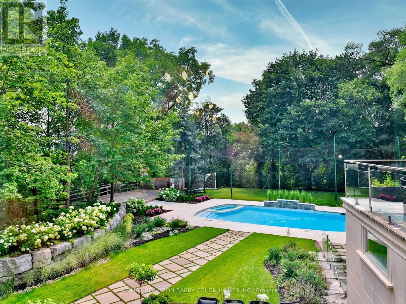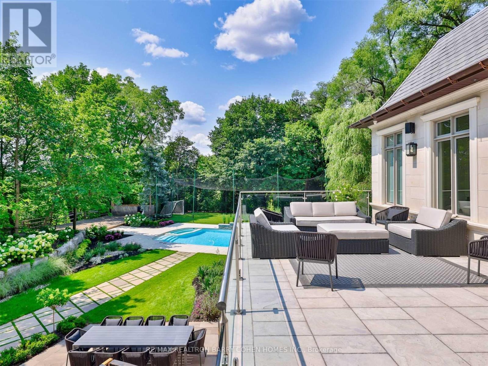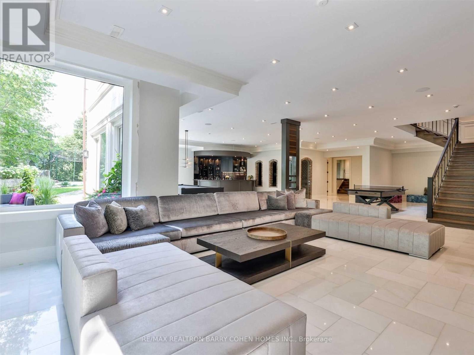 A truly one-of-a-kind estate showcasing an NBA-calibre professional sports court, set on over 1.3 acres of breathtaking ravine vistas. This exceptional residence is clad in timeless limestone and offers an uncompromising standard of luxury, craftsmanship, and design. Boasting over 9,390 square feet above grade, plus an extraordinary 6,042 square foot lower level featuring a full basketball court, this home is the ultimate in grand-scale living and entertaining. No expense has been spared, with soaring ceilings, bespoke finishes, and meticulous attention to detail throughout. State-of-the-art technology enhances every aspect of the home, including a fully integrated Control4 automation system, Alexa connectivity, and a spectacular home theatre with 4K projection and a 152-inch screen. The main level features a private in-law suite, an elegantly panelled library, and a chef-inspired kitchen complete with a wood chopping block, expansive centre island, and built-in refrigeration-designed for both everyday living and elevated entertaining. The primary retreat is a sanctuary of indulgence, highlighted by a lavish 11-piece onyx marble ensuite and a custom-designed dressing room. Outdoors, the estate transforms into a dream resort-style oasis, complete with a stunning pool, private soccer field, outdoor bar and kitchen, granite fire pit, and an expansive stone terrace-perfect for hosting or unwinding in complete privacy. This estate is just minutes to highway access, top public and private schools and boutique shops and eateries nearby. (id:64974)