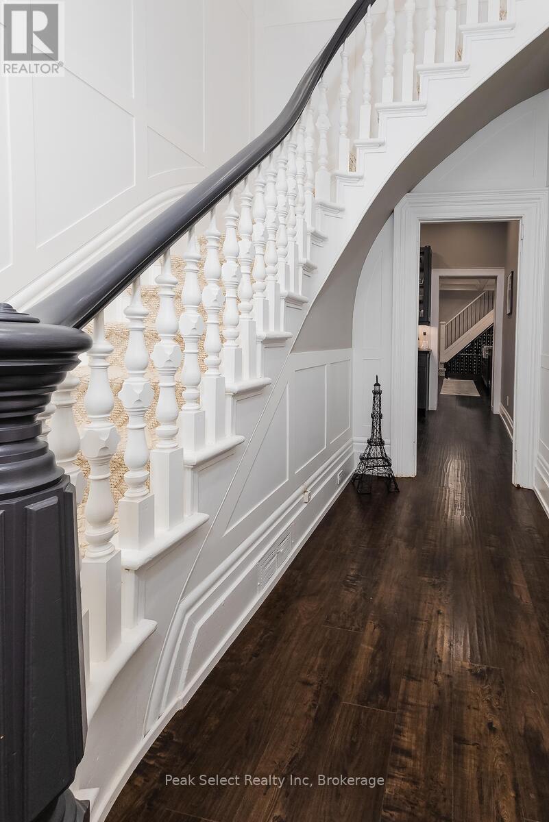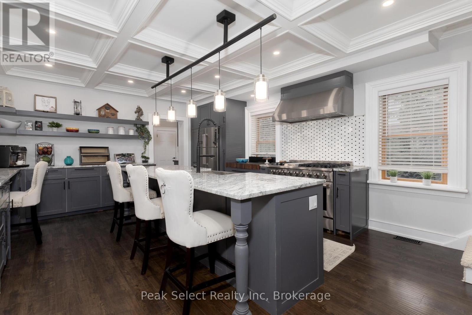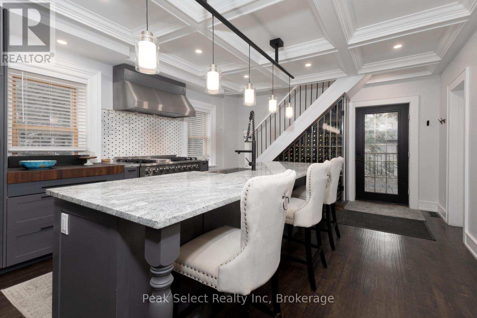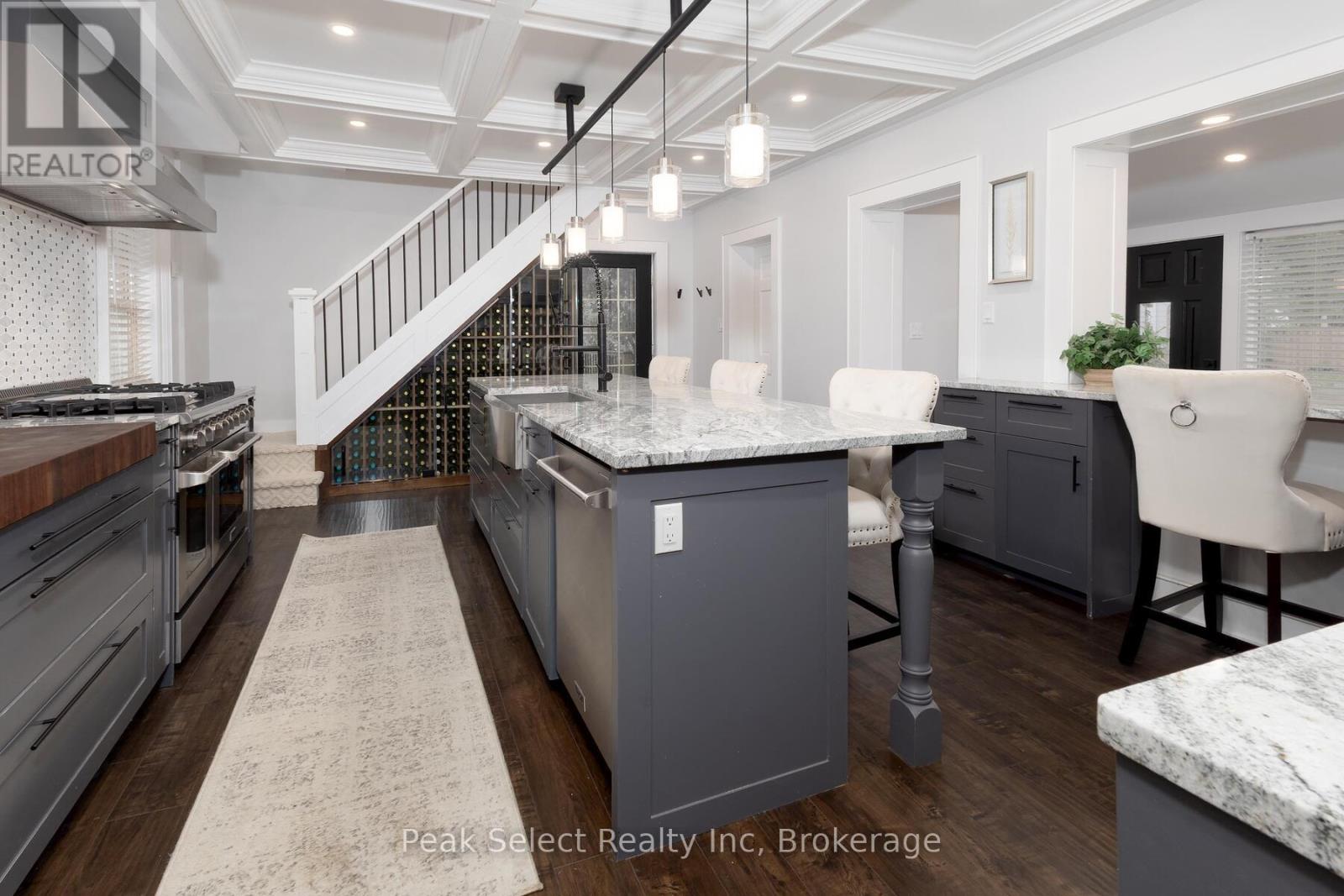 Welcome to 382 Queen St. E., in the picturesque town of St. Marys, ON. This 1890 solid-brick beauty has been extensively modernized and is ready for a new family to call her own. Renovated in 2023 for those who love to entertain or host family gatherings, key features include a large dining room directly off of the kitchen, a separate bar area ideal for preparing cocktails or for use as a coffee bar, and a separate living room with bay window. The kitchen stands as the hallmark trait of the home, with modern cabinetry, a large centre island with breakfast bar, a 48" gas range, an apron farmhouse sink, and a built-in, beautifully-crafted walnut cutting board counter. The focal point, however, is the magnificent wine refrigeration cabinet built in under a staircase, which could be repurposed to house fruits, cheeses, or other beverages if wine isn't your thing. The magnificent coffered ceiling that flows from kitchen, dining to living room levels up the elegance. Travel up the curved staircase to an upstairs that hosts 3 bedrooms, including a large Primary suite with natural gas fireplace, a 4-piece bath with glassed-in shower, a claw-foot tub and spacious vanity. A back "servant's staircase" leads from this bedroom to the kitchen for those urgent early-morning coffee runs. Outside you will find a large raised wood deck and private, partially fenced-in backyard. Take a short walk to the downtown core to enjoy the fabulous shops, cafes and restaurants. (id:64974)