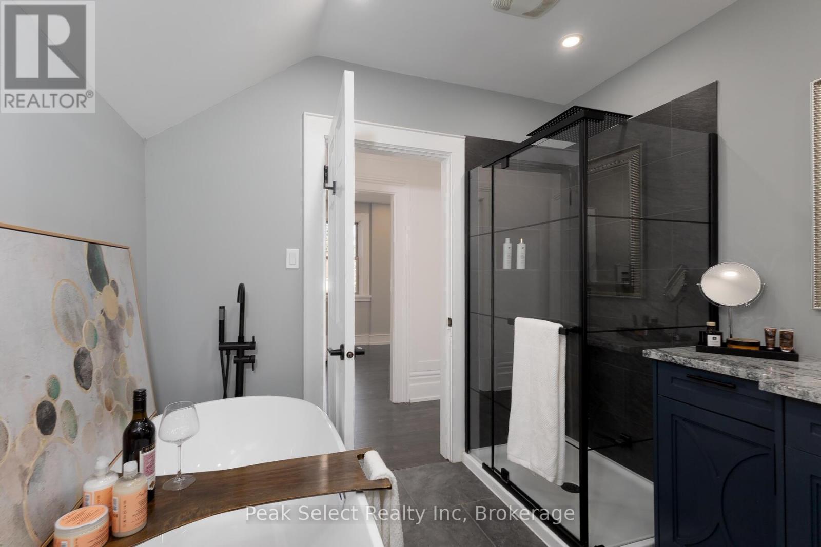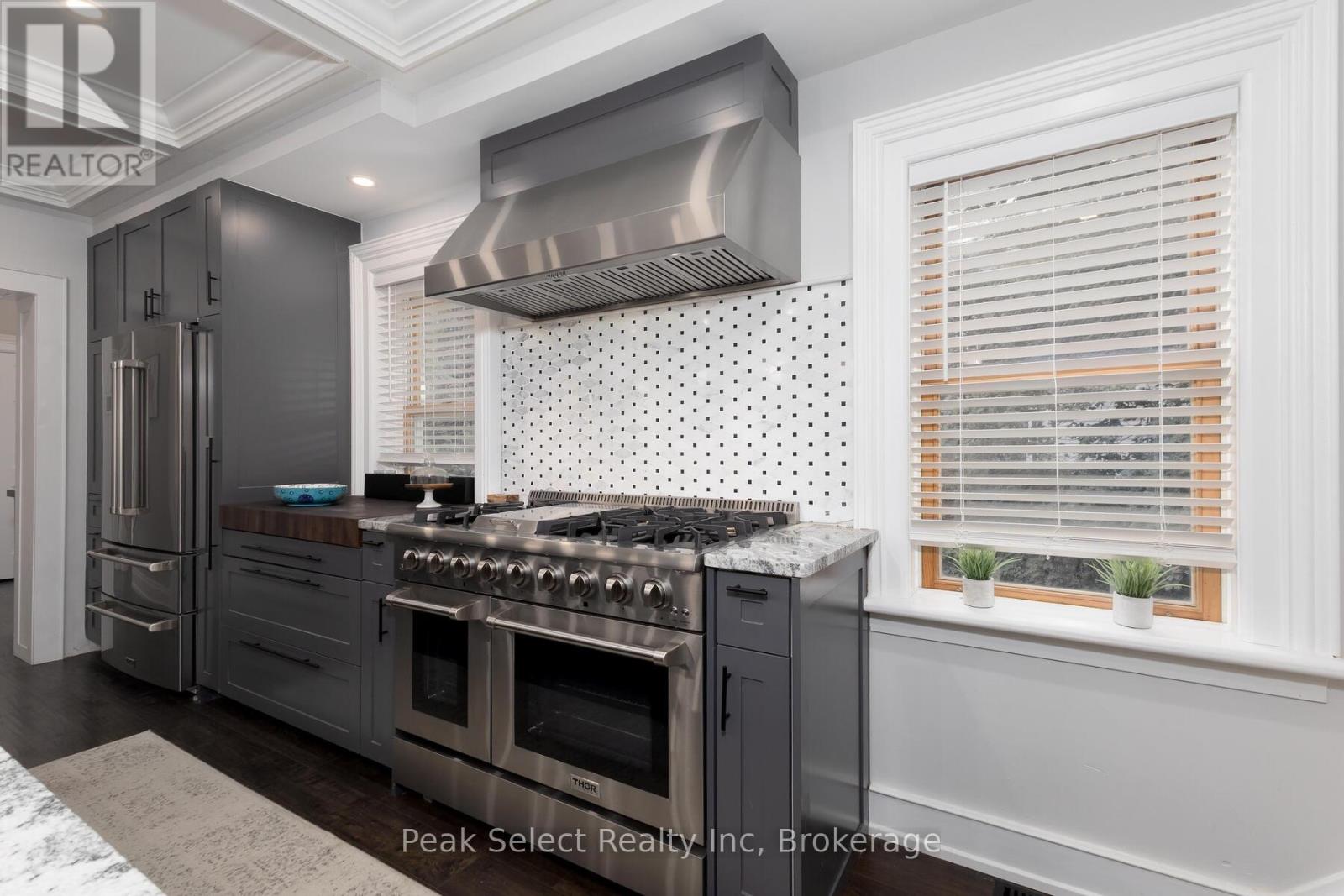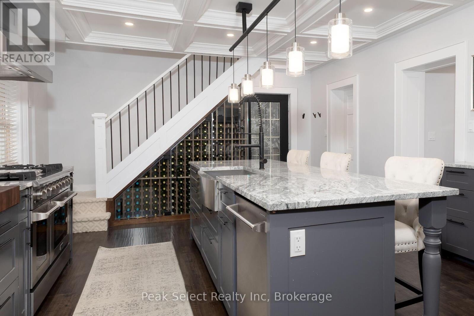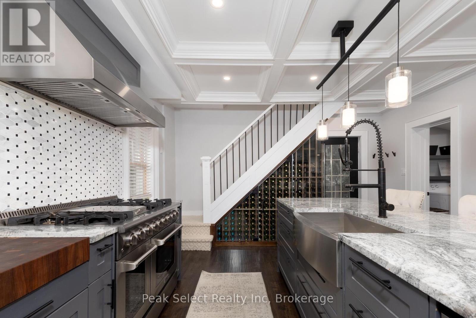 Welcome to 382 Queen St. E., in the picturesque town of St. Marys, ON. This 1890 solid-brick beauty has been extensively modernized and is ready for a new family to call her own. Renovated in 2023 for those who love to entertain or host family gatherings, key features include a large dining room directly off of the kitchen, a separate bar area ideal for preparing cocktails or for use as a coffee bar, and a separate living room with bay window. The kitchen stands as the hallmark trait of the home, with modern cabinetry, a large centre island with breakfast bar, a 48" gas range, an apron farmhouse sink, and a built-in, beautifully-crafted walnut cutting board counter. The focal point, however, is the magnificent wine refrigeration cabinet built in under a staircase, which could be repurposed to house fruits, cheeses, or other beverages if wine isn't your thing. The magnificent coffered ceiling that flows from kitchen, dining to living room levels up the elegance. Travel up the curved staircase to an upstairs that hosts 3 bedrooms, including a large Primary suite with natural gas fireplace, a 4-piece bath with glassed-in shower, a claw-foot tub and spacious vanity. A back "servant's staircase" leads from this bedroom to the kitchen for those urgent early-morning coffee runs. Outside you will find a large raised wood deck and private, partially fenced-in backyard. Take a short walk to the downtown core to enjoy the fabulous shops, cafes and restaurants. (id:64974)