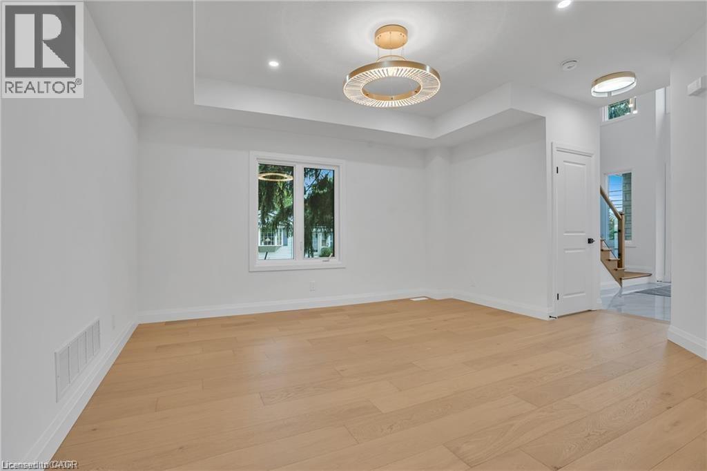 Zeina Homes RoyalView Model — This beautiful custom home sits on a 40 x 124 ft lot and features 5 spacious bedrooms plus a den and 5 bathrooms, including a main-floor bedroom. The fully finished basement includes a separate side entrance, making it ideal for an in-law suite. The open-concept main floor offers a welcoming double-door entrance, modern décor, and abundant natural light. The custom kitchen features a center island, extensive cabinetry, and stylish light fixtures. Sliding doors lead to the backyard. Additional highlights include an elegant oak staircase, oversized windows, granite/quartz countertops, hardwood floors, a brick-to-roof exterior, and a 2-car garage. Located in a mature Ancaster neighborhood, this home is close to parks, schools, shopping, restaurants, Costco, and more. (id:64974)