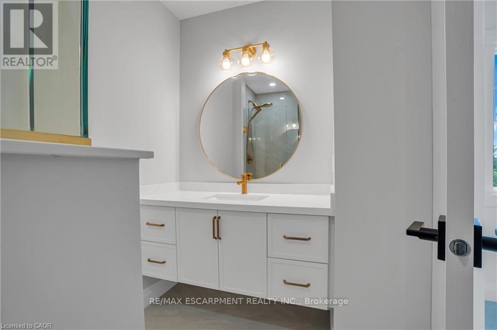 Zeina Homes RoyalView Model - This beautiful custom home sits on a 40 x 124 ft lot and features 5 spacious bedrooms plus a den and 5 bathrooms, including a main-floor bedroom. The fully finished basement includes a separate side entrance, making it ideal for an in-law suite. The open-concept main floor offers a welcoming double-door entrance, modern décor, and abundant natural light. The custom kitchen features a center island, extensive cabinetry, and stylish light fixtures. Sliding doors lead to the backyard. Additional highlights include an elegant oak staircase, oversized windows, granite/quartz countertops, hardwood floors, a brick-to-roof exterior, and a 2-car garage. Located in a mature Ancaster neighborhood, this home is close to parks, schools, shopping, restaurants, Costco, and more. (id:64974)