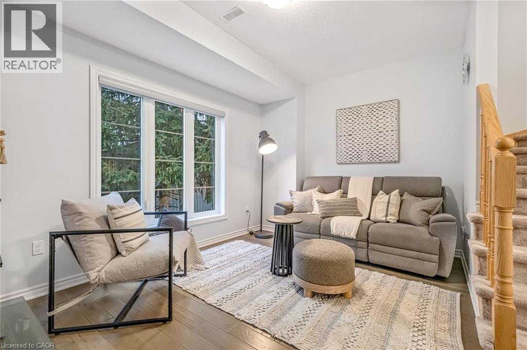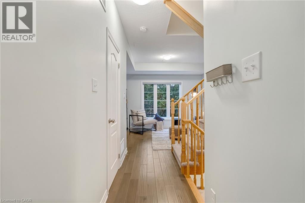 Welcome to this modern 3-storey townhome offering 2+1 bedrooms, 2.5 bathrooms, and nearly 1,700 sq. ft. of bright, functional living space. The open-concept main floor features a stylish kitchen with an upgraded backsplash, clean neutral finishes, and a spacious living area perfect for everyday living and entertaining. Upstairs are two comfortable bedrooms and a full bathroom, including an upgraded glass shower. The 3rd bedroom offers a flexible work or guest space with a full bathroom and a walkout to the private, fenced backyard. Enjoy turn-key living with a finished basement, exterior natural gas hookup, central AC, and included appliances. Parking for two with both a garage and a surface spot. Located in Waterdown’s family-friendly, walkable community, you're close to Copper Kettle Café, Kamoosh Bistro, The Watermark Taphouse, Fortinos, Shoppers, the Waterdown Trail system, and have quick access to Dundas St. E, the 403, and Aldershot GO. A perfect low-maintenance, move-in-ready option for first-time buyers, downsizers, or young professionals. (id:64974)