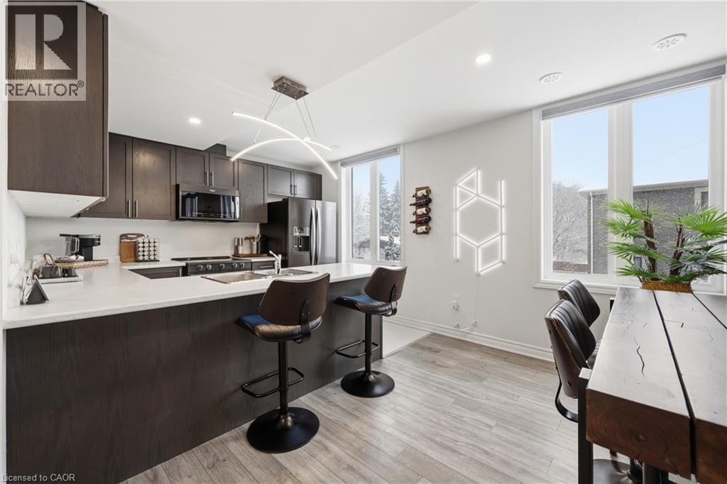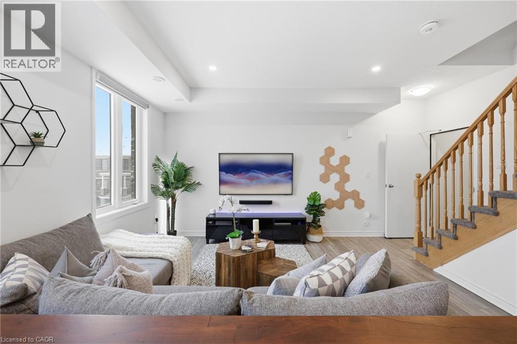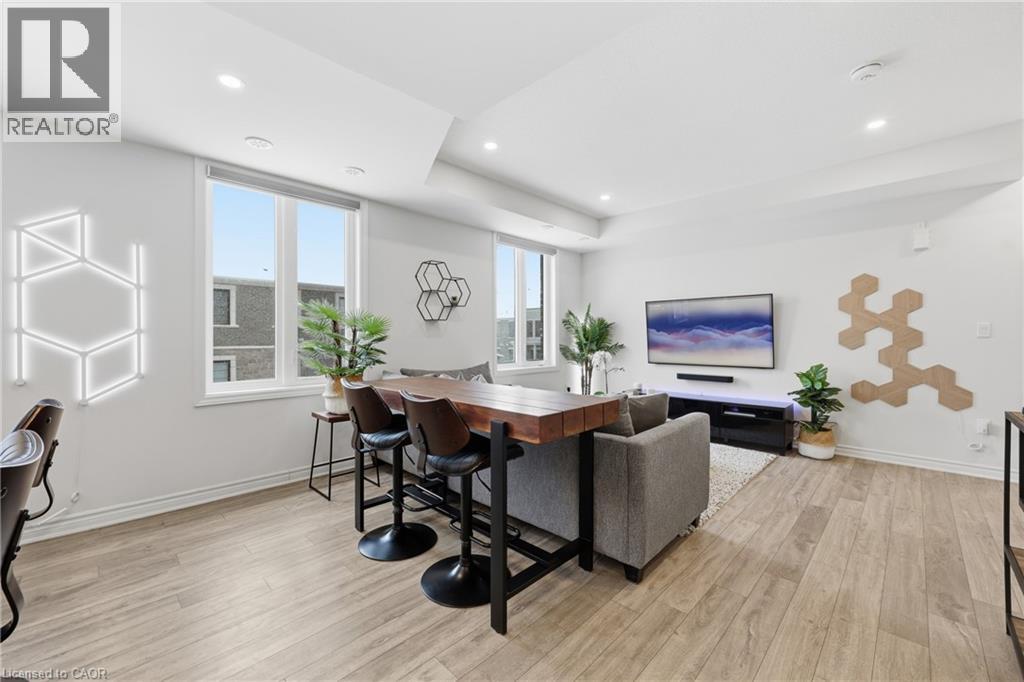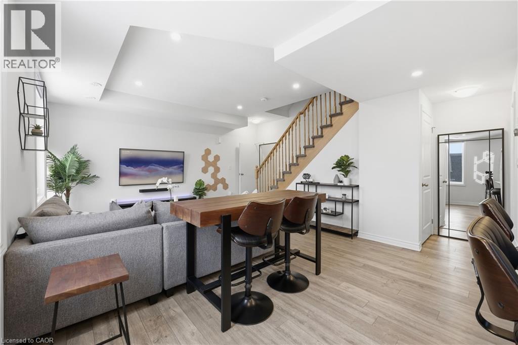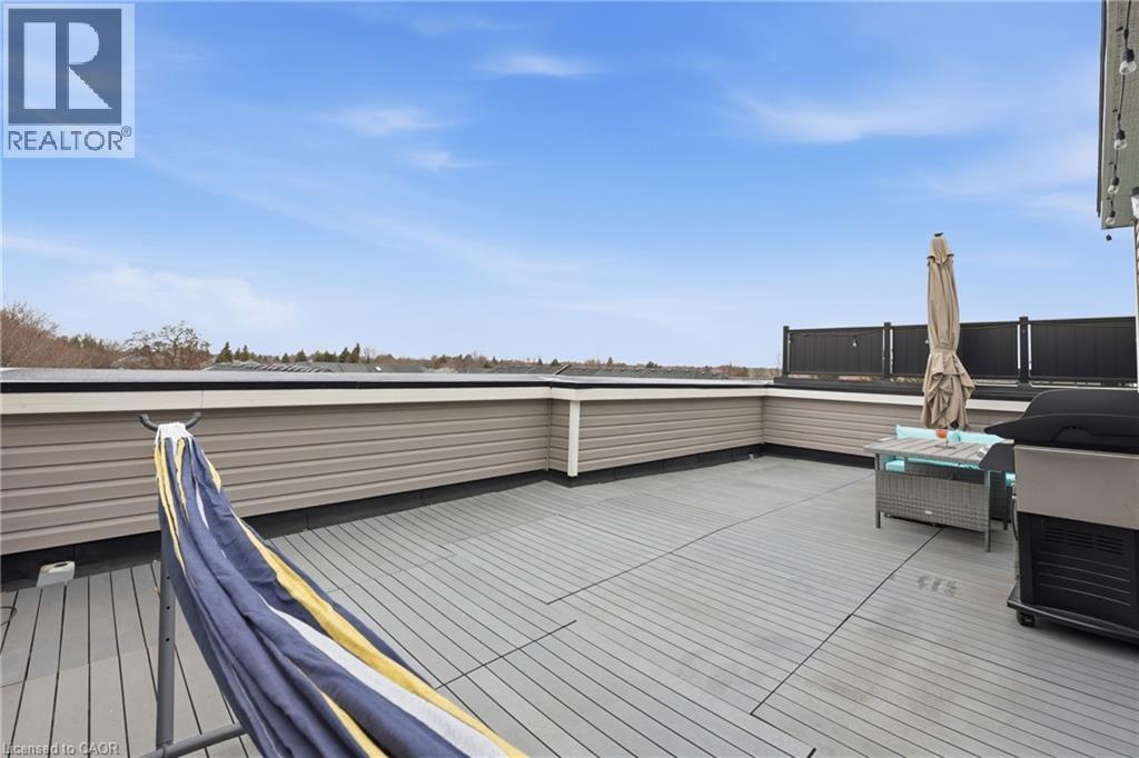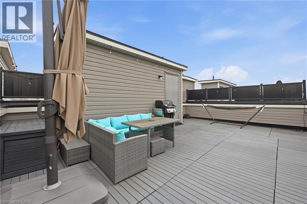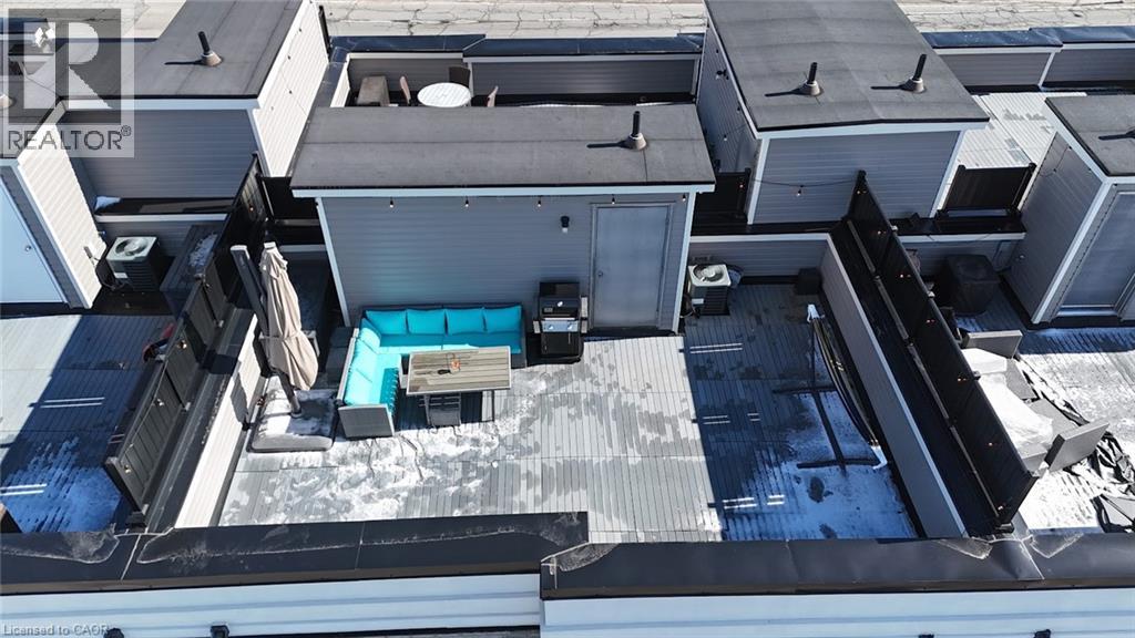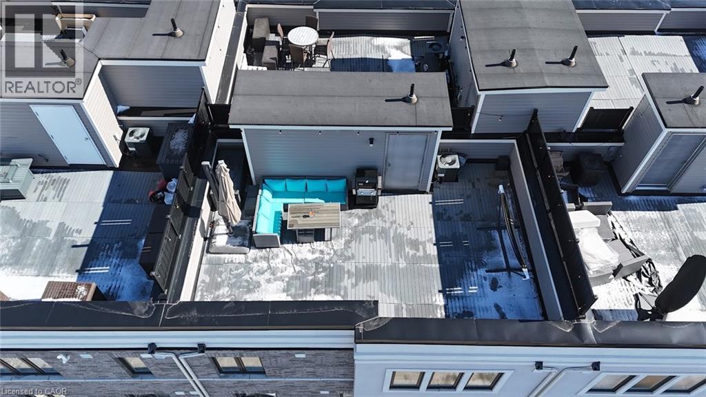 Welcome to this bright and modern townhouse in one of Waterdown’s most sought-after communities. Built in 2022, this stylish home offers a functional open-concept layout designed for comfortable everyday living and effortless entertaining. The main floor is filled with natural light and showcases upgraded pot lights throughout, creating a warm and inviting space to relax or host friends. The kitchen features sleek black stainless steel appliances, a smart upgraded stove, an integrated dishwasher with a matching cabinet panel for a seamless built-in look, and upgraded cabinetry for enhanced storage. Select automatic blinds add comfort and convenience. Thoughtfully designed for modern living, the home includes Ethernet wiring, a central vacuum rough-in, and upgraded laundry appliances. The carpet-free main floor adds style and ease of maintenance, while the convenient two-piece powder room features a full vanity. Upstairs, you’ll find two spacious bedrooms and two full bathrooms, including an upgraded ensuite with a beautifully finished shower, offering a practical layout ideal for professionals, couples, or anyone seeking a comfortable work-from-home setup. The true highlight of the home is the showstopping private rooftop terrace spanning approximately 435 sq ft. Complete with a natural gas BBQ hookup, it’s the ultimate outdoor retreat—perfect for hosting friends, enjoying charcuterie nights, or unwinding while taking in sunset views. Located in Waterdown’s walkable and family-friendly neighbourhood, you’re just minutes from everyday amenities including Fortinos, Shoppers Drug Mart, and more. Nature lovers will appreciate being close to the Waterdown Trail system and the Bruce Trail. With quick access to Dundas Street East, Highway 403, and Aldershot GO Station, commuting is effortless. A fantastic move-in-ready opportunity for first-time buyers, downsizers, or young professionals looking for modern living in a vibrant and connected community. (id:64974)