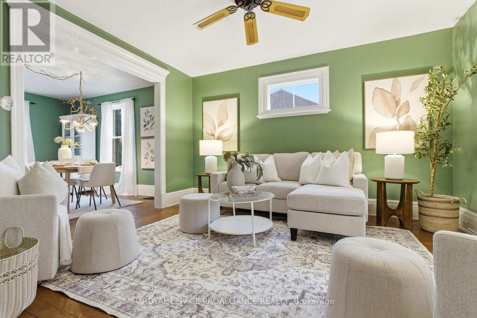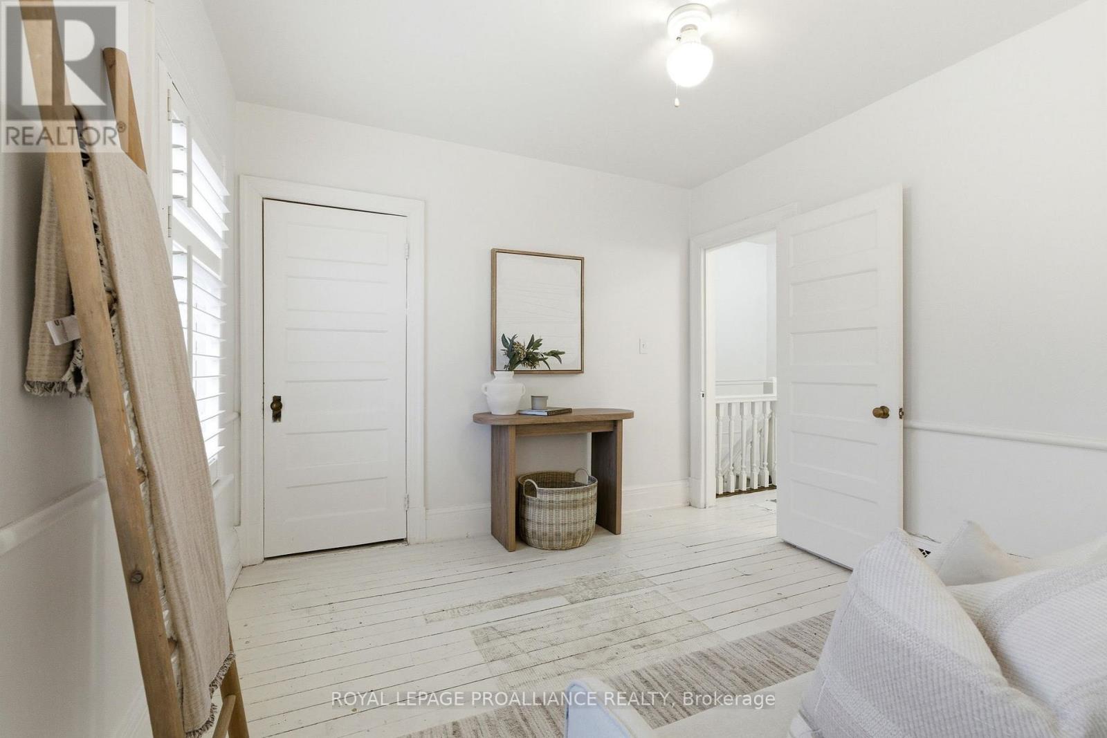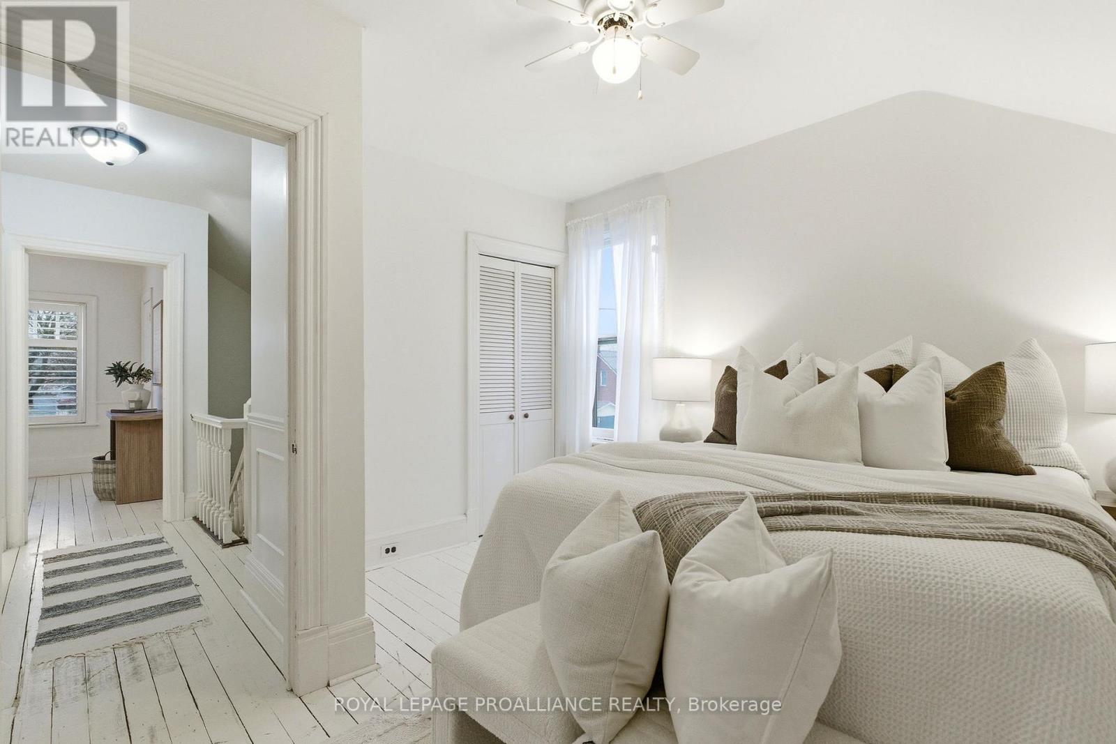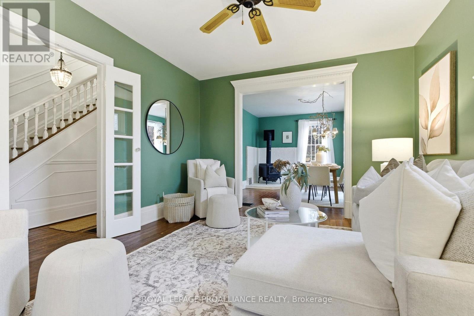 Welcome to 383 Mathew St, a charming Jackson-style home built in 1916 just steps from downtown Cobourg. Situated on a quiet street, this classic 2-storey brick home features 3 bedrooms, 1.5 bathrooms, original wood floors throughout, and central A/C for year-round comfort. Fresh paint and thoughtful updates complement the original architectural details, including the original front hall banister, creating a warm and inviting atmosphere, while newer appliances, including a recently replaced fridge and dryer, add everyday convenience. The dining room features a cozy wood stove, adding both warmth and character to the space. The full unfinished basement provides excellent storage and potential for future use. A covered front porch invites you to unwind, and the fully fenced yard with mature perennial gardens creates a private outdoor setting to enjoy. Just a short stroll to downtown shops, restaurants, parks, and Cobourg's waterfront, this property blends timeless character with an exceptional lifestyle location. Updates: Roof (approx 8 yrs old), Furnace (approx 4 yrs old), Central A/C (approx 1 yr), knob and tube removed (16 yrs ago), fridge & dryer (2025) (id:64974)