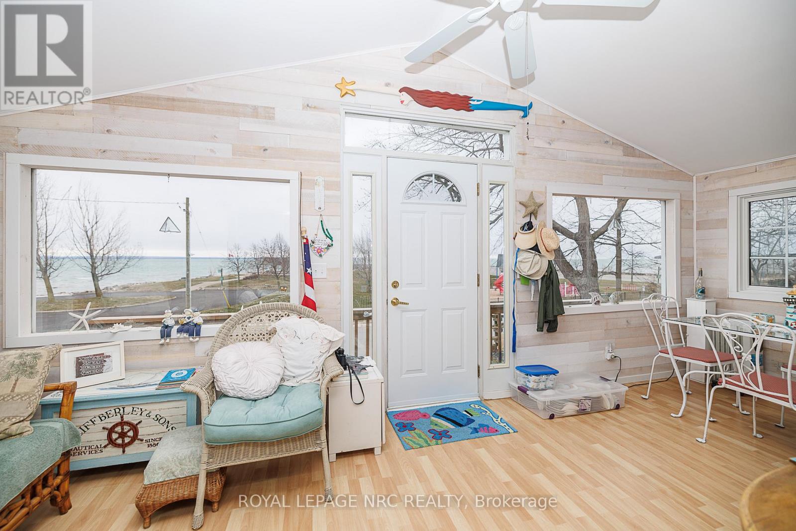 Nestled along the shores of Lake Erie, this charming two-story retreat offers a prime waterfront location with spectacular views from nearly every room. The main floor features an inviting enclosed porch for year-round lake watching, a bright eat-in kitchen with patio doors leading to a scenic side deck, and a spacious family room with airy vaulted ceilings. Designed for effortless living, the home includes three bedrooms, a main-floor laundry, and 1.5 baths, making it perfect as a permanent residence or a vacation getaway. Beyond the front door, you are steps away from a boat launch and local parks, and just minutes from the vibrant boutiques, restaurants, and small-town charm of downtown Ridgeway. Experience the perfect blend of lakeside relaxation and community convenience. (id:64974)
