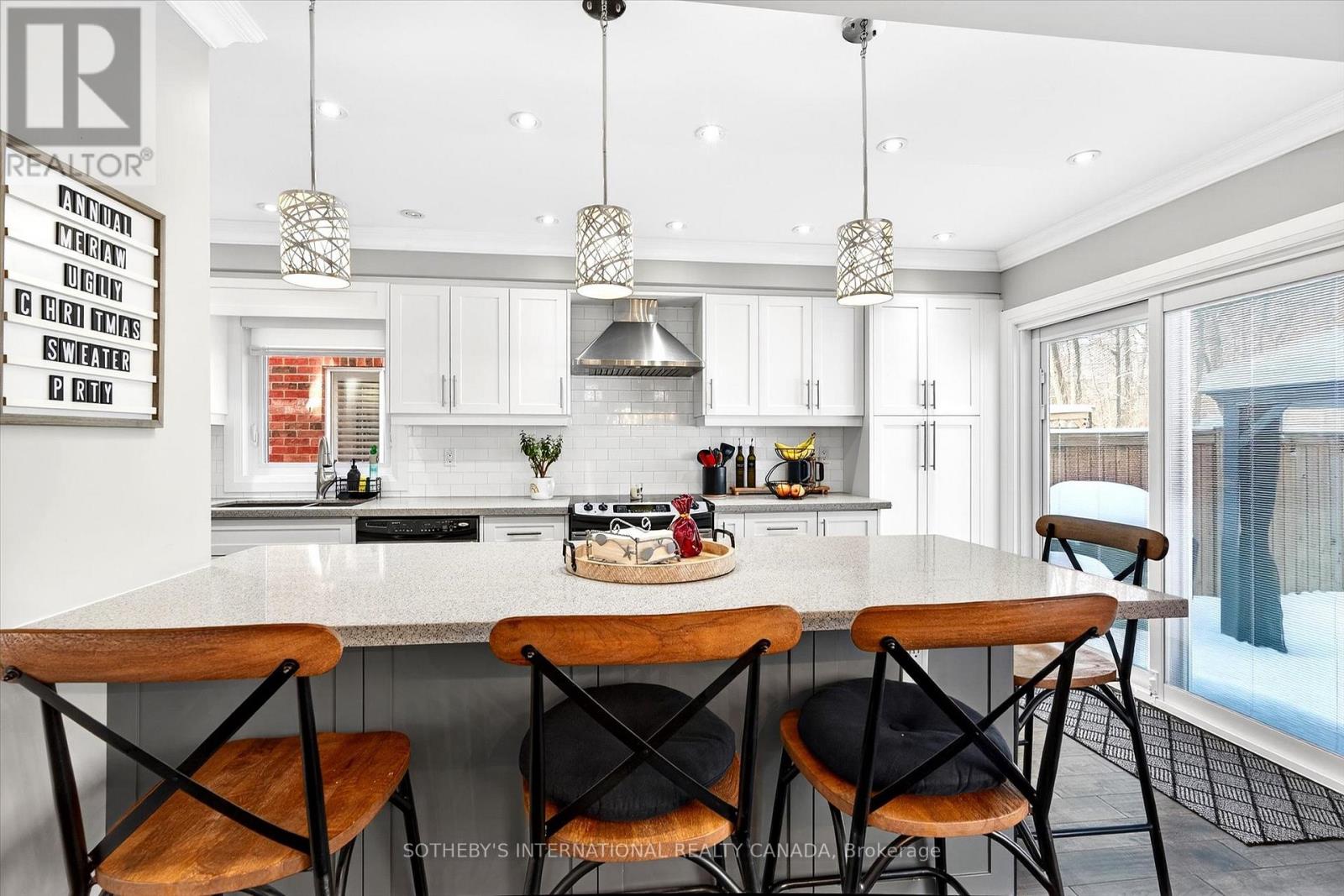 This beautifully updated home at 3841 Quiet Creek Drive offers turnkey living with extensive renovations inside and out. The main floor has been fully renovated, featuring a custom kitchen with bespoke cabinetry, hardwood flooring, a redesigned powder room, and striking hardwood stairs that elevate the space. New windows 2025, doors, and custom window coverings throughout provide a fresh, modern feel and excellent natural light.The lower level has also been refreshed with updated flooring and a finished 3-piece bathroom, adding flexible living or guest space. Outside, both the front and backyard have been upgraded with new exposed aggregate, creating a clean, low-maintenance exterior with excellent curb appeal.Backing onto a serene ravine, the property offers a rare sense of privacy and a peaceful natural backdrop, ideal for relaxing or entertaining outdoors. Located on a quiet, family-friendly street close to parks, schools, and walking trails, with convenient access to shopping, transit, and major highways including Hwy 401 and 403, this home combines a tranquil setting with everyday convenience. (id:64974)