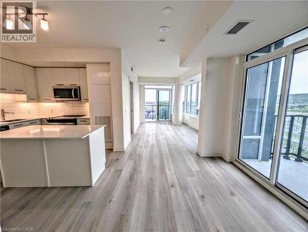 Welcome to Odyssey Condos by Rosehaven Homes, perfectly positioned in the heart of Grimsby on the Lake. This impeccably maintained 982 sq. ft. suite delivers a modern, open-concept layout designed for both comfort and style, featuring two bedrooms and two private balconies with stunning lake views. Soaring 9-foot ceilings, wide-plank 7” luxury vinyl flooring, and expansive windows flood the space with natural light throughout the day. The upgraded kitchen anchors the home with quartz countertops, stainless steel appliances, custom backsplash, and clean, contemporary finishes. The primary bedroom is a true retreat, highlighted by dramatic floor-to-ceiling windows and a sleek, upgraded bathroom with a glass shower. Enjoy the convenience of ensuite laundry, one underground parking space, and a locker. Residents have access to resort-style amenities including a rooftop terrace with BBQs, full fitness centre with yoga and spin studios, virtual concierge, Wi-Fi-enabled lounges, tech workspace, party room with bar and fireplace, pet spa, bike storage, visitor parking, and more. And the lifestyle? Unbeatable. Just steps to the lake, beach, trails, shops, and restaurants—this is lakeside living at its finest. A turnkey opportunity in an exceptional building—perfect for tenants seeking quality, convenience, and waterfront living. (id:64974)