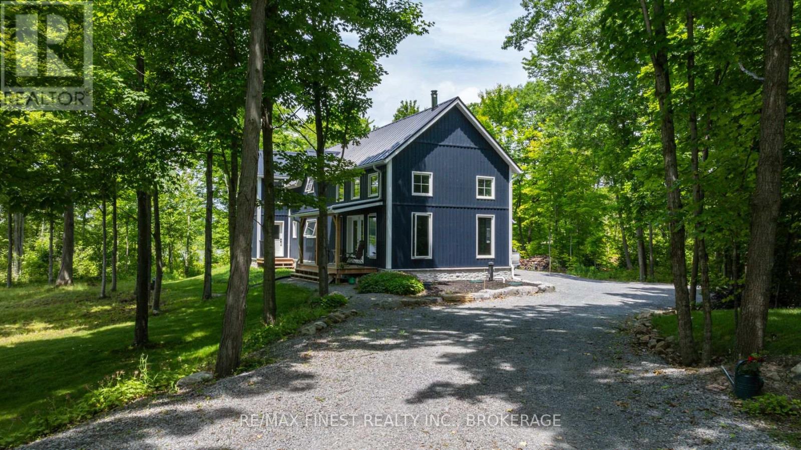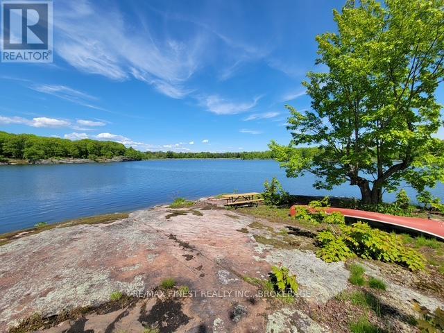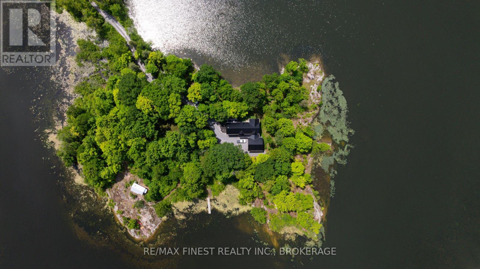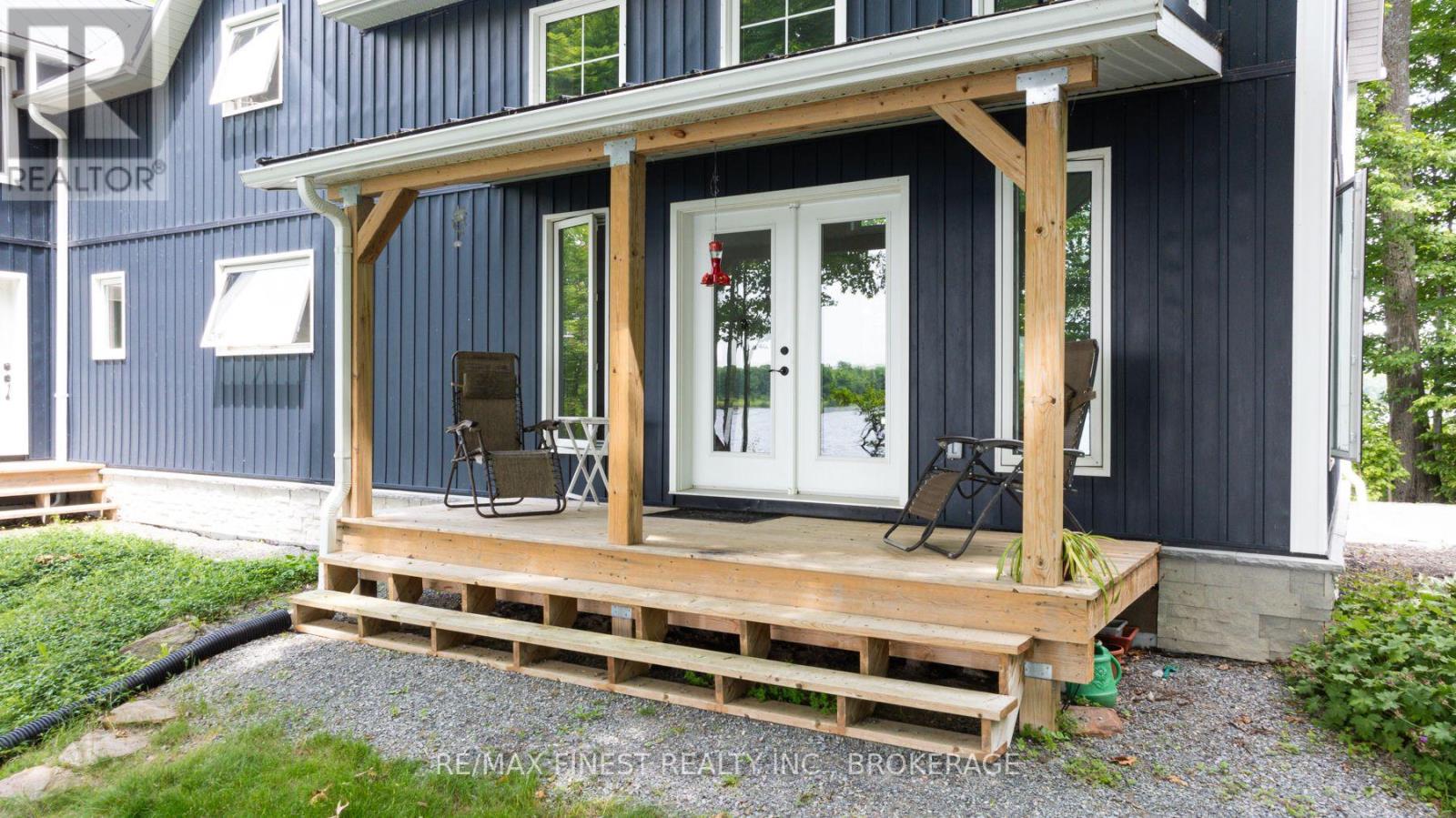 Welcome to 3855 Hideaway Lane, where privacy, luxury and nature abide. Drive through the treed 5.7 acre peninsula via a private laneway with water visible on both sides. This dream lakeside oasis boasts 2800' of waterfront on the historic Rideau Canal at Dog Lake. 360 degree breathtaking water views from every window in this Marine Dusk vinyl sided 4 year new custom built home, boasting 17' ceilings in the 'Great Room', which is overlooked by the Media Room on the second floor. An efficient centrally placed WETT certified woodstove sets the atmosphere as you break the evening chill. From the grand entrance you enter the open concept kitchen adorned with a granite island. Gunsmoke oak hardwood flooring throughout. With an energy efficient heat pump/AC, this meticulously built 2100 square foot home was built on an ICF foundation and has a heated, dry crawl space. It boasts three bedrooms, two on the ground level and one upstairs. The westerly facing bedroom, located steps from the water, has a private entrance suitable for an in-law suite or bed and breakfast accommodation. The main floor laundry leads to the attached double car garage with an unfinished loft accessible by staircase and is suitable for storage or a man-cave. On the second floor adjacent to the Media Room you find the master bedroom with an all season glassed in sunroom overlooking the lake. This spacious bedroom has a walk in closet and an ensuite. As if this luxurious retreat isn't enough, 150 meters from the house you will find a renovated bunkie with electricity, woodstove, running water and a composting toilet on a granite outcropping overlooking Milburn Bay. Presently used as an Airbnb, the cabin is a favourite for repeat guests who love the privacy, canoeing, fishing and unparalleled views. A 25 minute drive to Kingston, 8 minutes from a public beach (Gilmour Point) and two public boat launches in the immediate vicinity, book your viewing today! (id:64974)