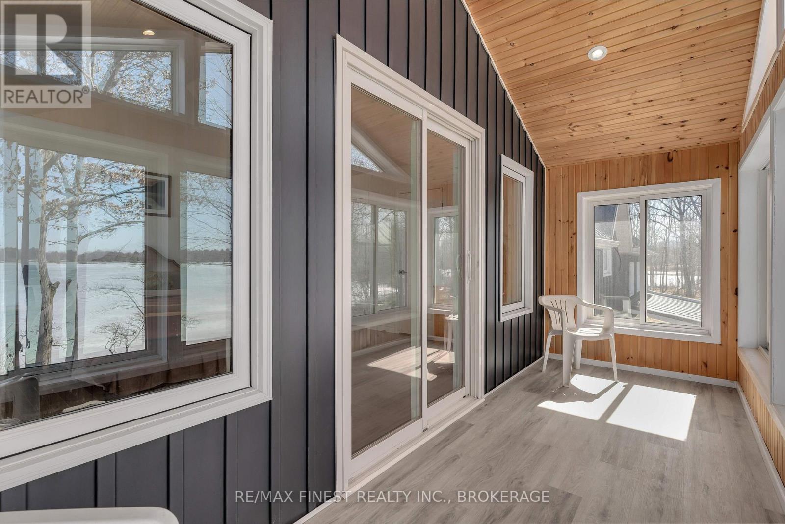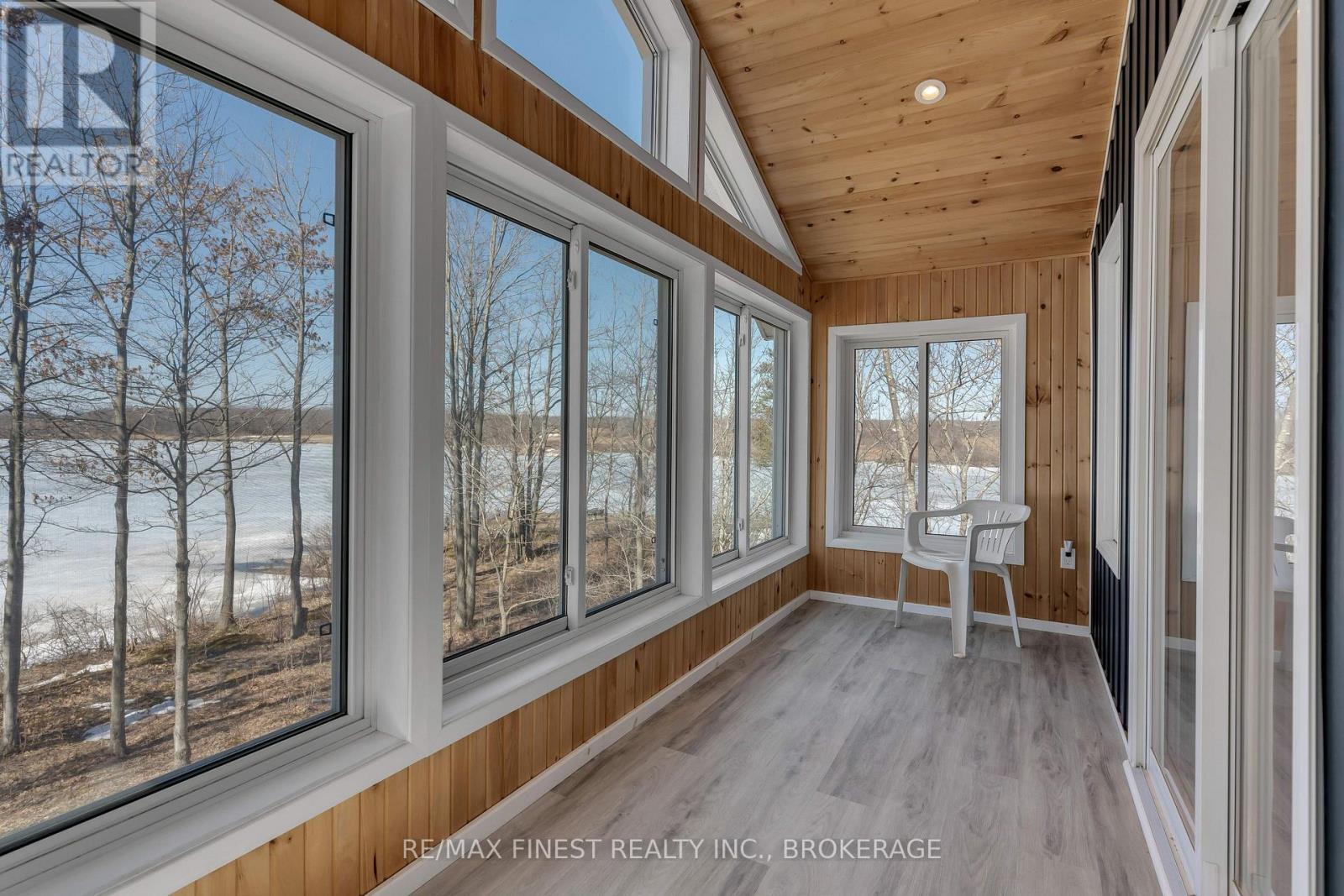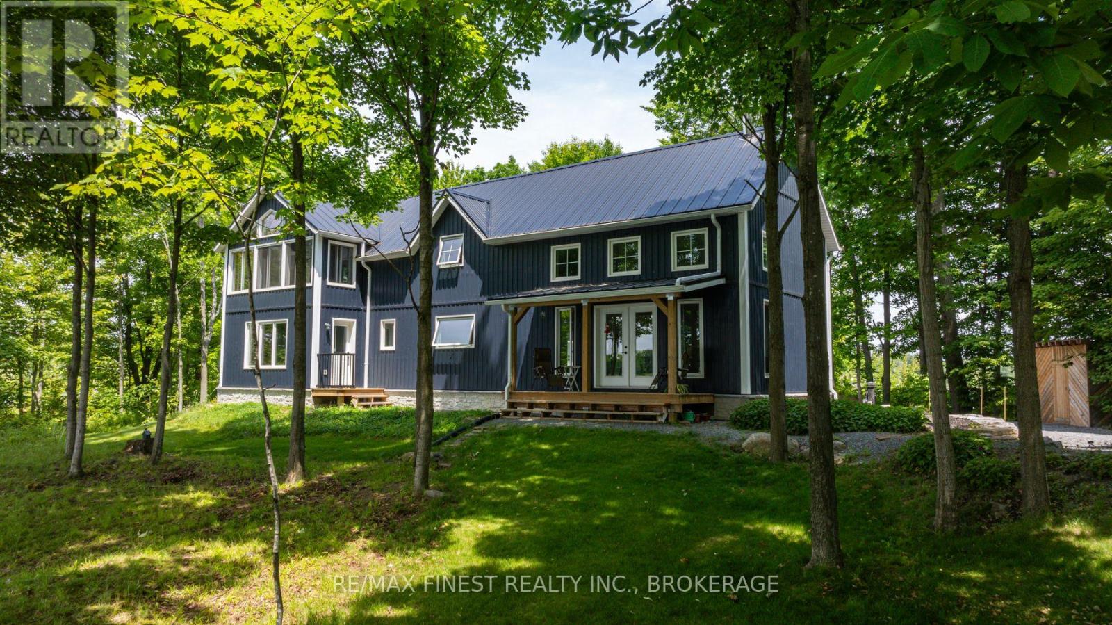 Welcome to 3855 Hideaway Lane, where privacy, luxury and nature abide. Drive through the treed 5.7 acre peninsula via a private laneway with water visible on both sides. This dream lakeside oasis boasts 2800' of waterfront on the historic Rideau Canal at Dog Lake. 360 degree breathtaking water views from every window in this Marine Dusk vinyl sided 4 year new custom built home, boasting 17' ceilings in the 'Great Room', which is overlooked by the Media Room on the second floor. An efficient centrally placed WETT certified woodstove sets the atmosphere as you break the evening chill. From the grand entrance you enter the open concept kitchen adorned with a granite island. Gunsmoke oak hardwood flooring throughout. With an energy efficient heat pump/AC, this meticulously built 2100 square foot home was built on an ICF foundation and has a heated, dry crawl space. It boasts three bedrooms, two on the ground level and one upstairs. The westerly facing bedroom, located steps from the water, has a private entrance suitable for an in-law suite or bed and breakfast accommodation. The main floor laundry leads to the attached double car garage with an unfinished loft accessible by staircase and is suitable for storage or a man-cave. On the second floor adjacent to the Media Room you find the master bedroom with an all season glassed in sunroom overlooking the lake. This spacious bedroom has a walk in closet and an ensuite. As if this luxurious retreat isn't enough, 150 meters from the house you will find a renovated bunkie with electricity, woodstove, running water and a composting toilet on a granite outcropping overlooking Milburn Bay. Presently used as an Airbnb, the cabin is a favourite for repeat guests who love the privacy, canoeing, fishing and unparalleled views. A 25 minute drive to Kingston, 8 minutes from a public beach (Gilmour Point) and two public boat launches in the immediate vicinity, book your viewing today! (id:64974)