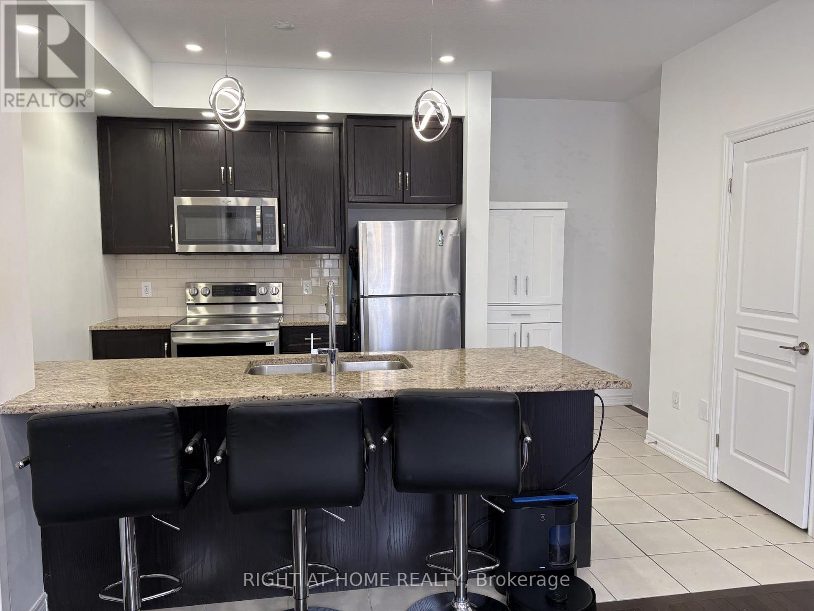 Welcome to this beautifully updated end-unit townhome located in one of Oakville's most desirable and convenient communities. Recently painted throughout, the home features a bright white interior complemented by upgraded pot lights that create a clean, modern, and inviting atmosphere. The open-concept kitchen is designed for both functionality and style, showcasing stainless steel appliances, granite countertops, and a stunning island with space for bar stools - perfect for casual dining or entertaining guests. The kitchen seamlessly flows into a spacious living and dining area highlighted by an elegant fireplace feature wall, high-end cabinetry, and ample lighting. The dining space comfortably accommodates a table for six and opens to a private balcony, offering the perfect spot to relax or enjoy your morning coffee. This thoughtfully designed home offers two spacious bedrooms with oversized windows that fill the rooms with natural light, along with large closets for ample storage. The property also features beautiful hardwood flooring throughout, with carpet only on the stairs for added comfort. As an end unit, the home benefits from additional natural light and extra privacy, while also offering the convenience of one garage parking space and one driveway parking spot. Situated in a fantastic location, the home is just a short two-minute walk to William Rose Park, featuring a playground, splash pad, basketball court, tennis and pickleball courts, baseball diamonds, and expansive green space. The house is in the catchment area of highly rated schools such as White Oaks, Munn's and Harvest Oak Public School, making it ideal for families. With quick access to Dundas Street and Trafalgar Road, you are minutes away from major shopping including Walmart, Longo's, restaurants, banks, and all everyday amenities you need. This is an exceptional opportunity to lease a stylish and well-located home in one of Oakville's most sought-after neighborhoods. (id:64974)